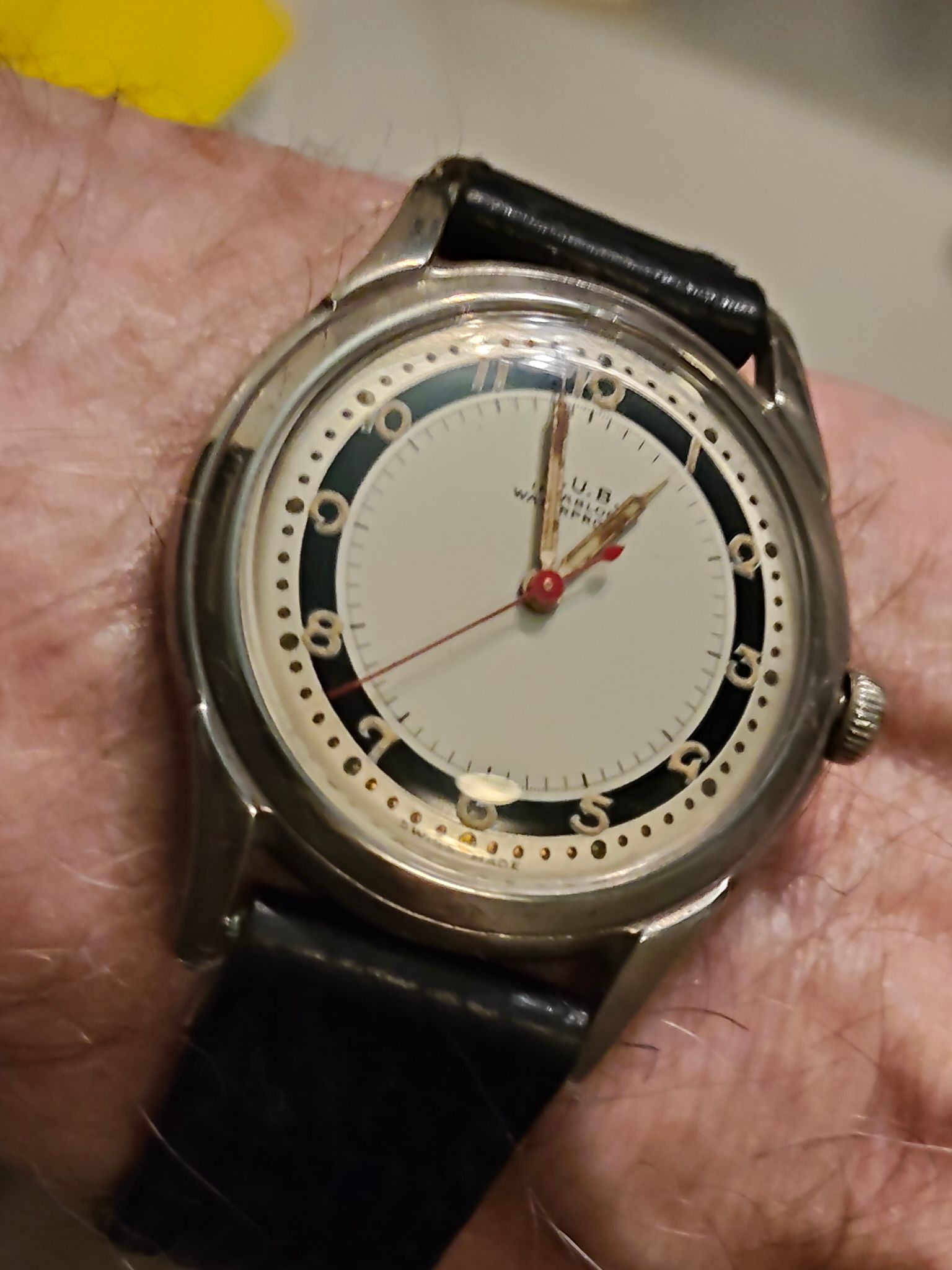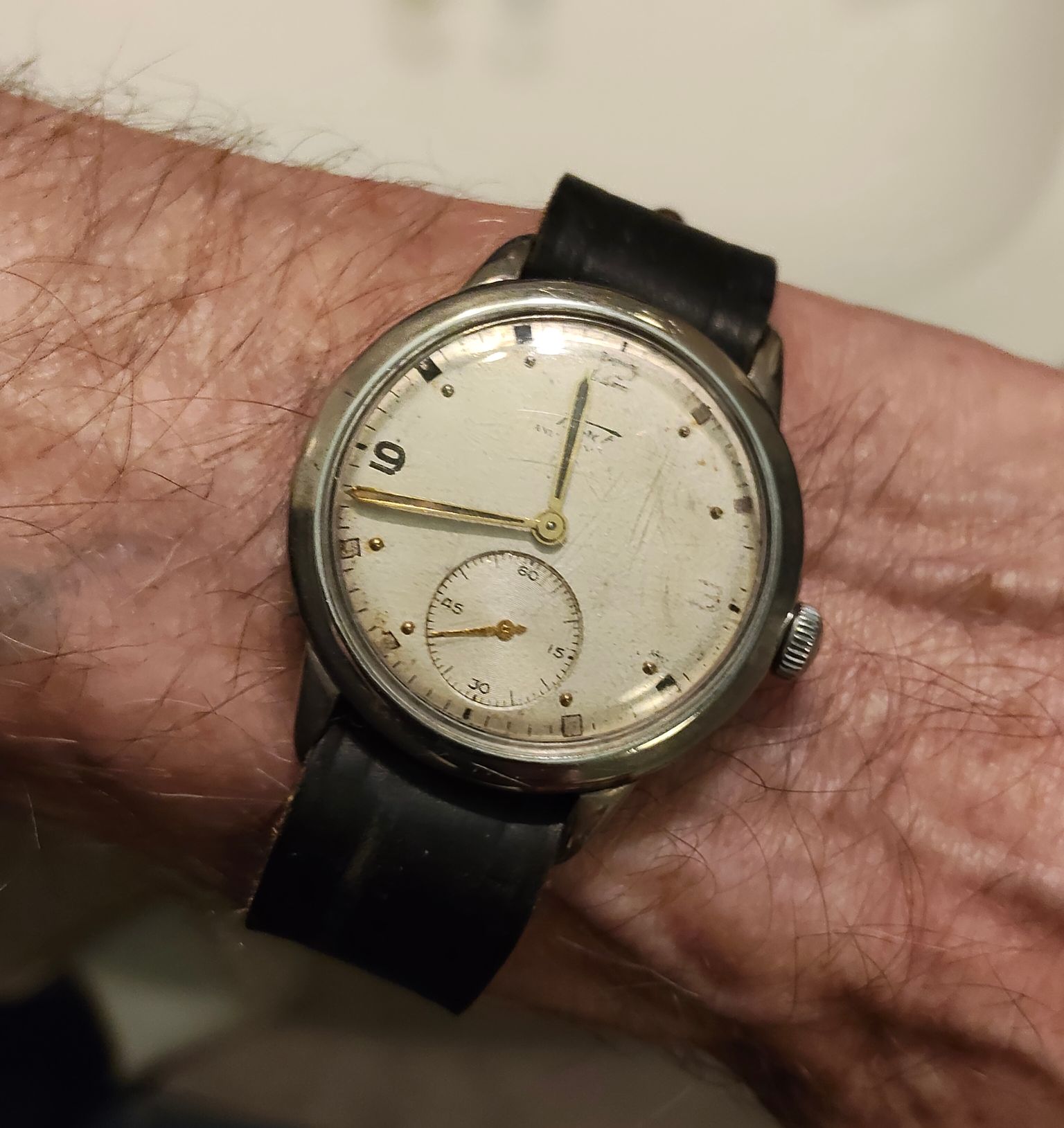 De combinatie van mijn typisch Duits jaren 50/60 design, zeg maar ‘Pforzheim stijl’, horloge en het eveneens uit Pforzheim afkomstige Henzi & Pfaff uurwerk is dus bepaald niet vreemd.