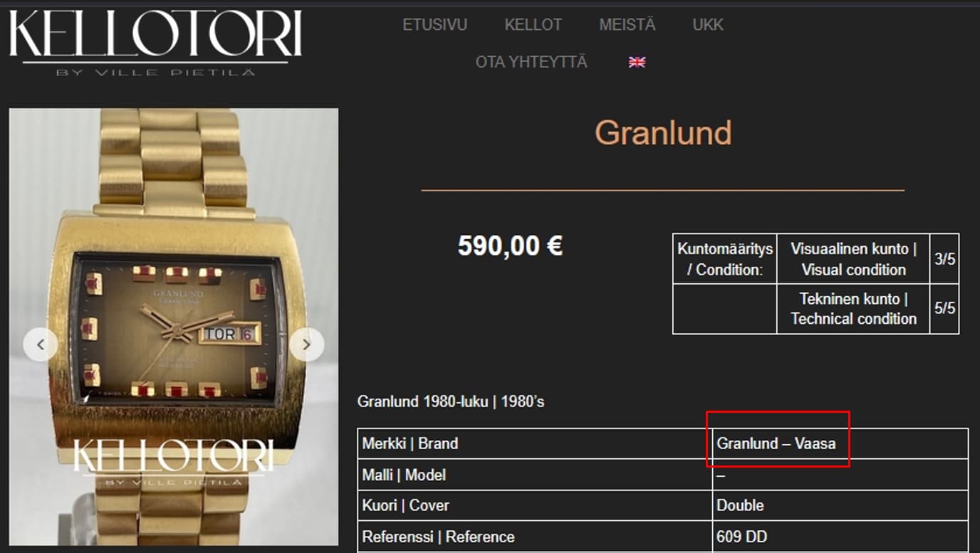 Dat kan niet missen. Granlund is dan misschien geen horlogefabrikant, maar wel degelijk een horlogemerk wat door een Finse firma / juwelier wordt gevoerd.