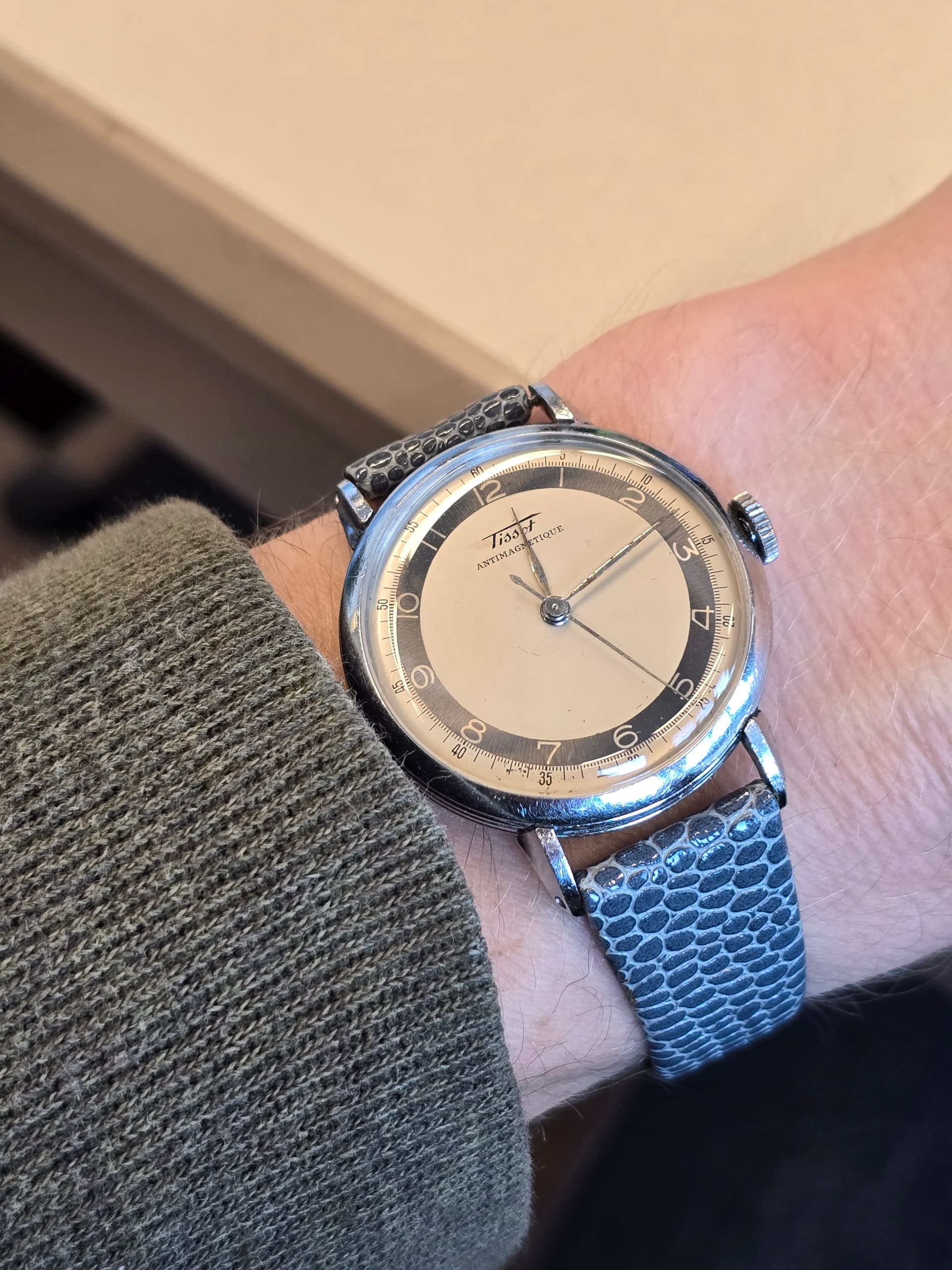 Ik vind het storend dat de ring met Romeinse cjjfers niet netjes uitgelijnd is met de ring daarbuiten. De 2 staat bv niet precies tegenover het zwarte driehoekje van de 10 minuten en de 3 staat iets te hoog t.o.v. het datumvenster. En ik houd niet zo van Romeinse cijfers. Duidelijk niet mijn lievelingshorloge… ![]()