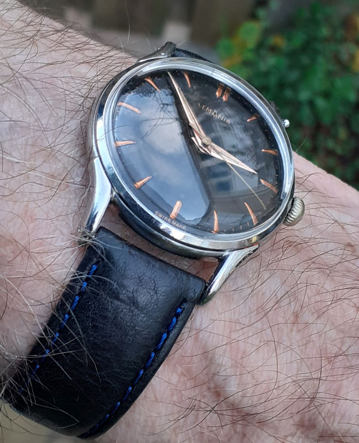 Vandaag een wat elegantere verschijning om de pols — deze Lemania uit de jaren ’60. Binnenin tikt het LWO 3060-kaliber, een mooi 17-steens handopwinduurwerk dat Lemania destijds nog volledig zelf produceerde.