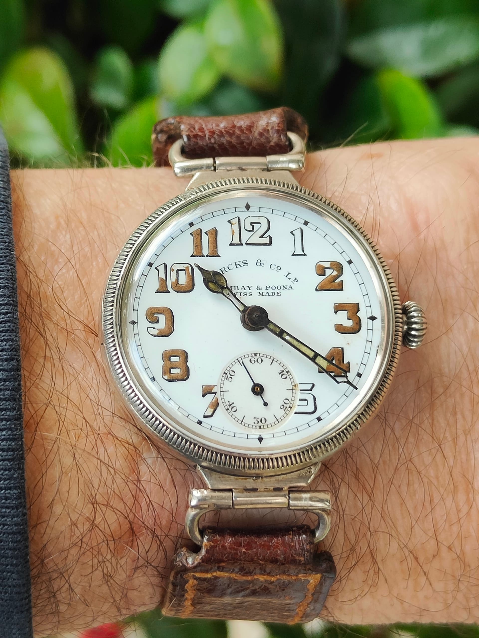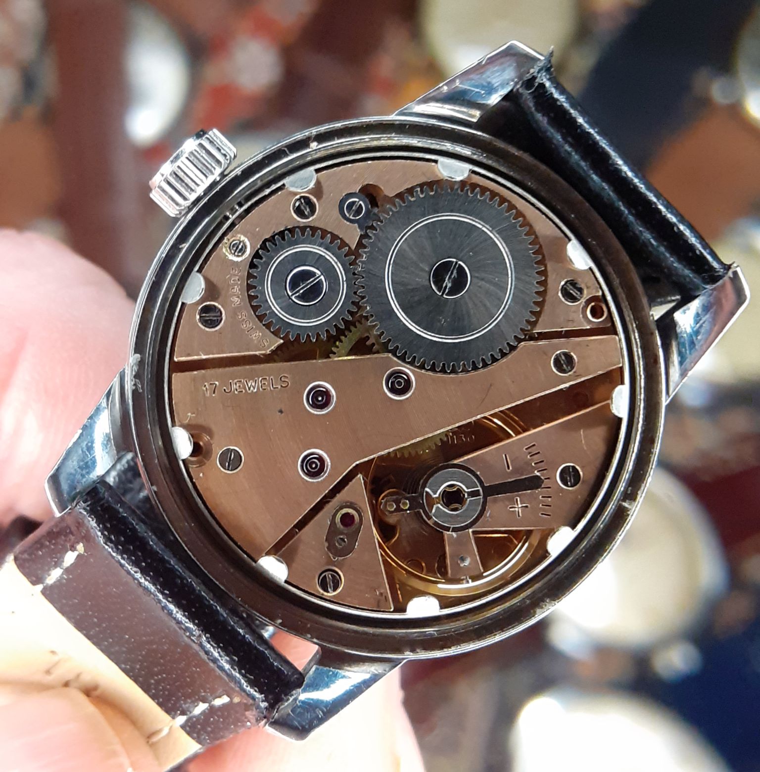 De wijzerplaat toont een prachtig gelijkmatige patina, dat het horloge zijn eigen unieke karakter geeft. Ondanks zijn leeftijd loopt het nog uitstekend.