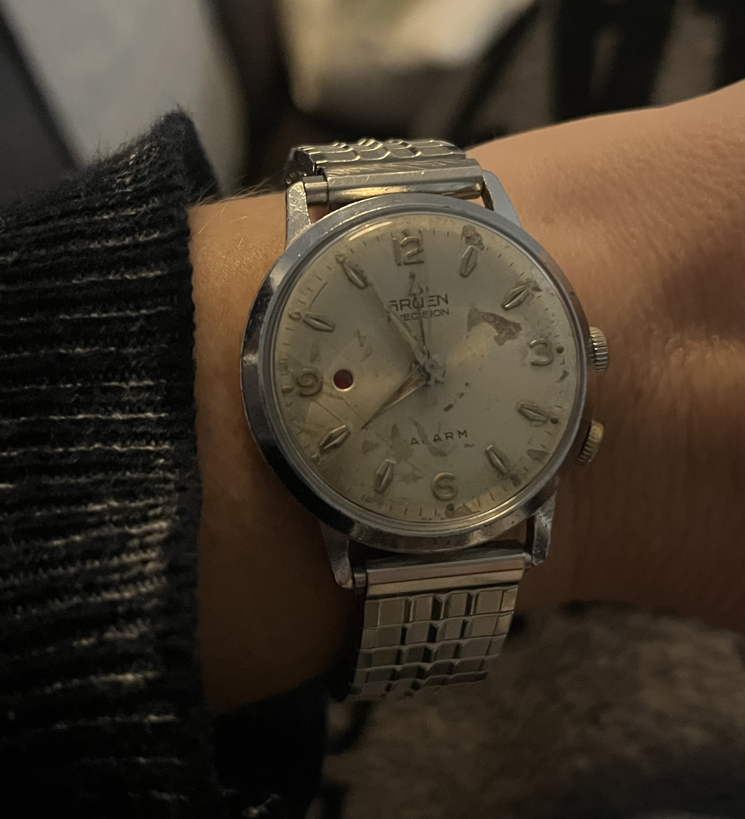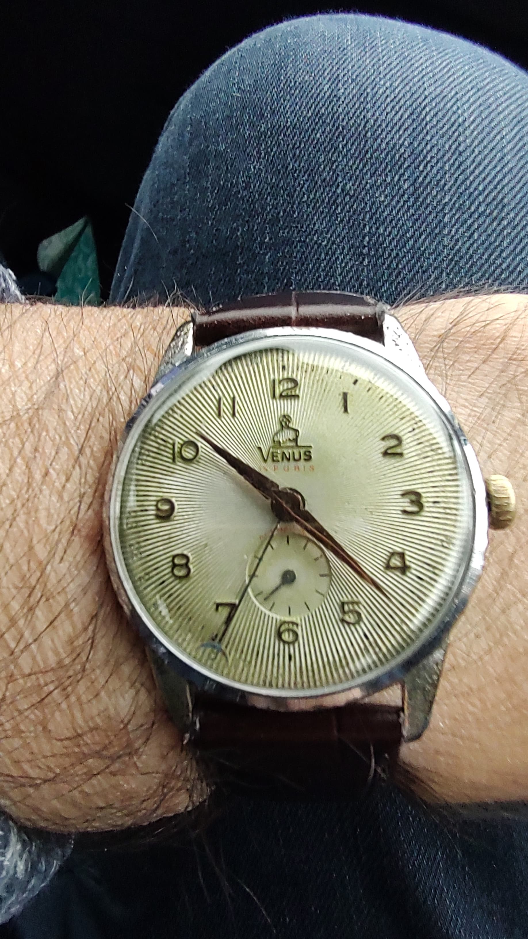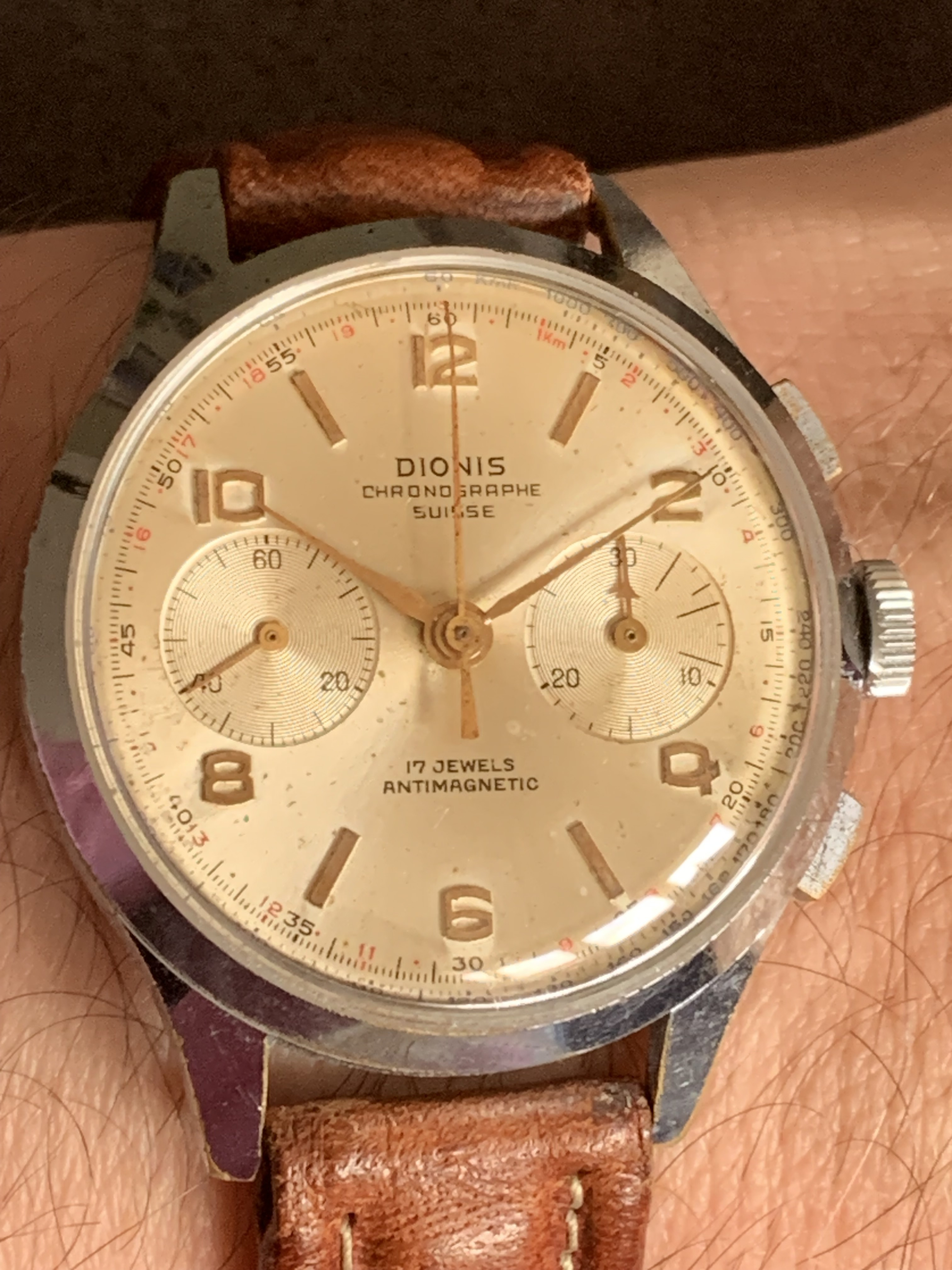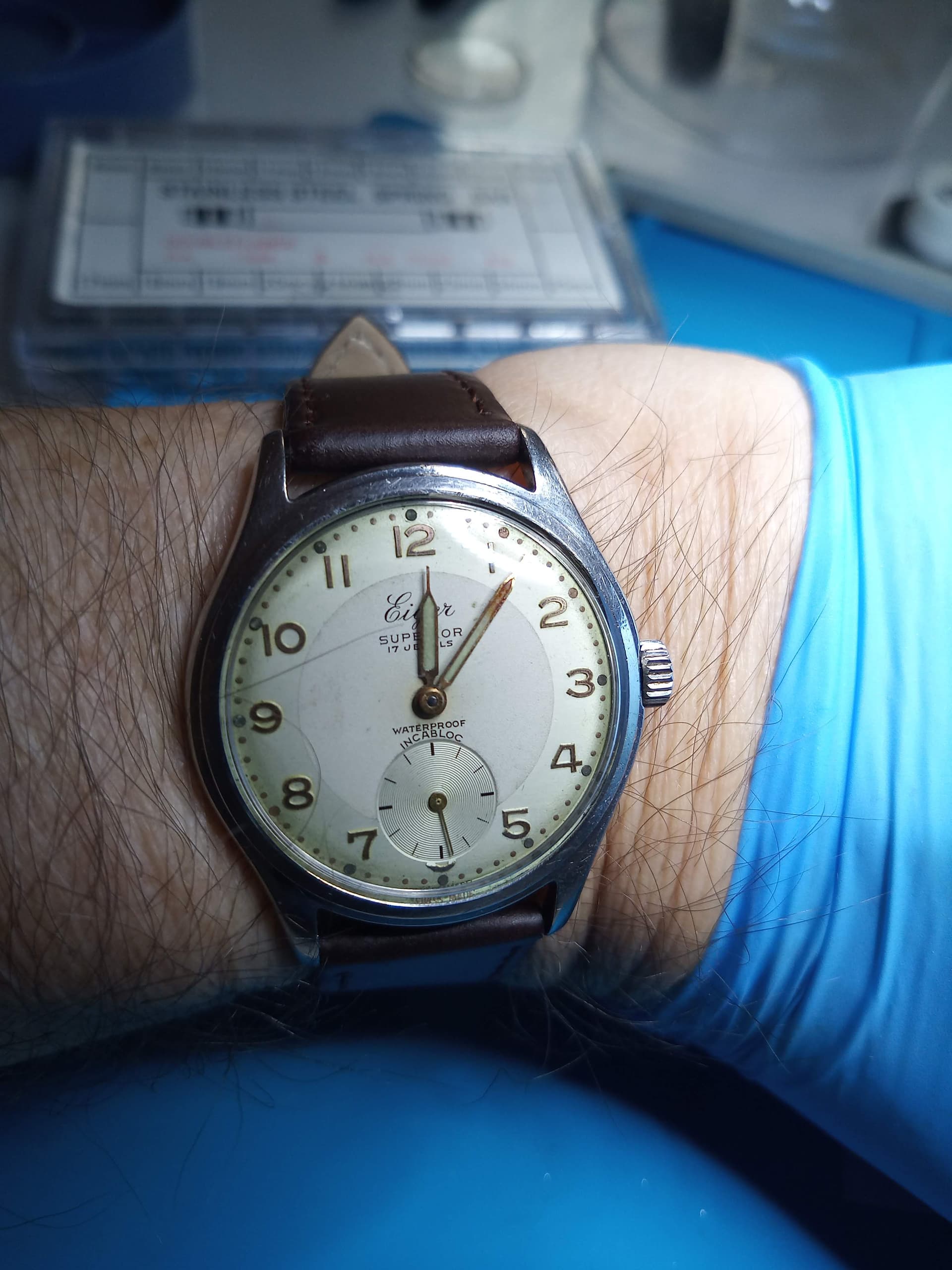 Deze eind 1920’s zilveren 13 ligne Tissot weer een dagje. Kast schoongemaakt en een nieuw bandje van de Rikketik. Een lichter bandje en iets meer taper zou mooier zijn, maar voor 5 Euro kun je niet alles hebben. In elk geval beter dan de perlon die erop zat ![]()