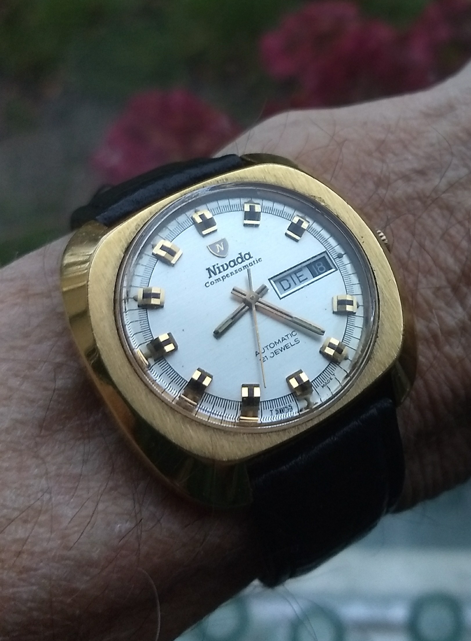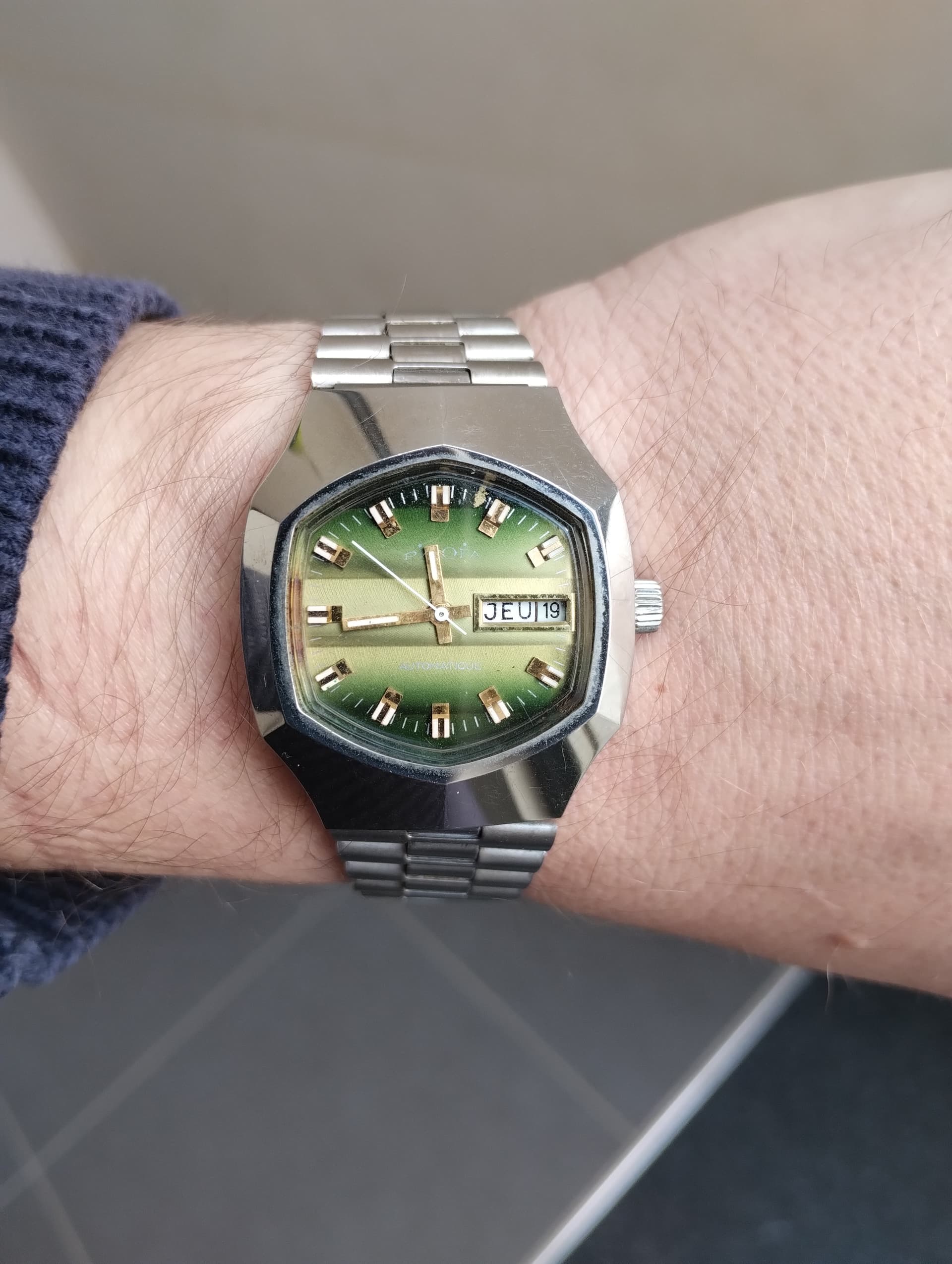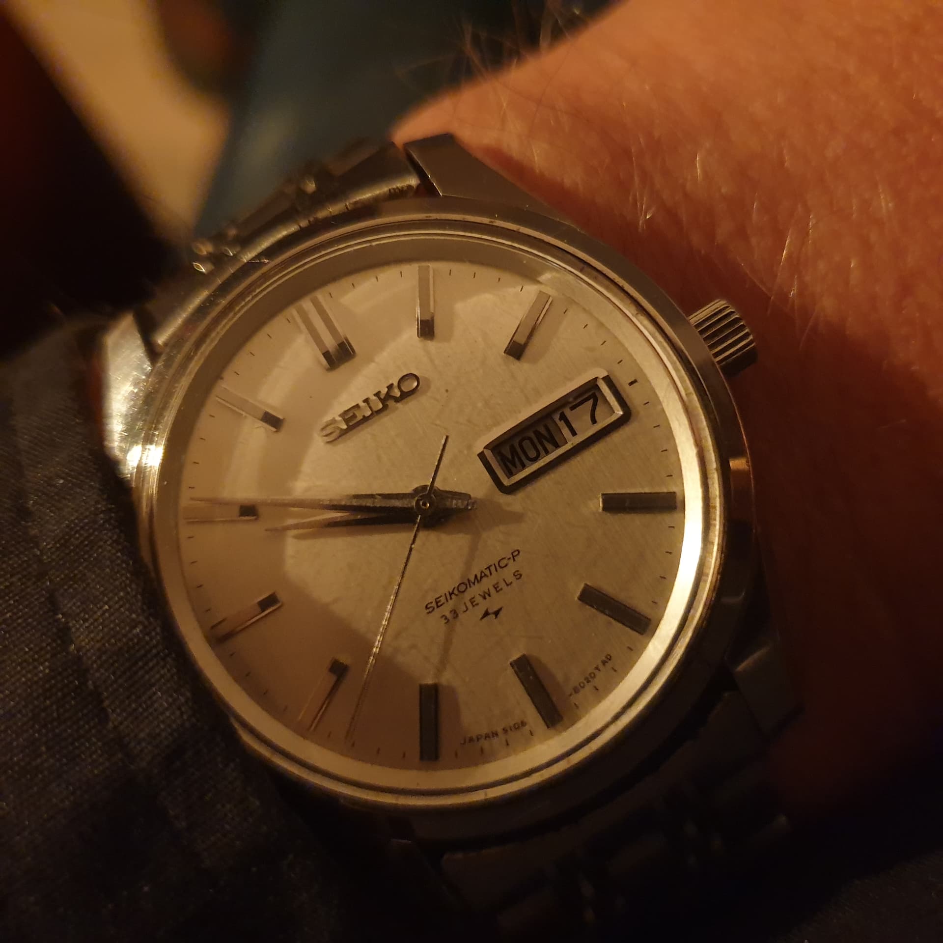 Ik vind deze Seiko Sportsman 7 stiekem erg leuk. Ik vind het wel leuk, dat men, voor die tijd, een budget horloge voorzag van een stalen kast en de gegraveerde indices verguld heeft en zelfs de opdruk in goudkleur hebben gedaan.