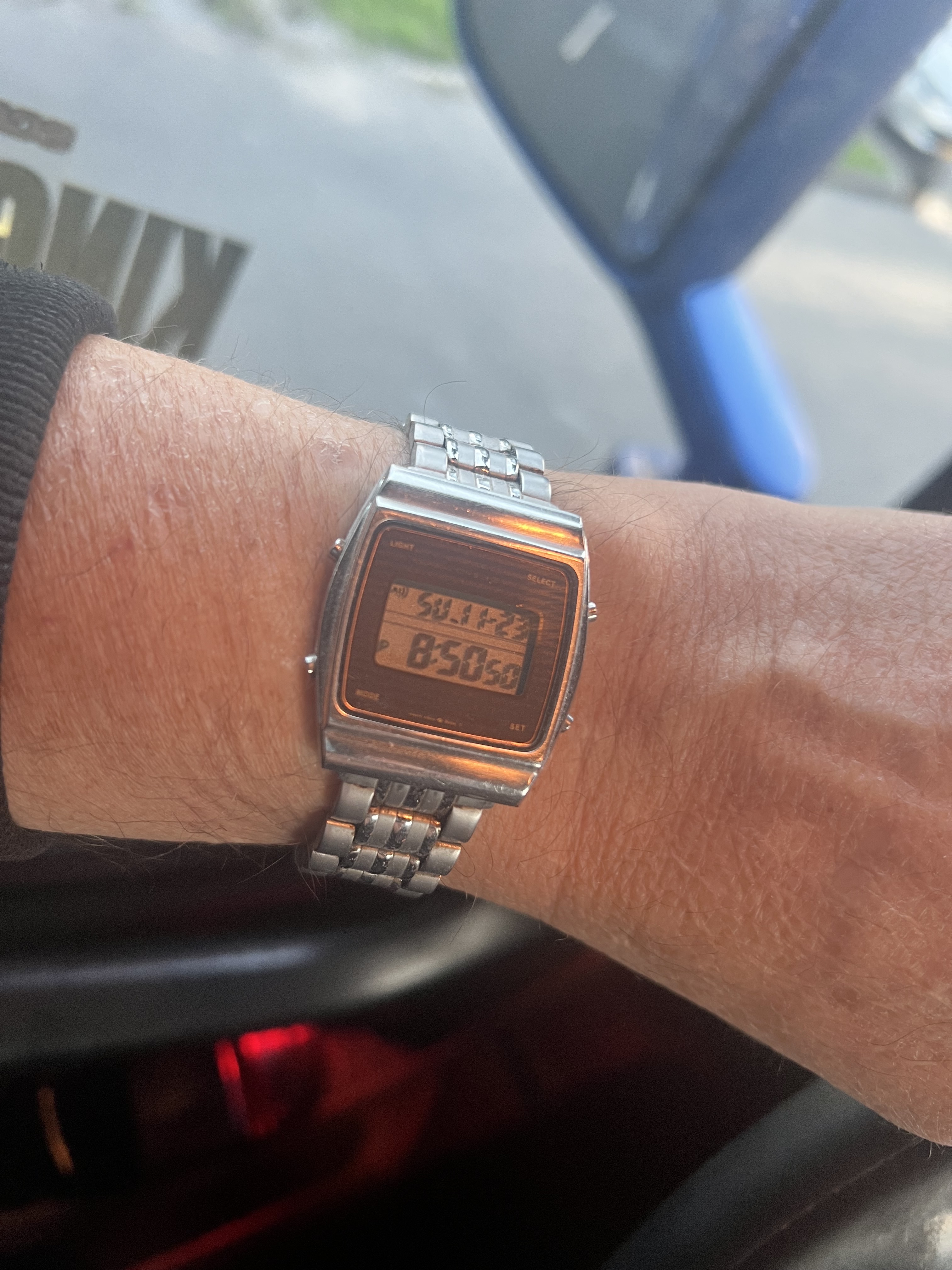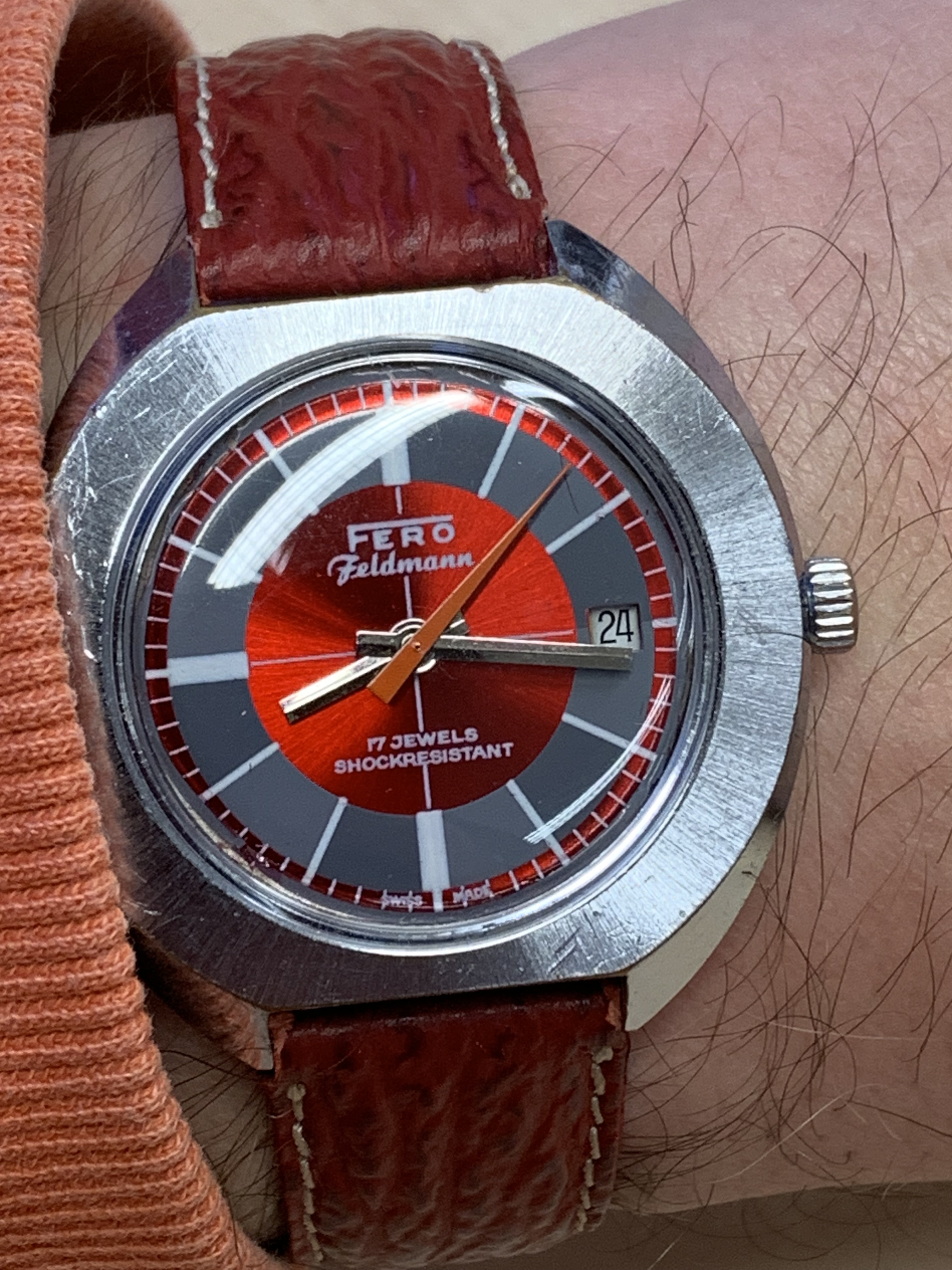 Het zal waarschijnlijk uit de jaren ’60 of ’70 komen, met die typische compacte kast en arabische cijfers die zo mooi verkleurd zijn. De achterdeksel kreeg ik er met veel moeite af, maar het was de moeite waard om het uurwerk in deze staat te zien.