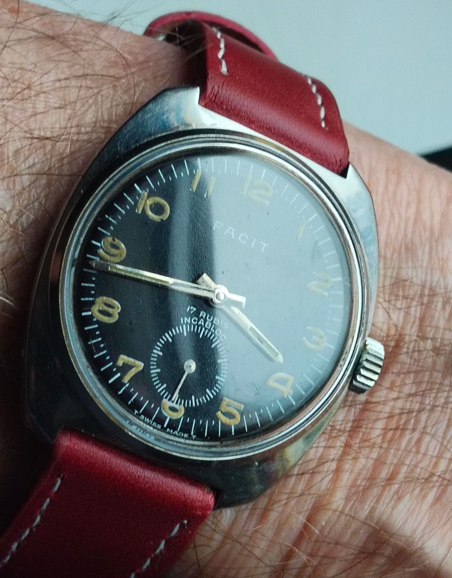 Vandaag draag ik een eenvoudig maar charmant horloge van het merk Facit. In de kast tikt een Unitas UT6325, een uurwerk dat nog opvallend netjes bewaard is gebleven. De binnenkant ziet er bijna ongeschonden uit, alsof er in al die jaren nauwelijks aan gesleuteld is.