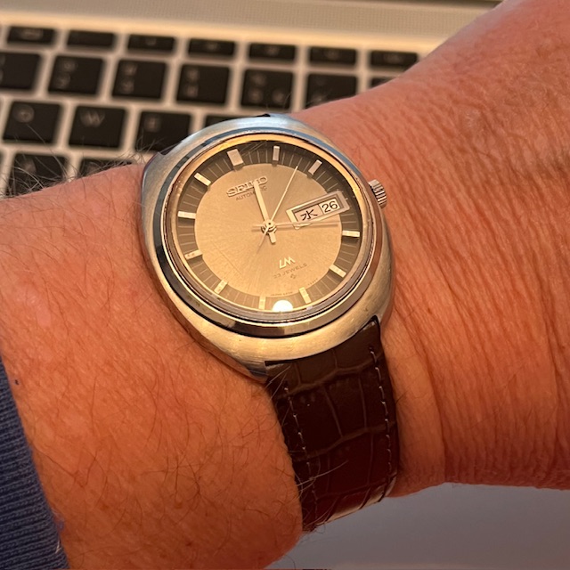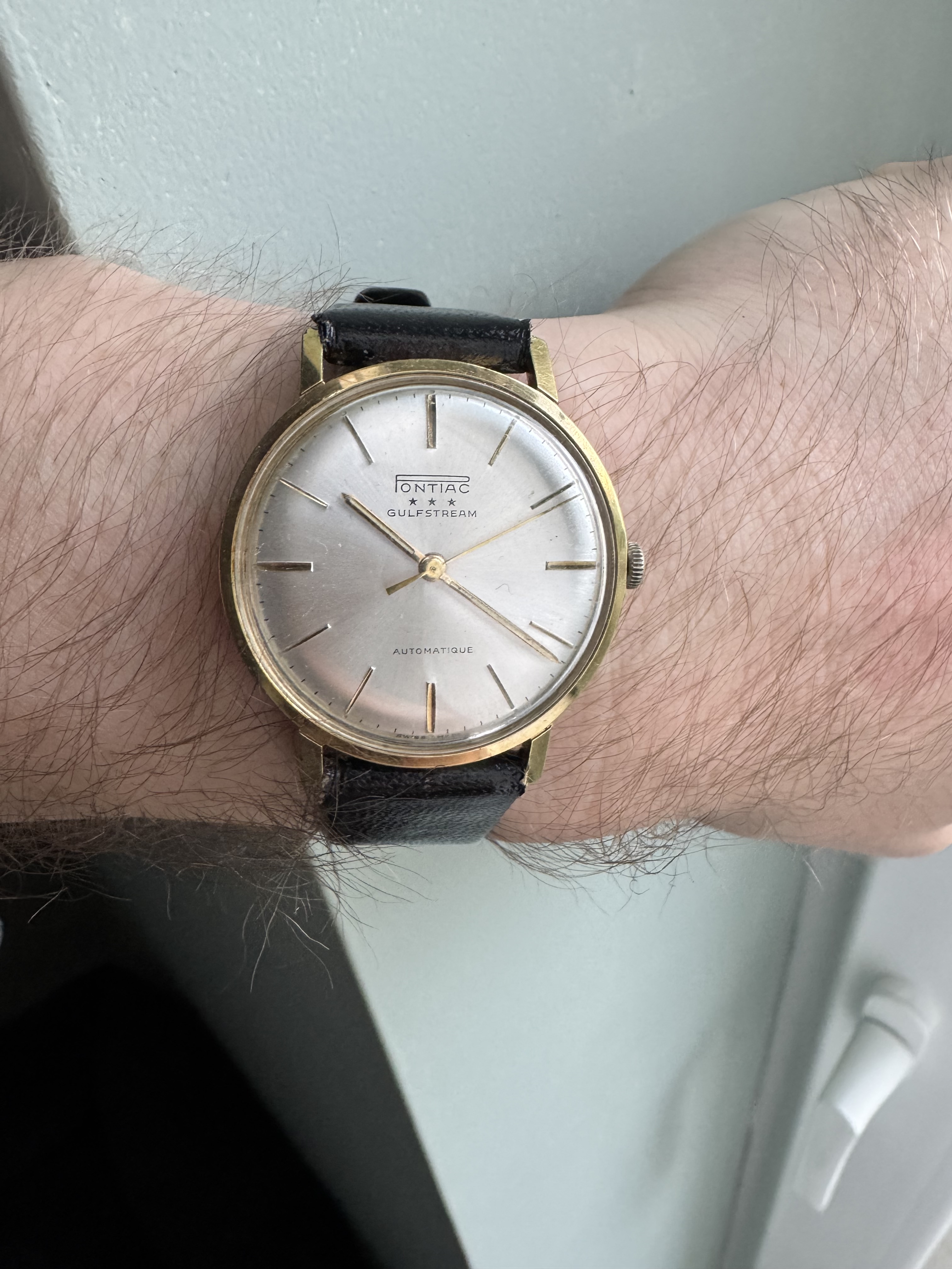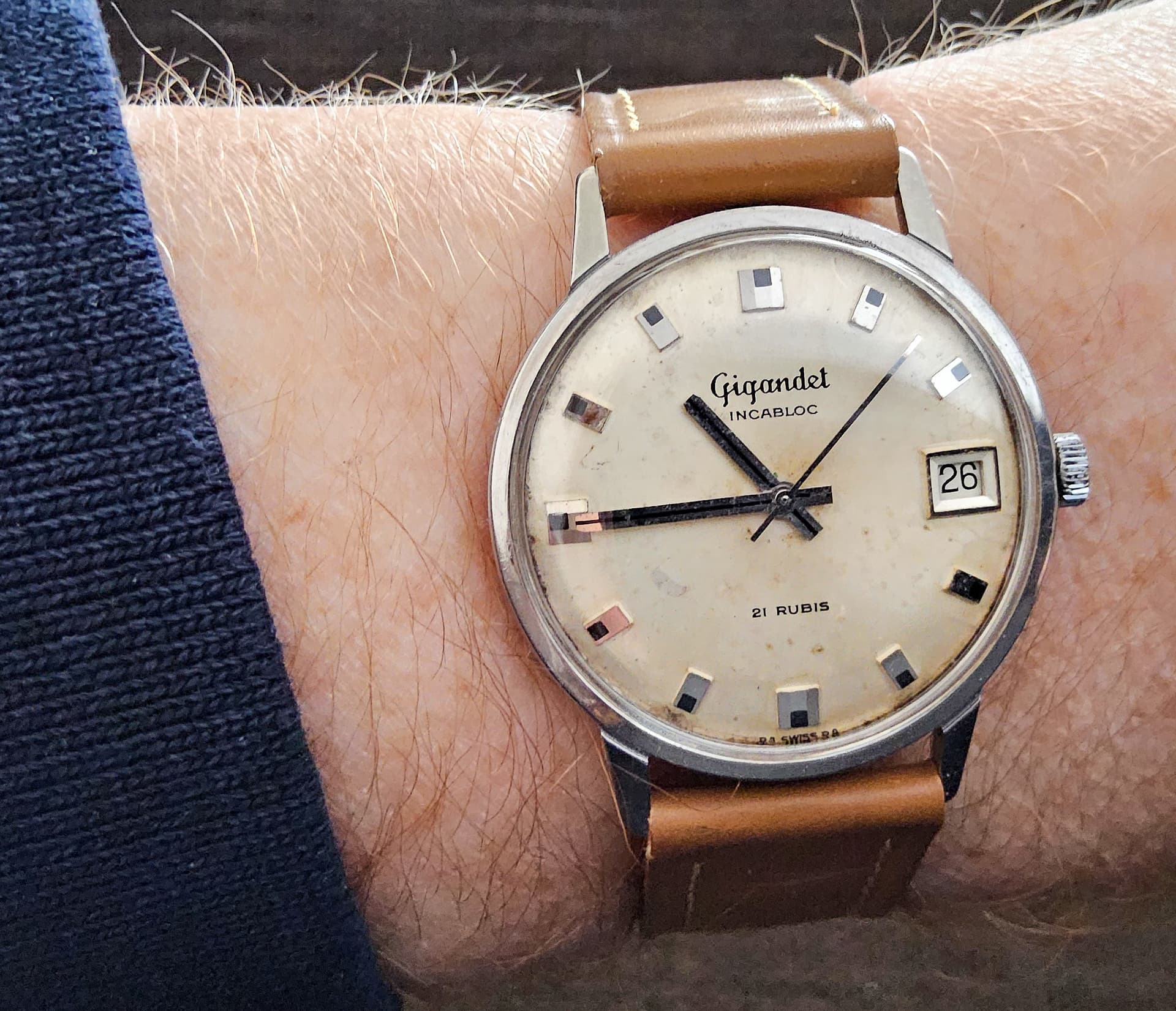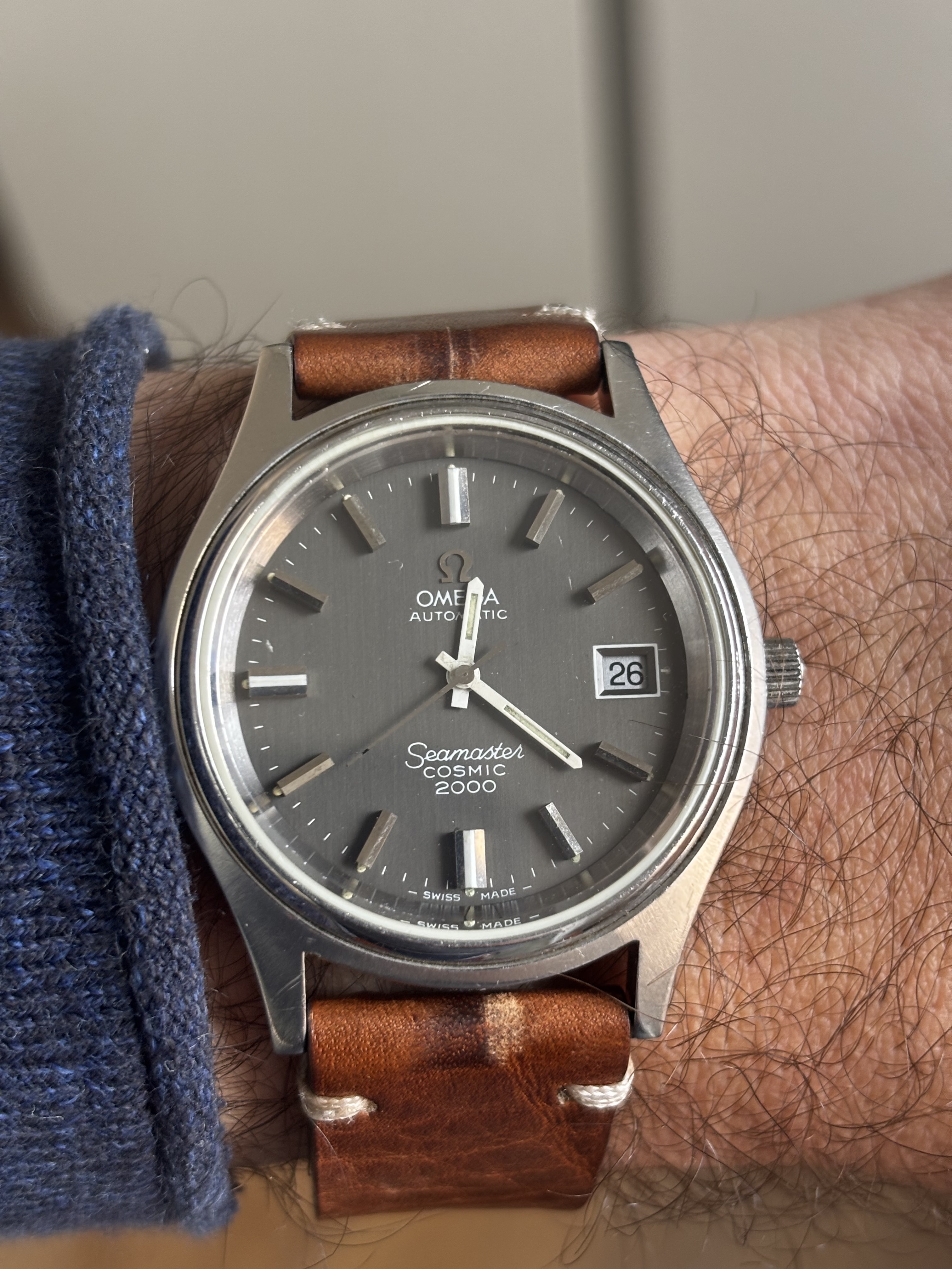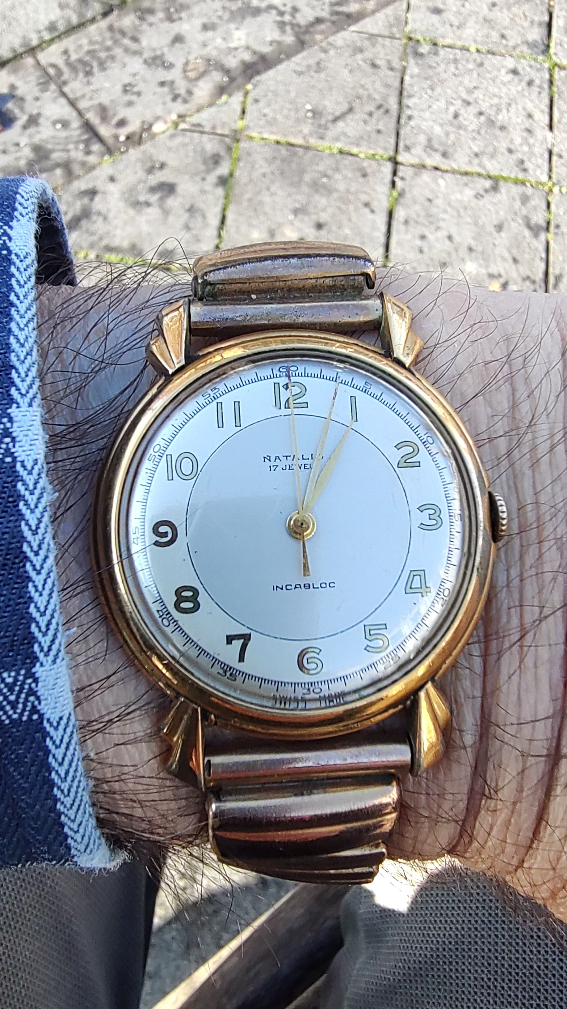 Vandaag draag ik deze opvallende Cimer-chronograaf. Het is een model dat je niet vaak tegenkomt, zeker niet met zo’n grote, felrode rekenring rond de kast. Binnenin zit een eenvoudig penanker-uurwerk.