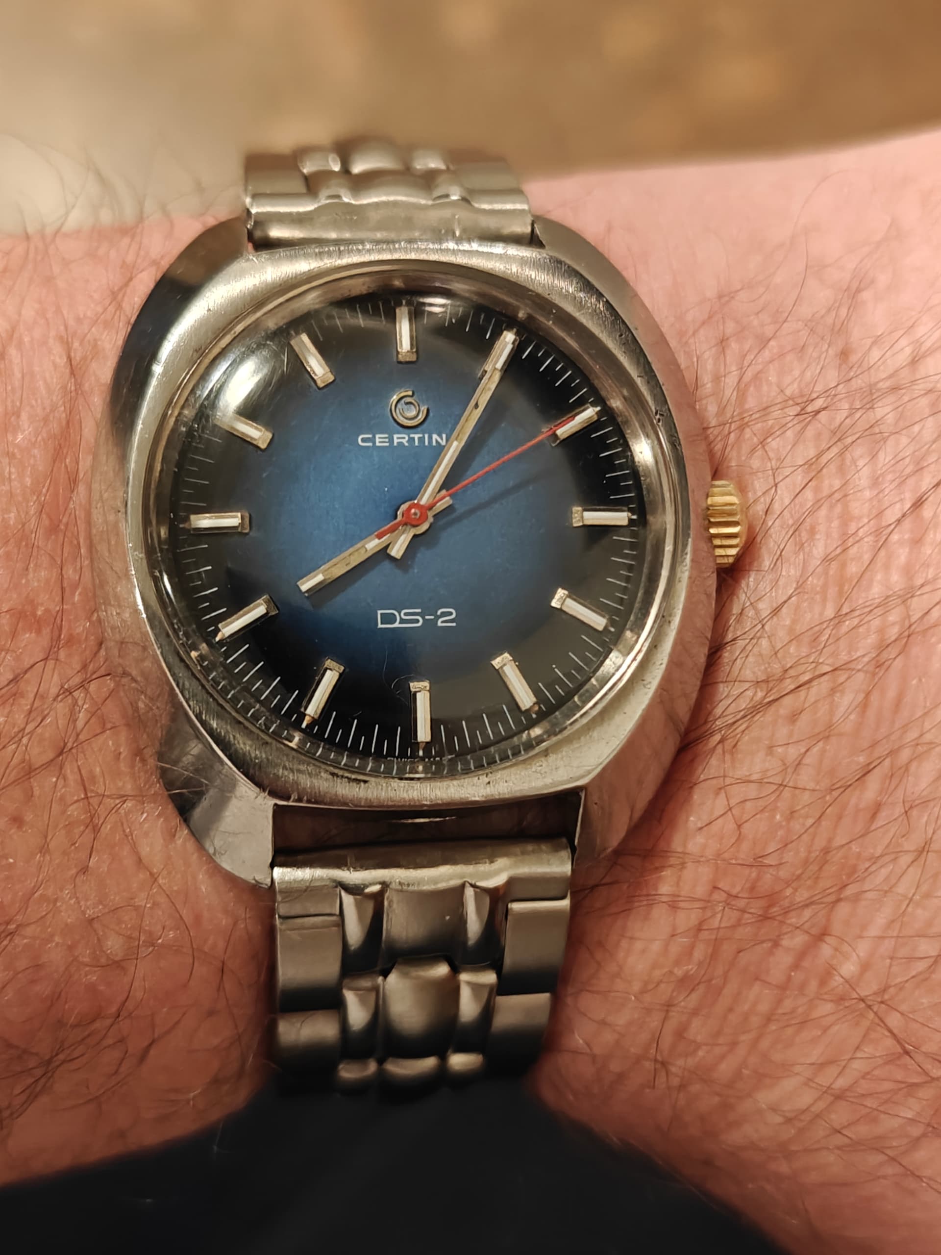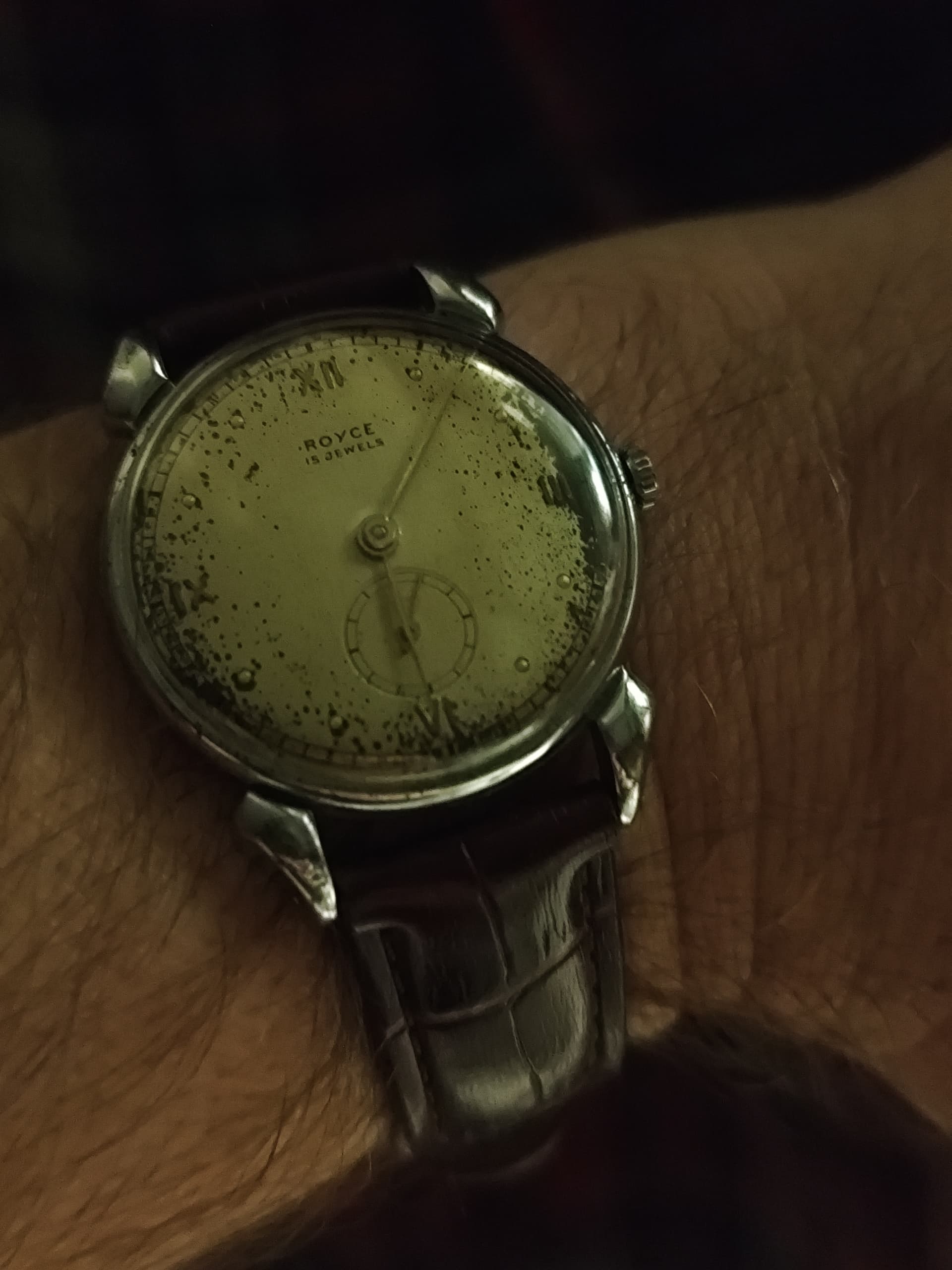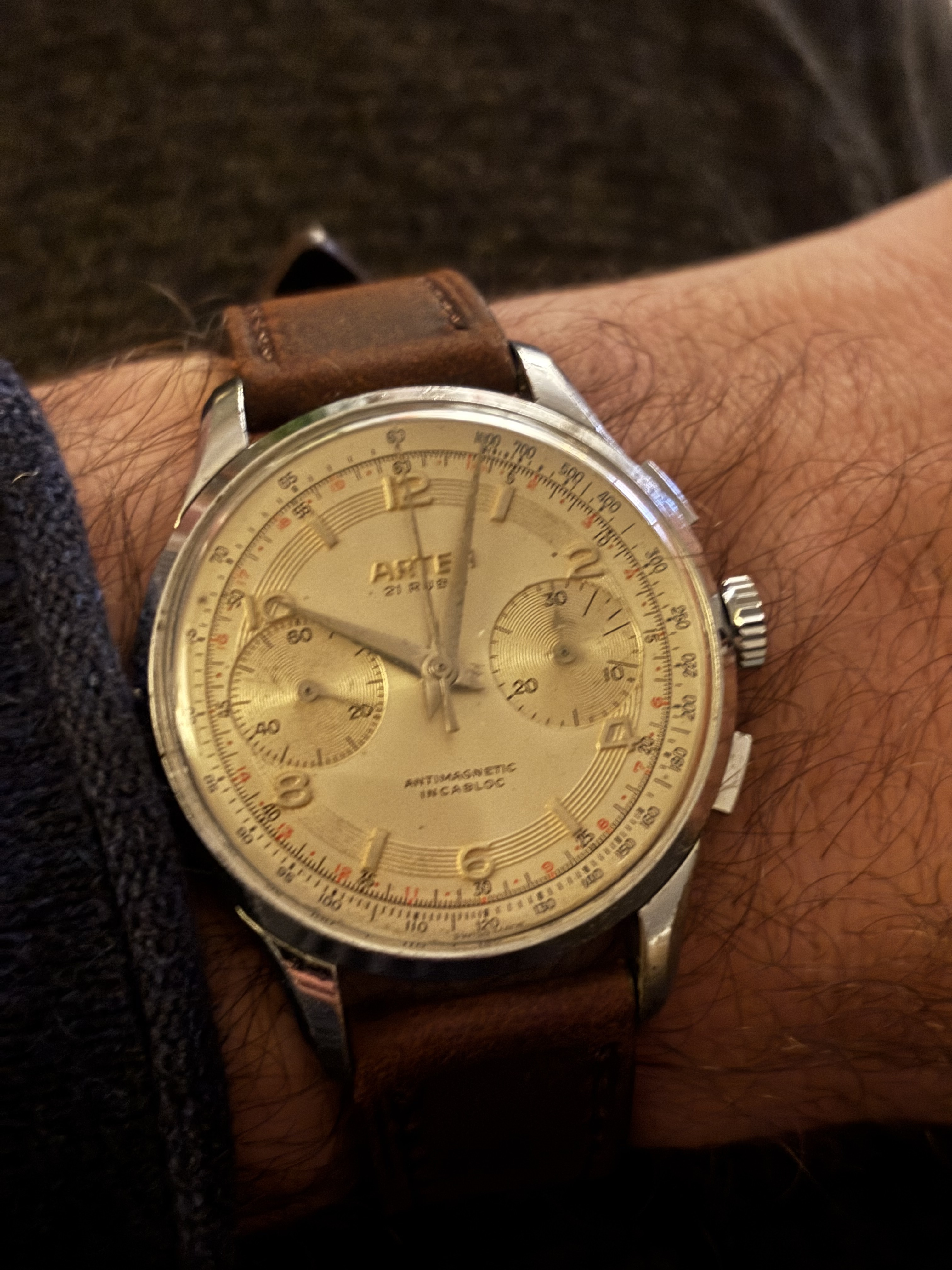 Binnenin tikt een FHF 25-kaliber, dat ik onlangs een servicebeurt heb gegeven. Ook heb ik het horloge voorzien van een nieuw glas. De kast ga ik later nog opnieuw verchromen.