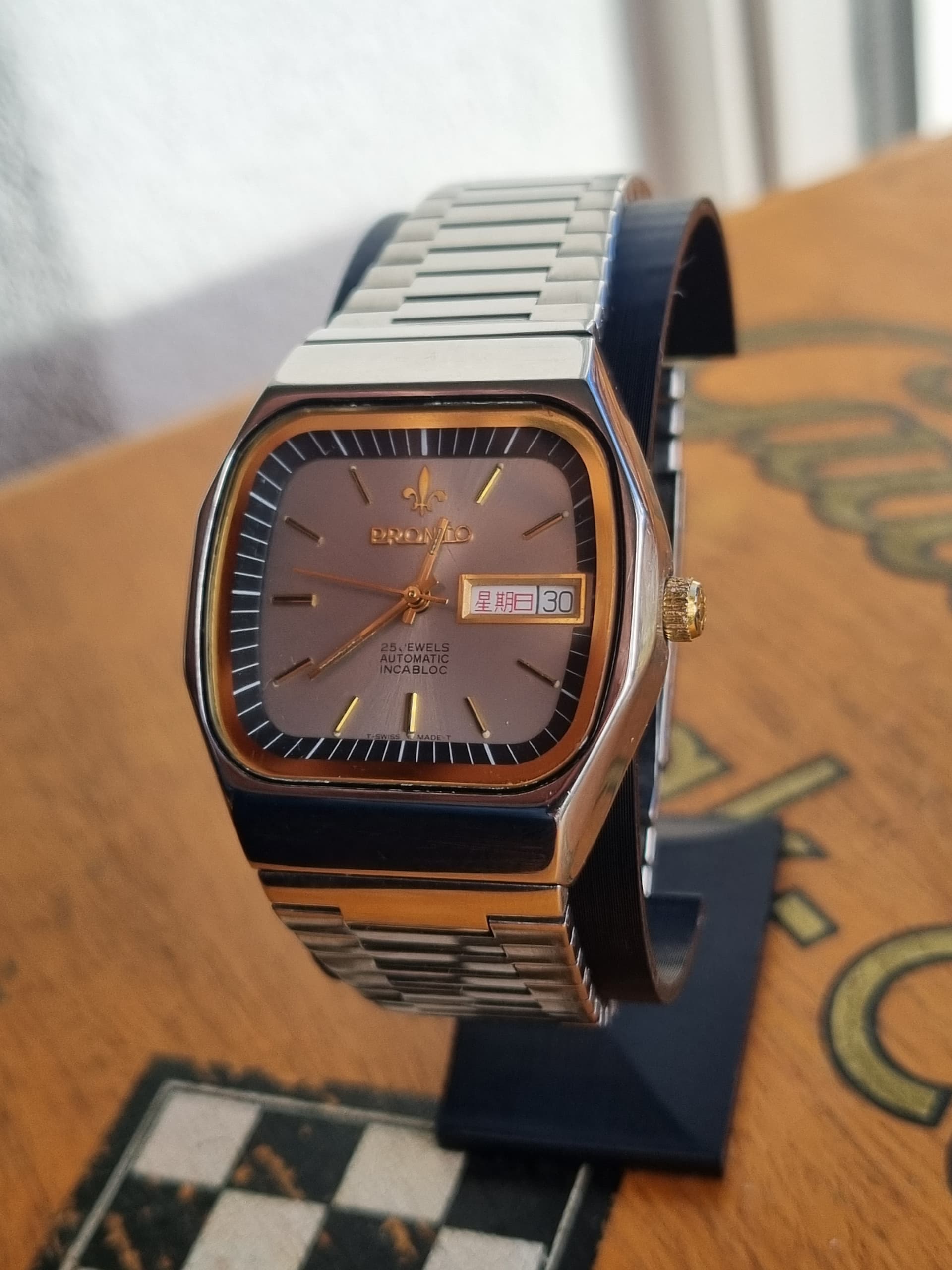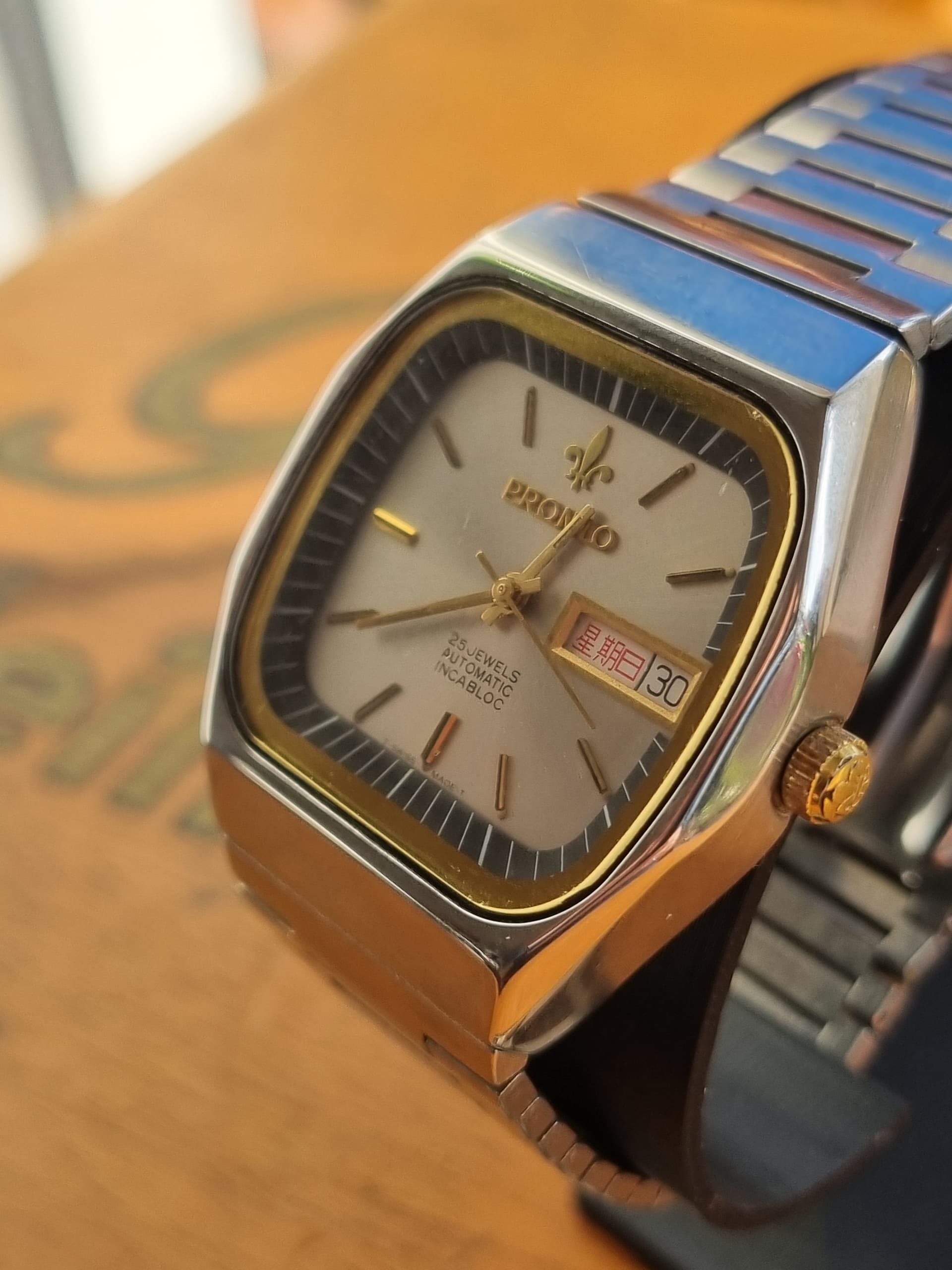 Soms vindt ik nog een nieuwe aanwinst in de pronto familie. Net binnen deze NOS Eta 2836-2 rond 1983 gemaakt. Bijpassende orginele band en erg mooie kast.