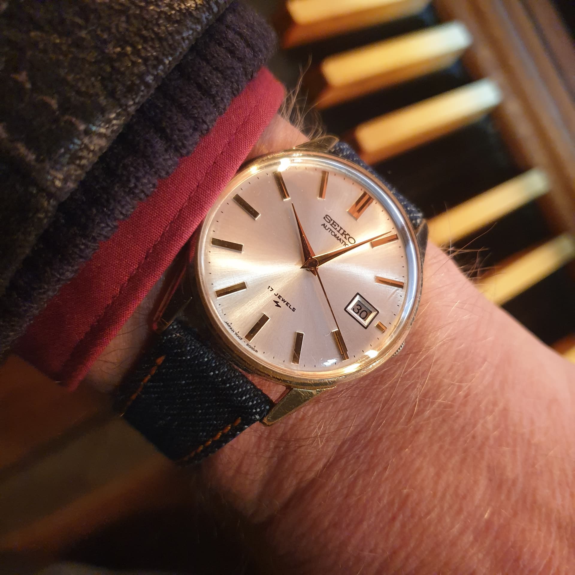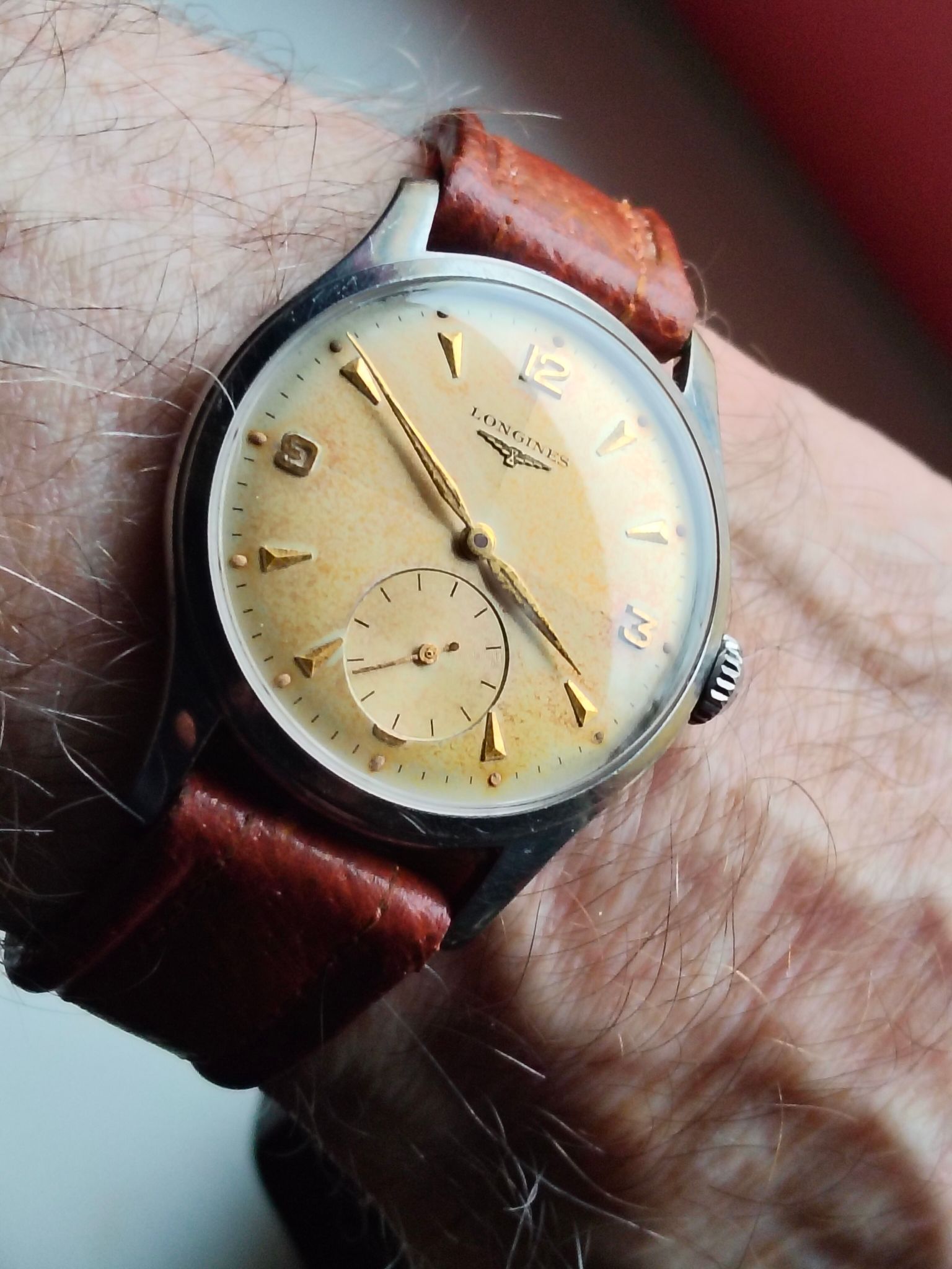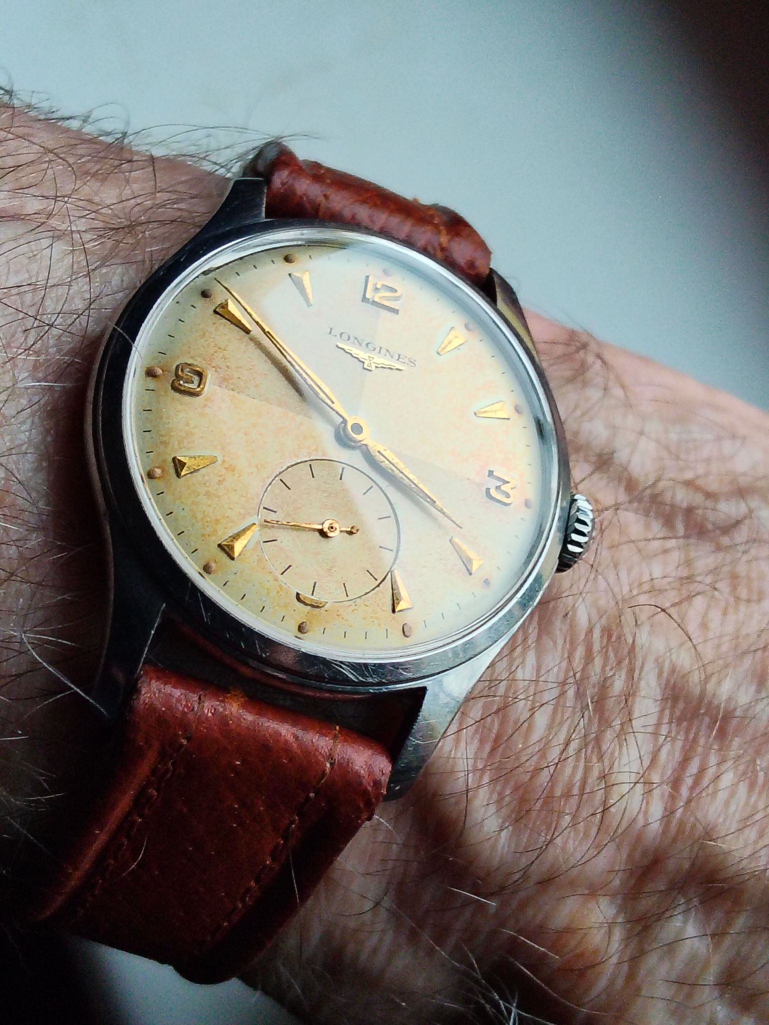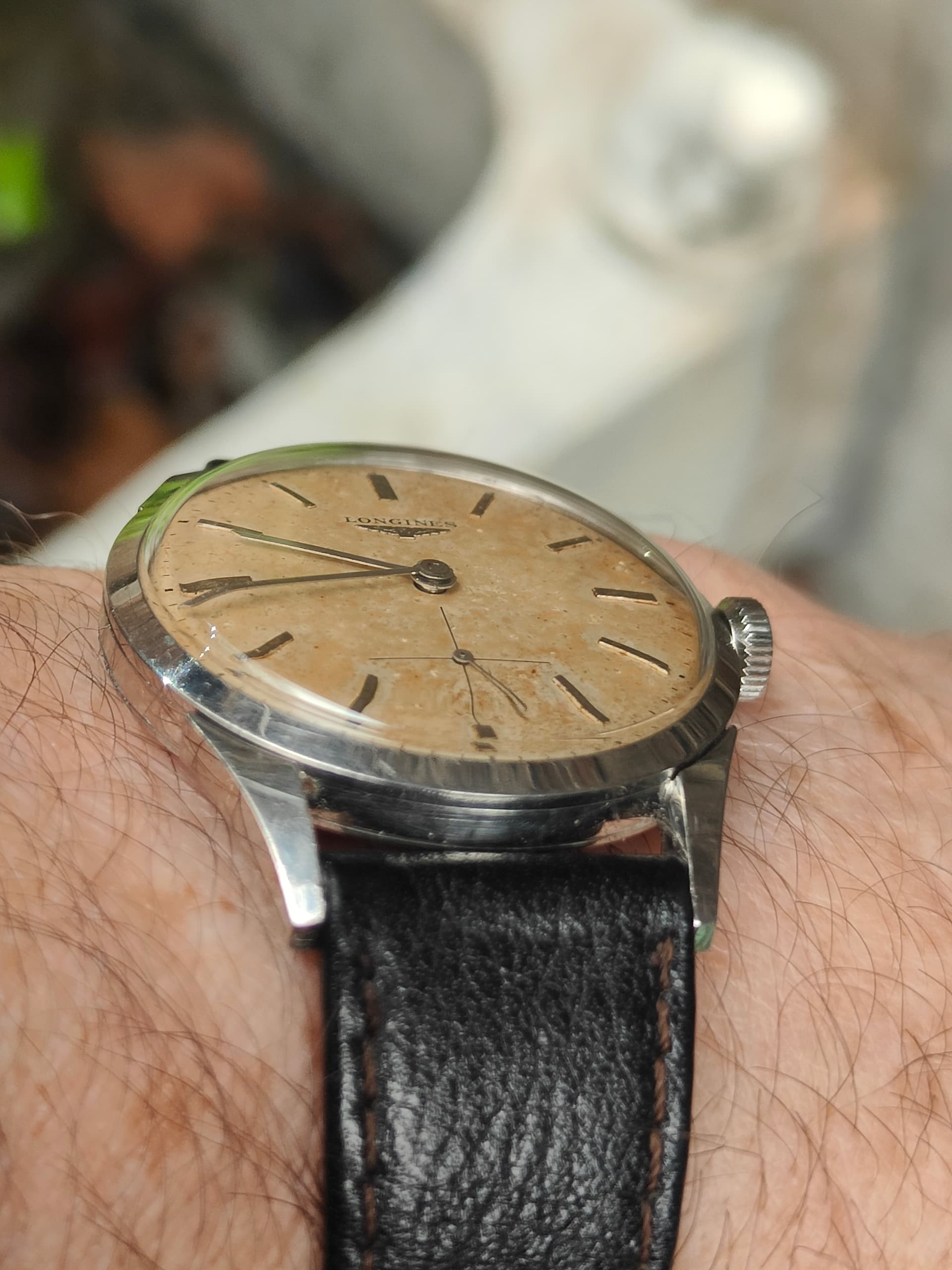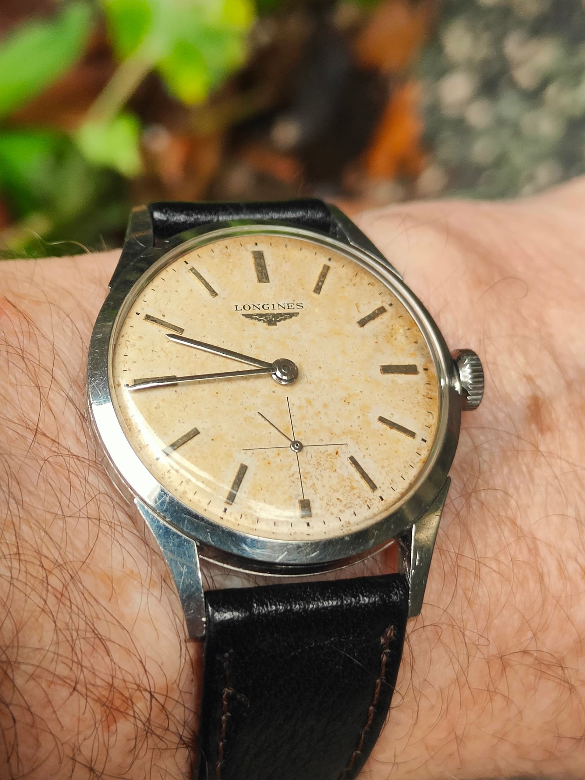 Een heel oudje. Mijn eerste Omega welke mijn opa destijds van mijn oma heeft gekregen toen ze gingen trouwen. Originele stalen band vervangen door een leren band.