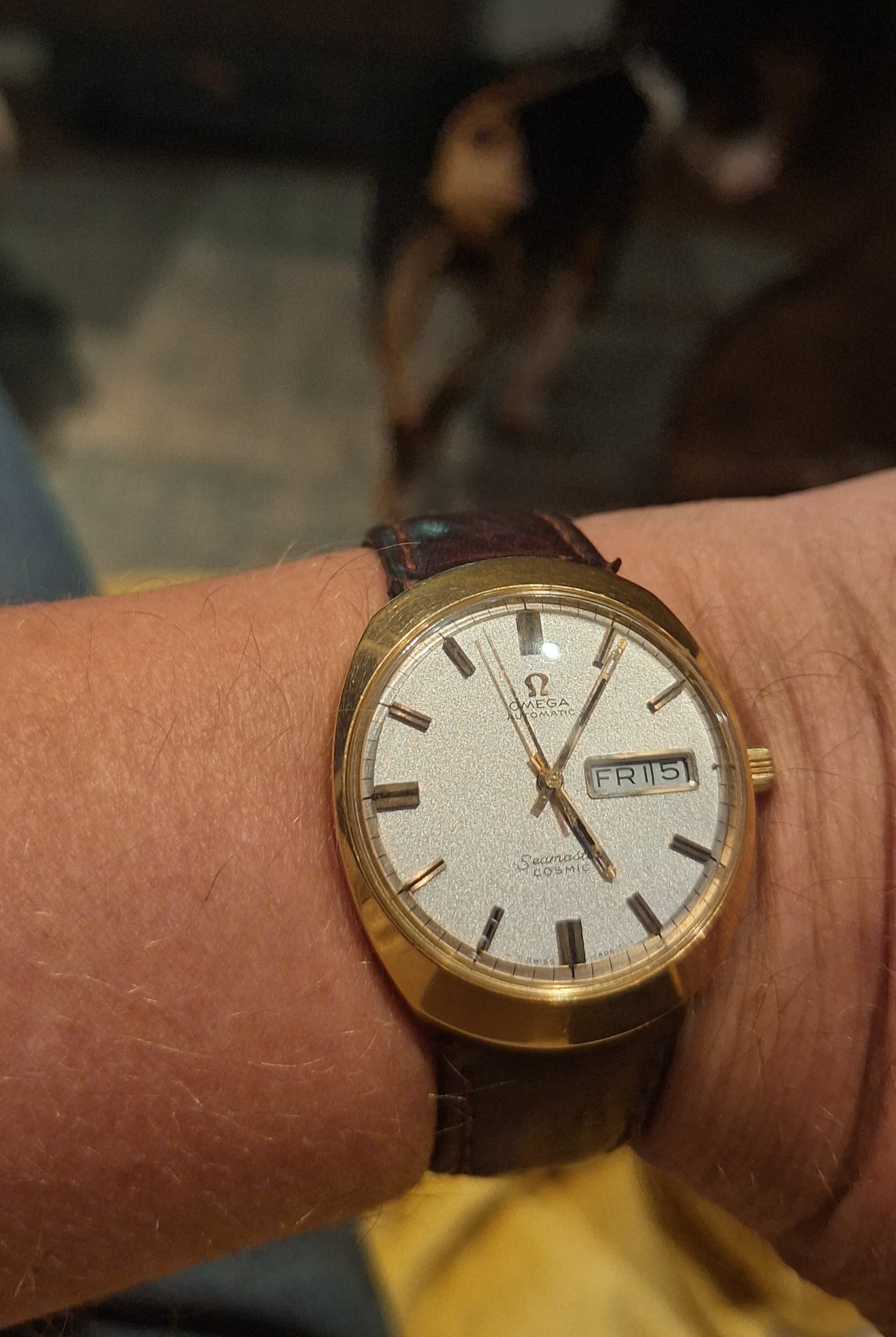 Geen idee maar na zeker twintig jaar lichte afkeer van 't ding (vanwege de goudkleur dial dus - kast en werk verder prima) werd ik er vorig jaar op gewezen dat die van oorsprong prachtig blauw was (nog te zien aan de niet verkleurde delen
