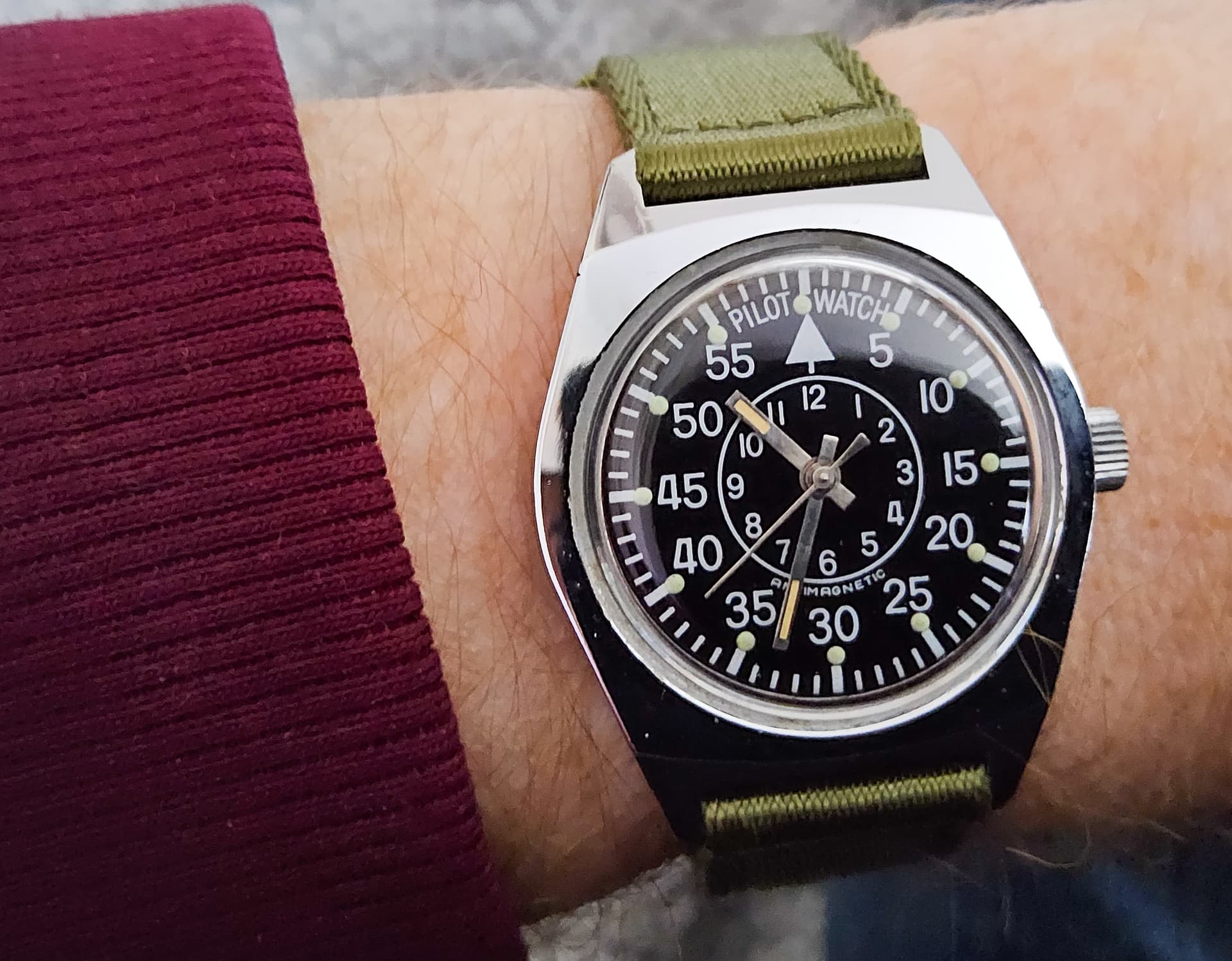 Een Pilot Watch. Ziet er heel erg militair uit maar is gewoon een Ruhla onder een fantasie naam.