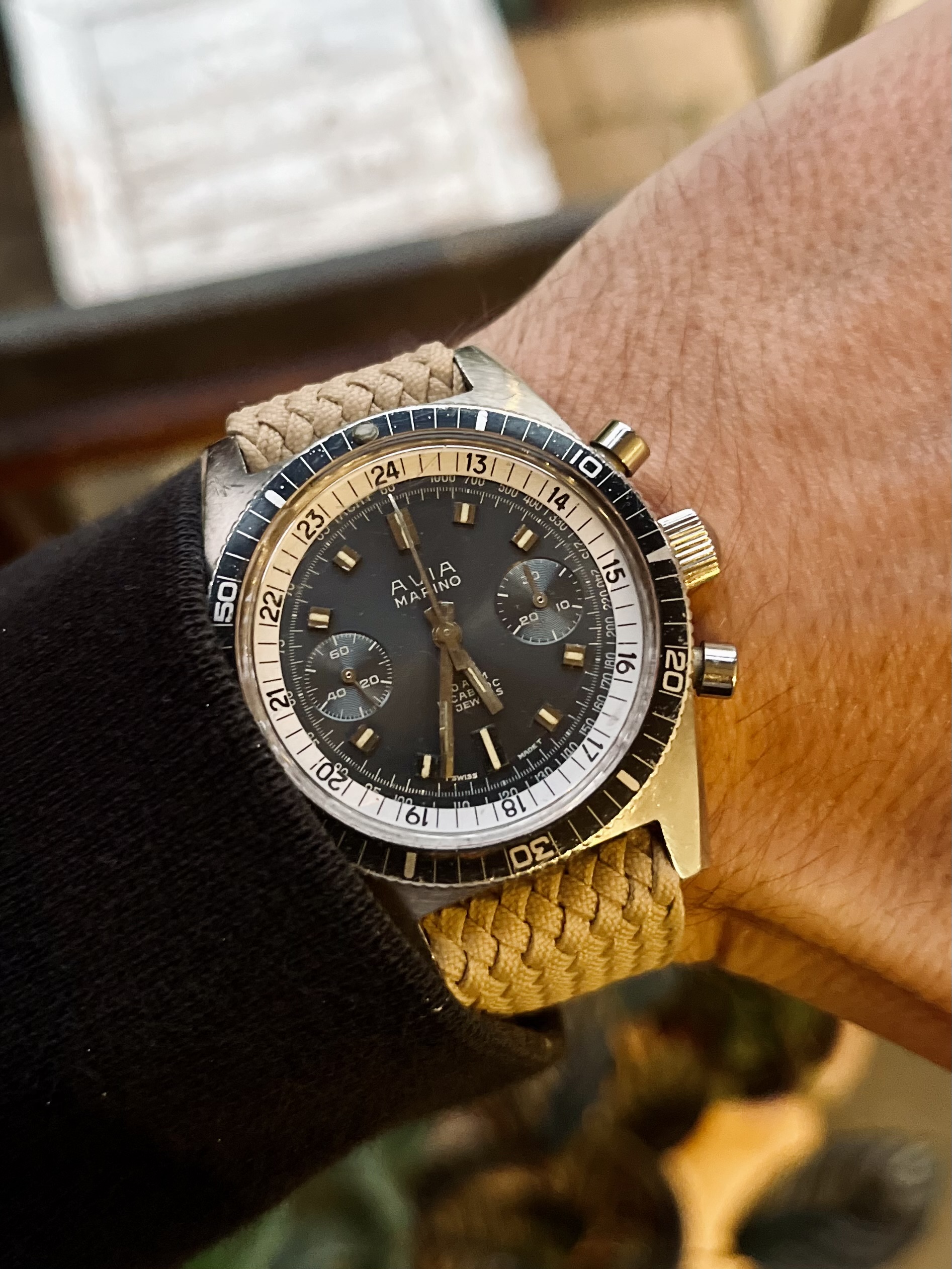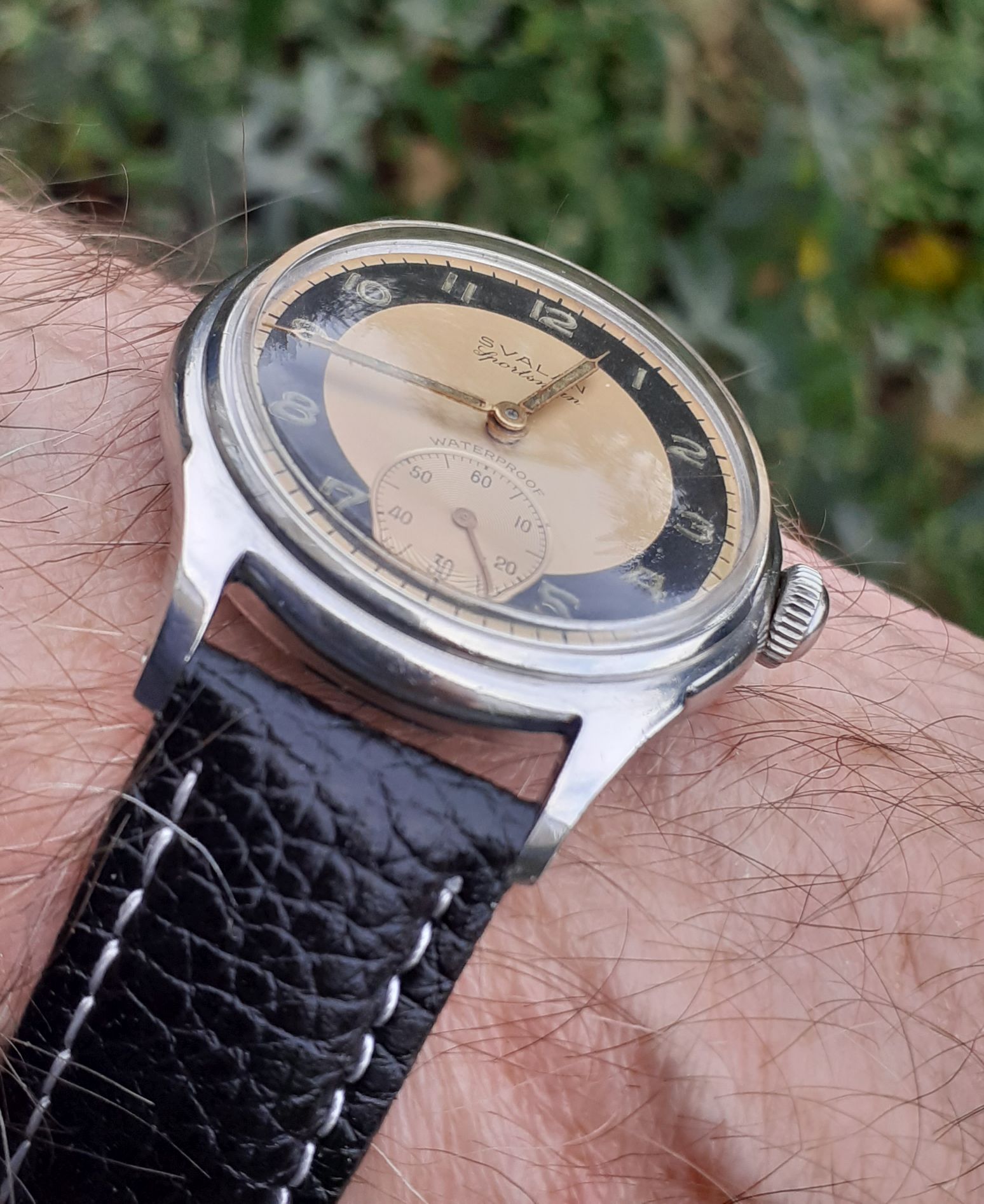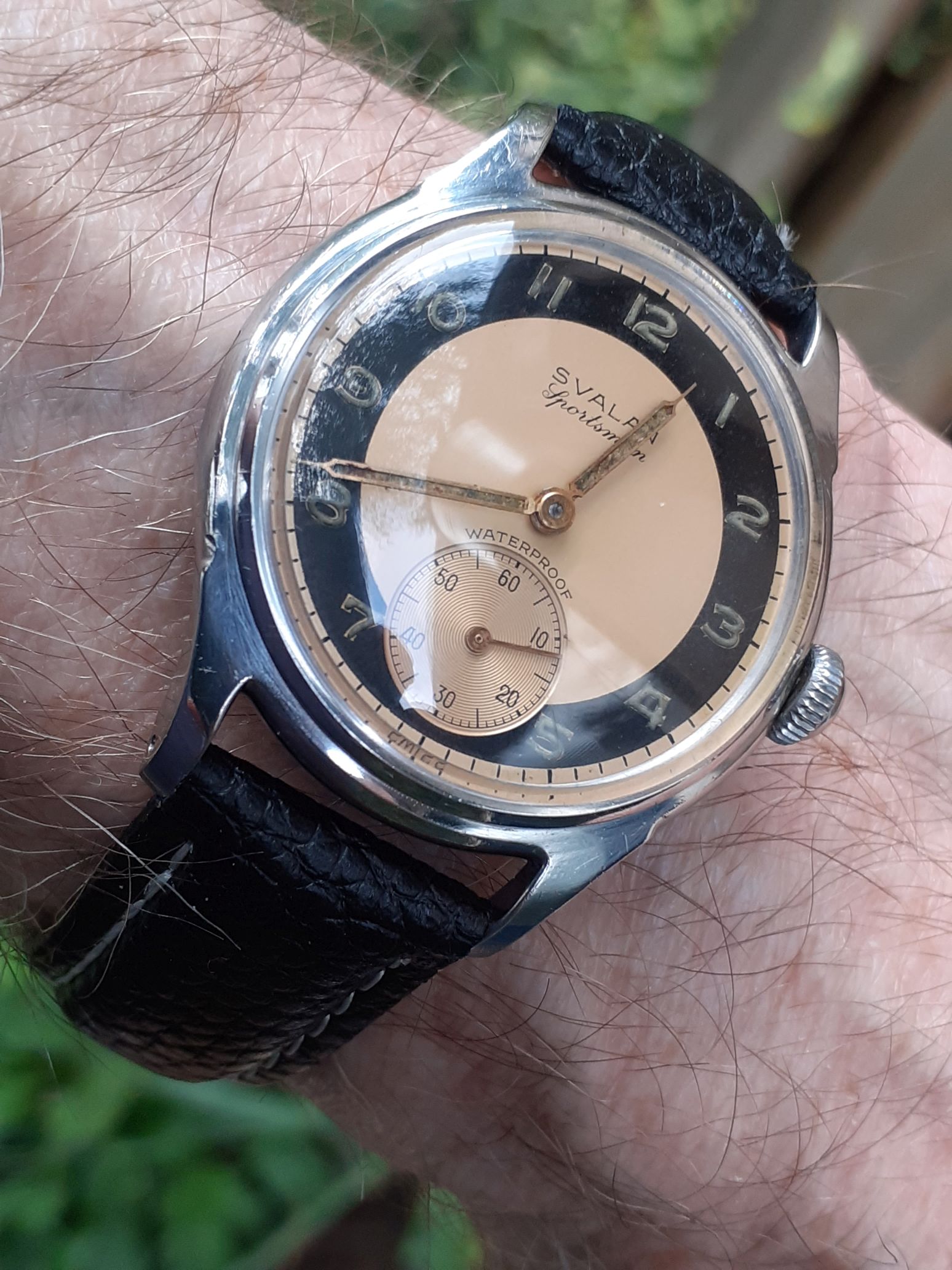 Vandaag draag ik deze Svalan Sportsman “Bullseye Tuxedo”, voorzien van een AS 1130 kaliber met 15 jewels. Dit horloge is gisteren binnengekomen.