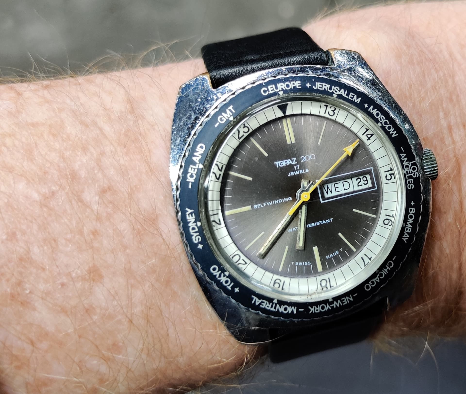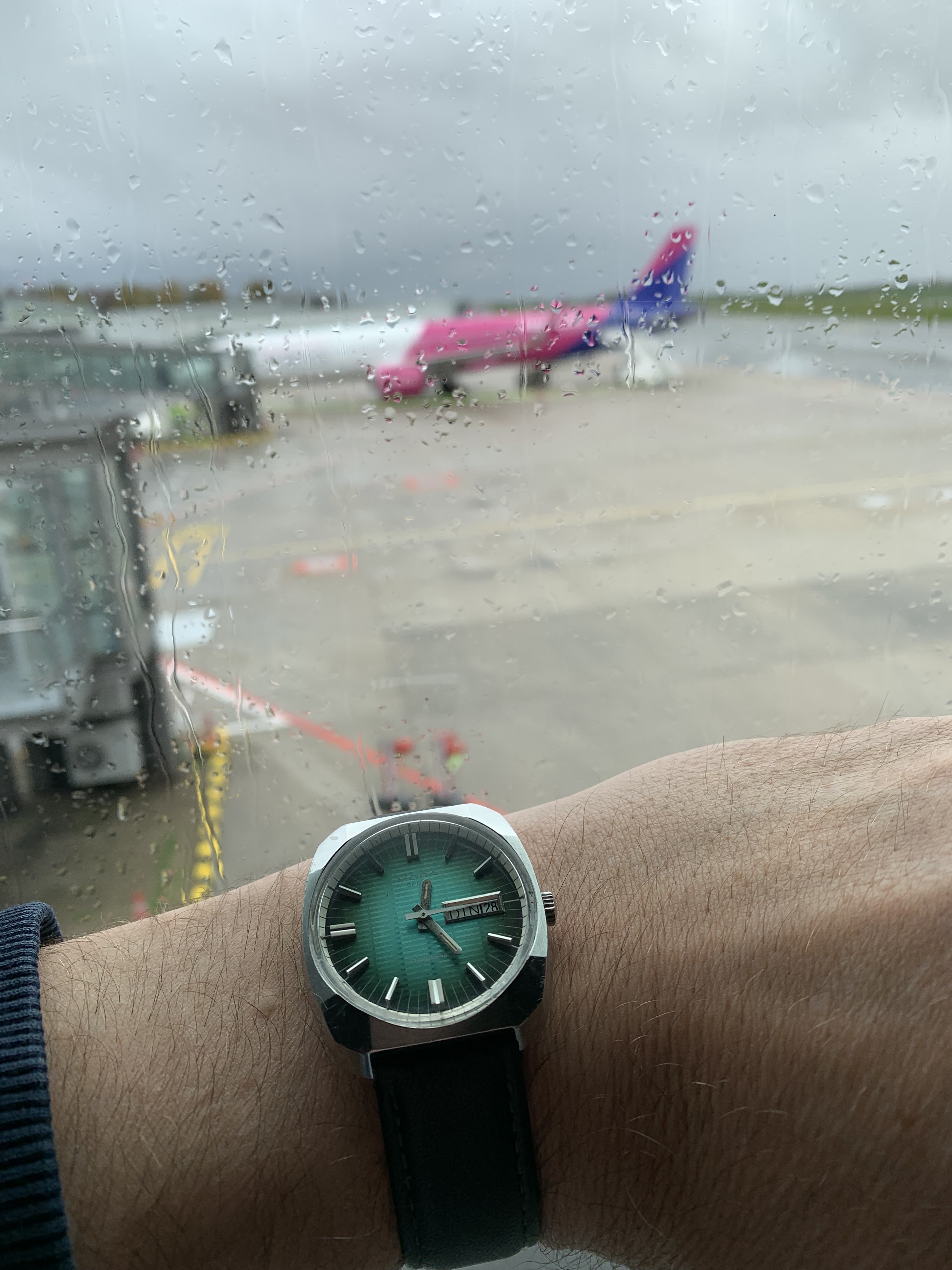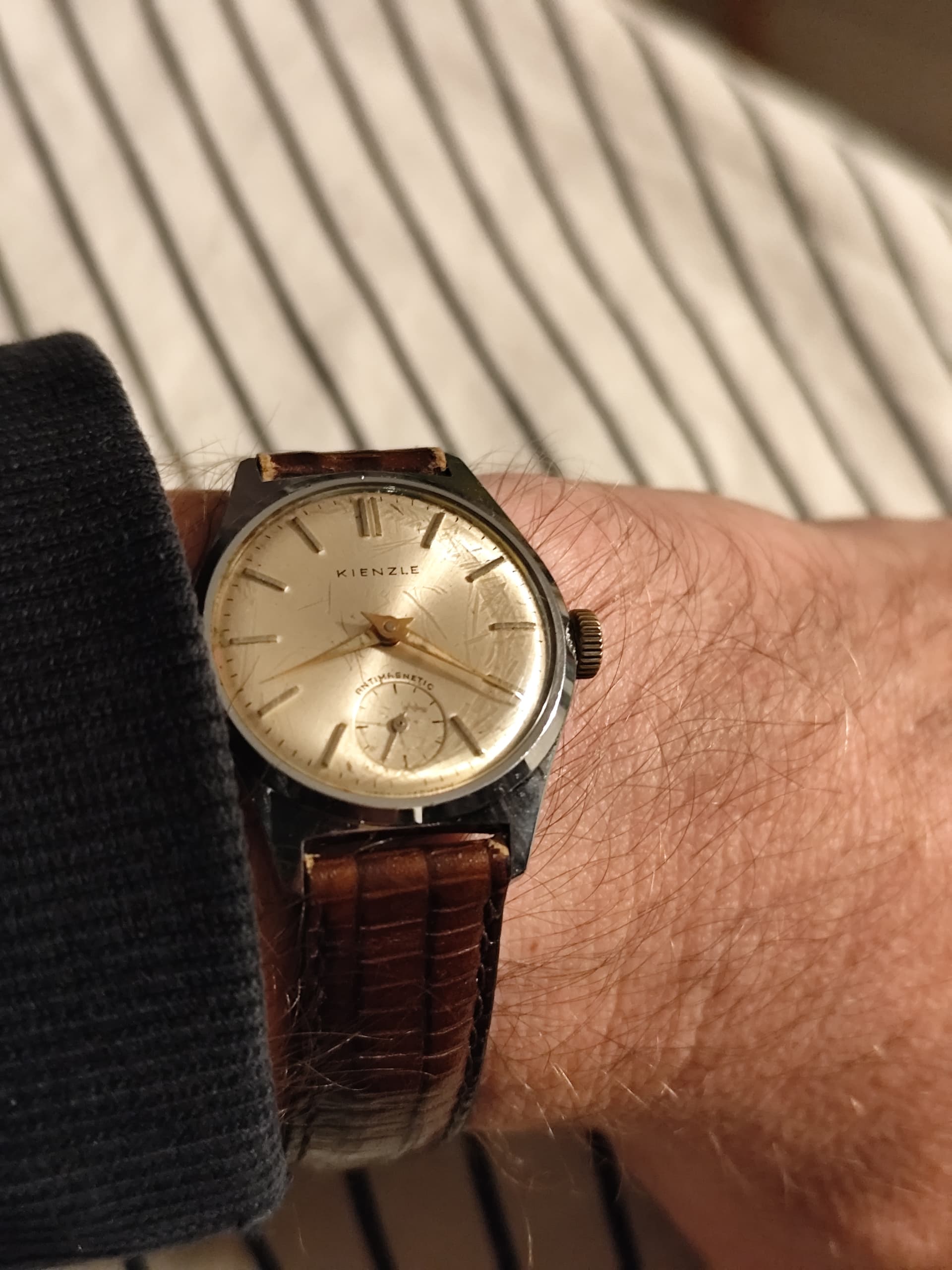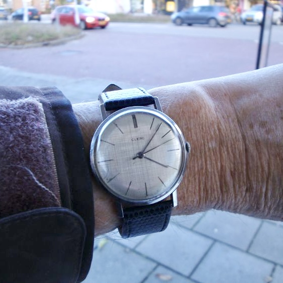 Hij liep vanmorgen nog na het laatste gebruik op zondag, dus nogmaals gepakt. Wat een heerlijk horloge. Ooit krijgt 'ie een knap bandje, maar dit draagt wel lekker.