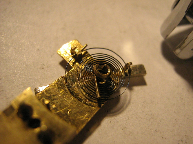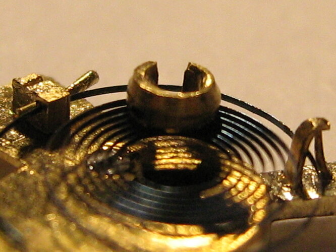 ja dat is wat ik bedoel. alleen doe ik de goupilles wel inkorten, vooral die bij de virole gaat problemen geven als je ze op volle lengte laat. En dat inkorten is ook weer niet zo simpel, daar liep het bij mij in den beginnen (en nog steeds) wel eens mis omdat ik de binnenste windingen raakte bij het afbreken van de overtollige stukken (die wel op maat ingezaagd waren zodat ik niet de volledige stift diende door te breken)