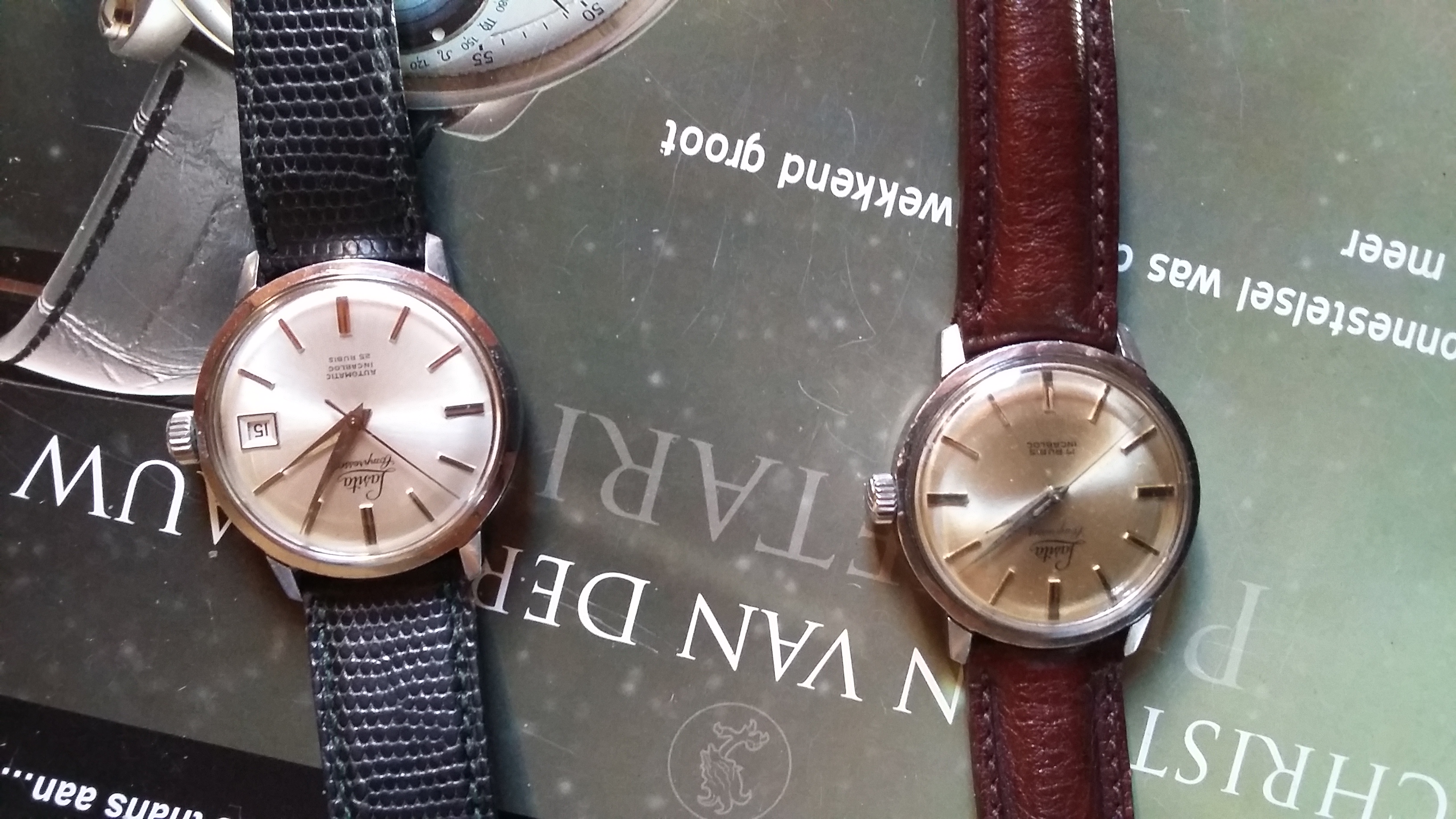 Nu mijn moeder is overleden vond ik ook een bandeloos horloge wat van mijn vader is geweest. Ik ga er niet vanuit dat het waardevol is want mijn ouders hadden nooit zoveel geld over voor dat soort zaken. Ik vind het gewoon leuk om er meer over te weten. Maar googlen en foto’s kijken helpen me niet echt verder. Het is een opwind horloge , hij werkt nog, maar de datum geloof ik niet)en ik weet zeker dat het vintage is want mijn vader droeg het al in mijn jeugd ((ben zelf van de jaren 70😉) Als het goed gelukt is heb ik een foto van de voorkant en achterkant toegevoegd . Wie kan me er iets meer over vertellen?