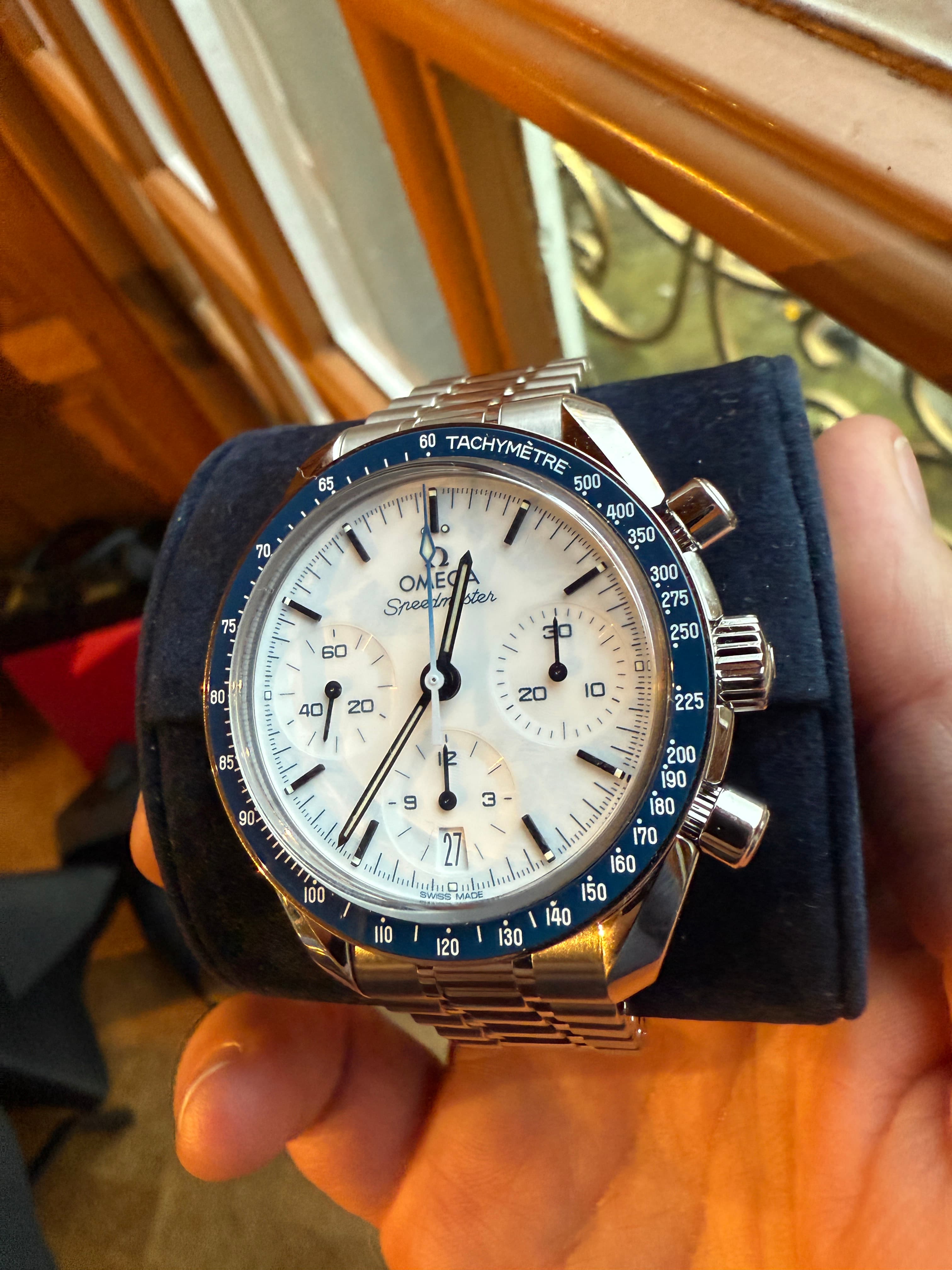 De two tone Speedmaster was eigenlijk de mooiste, had ik niet verwacht! Het contrast is veel minder aanwezig in het echt. Wel lastig op de foto te zetten vreemd genoeg.