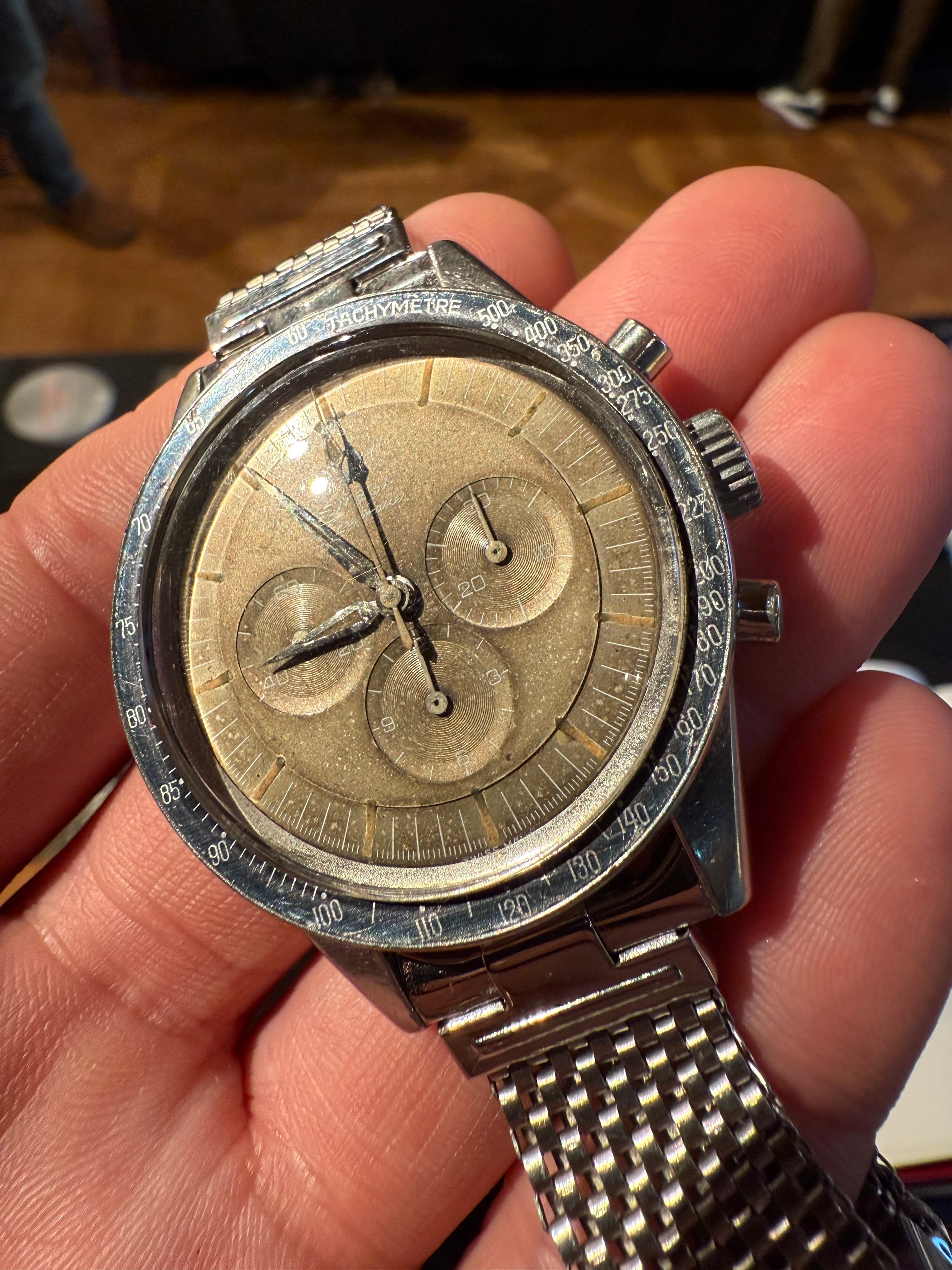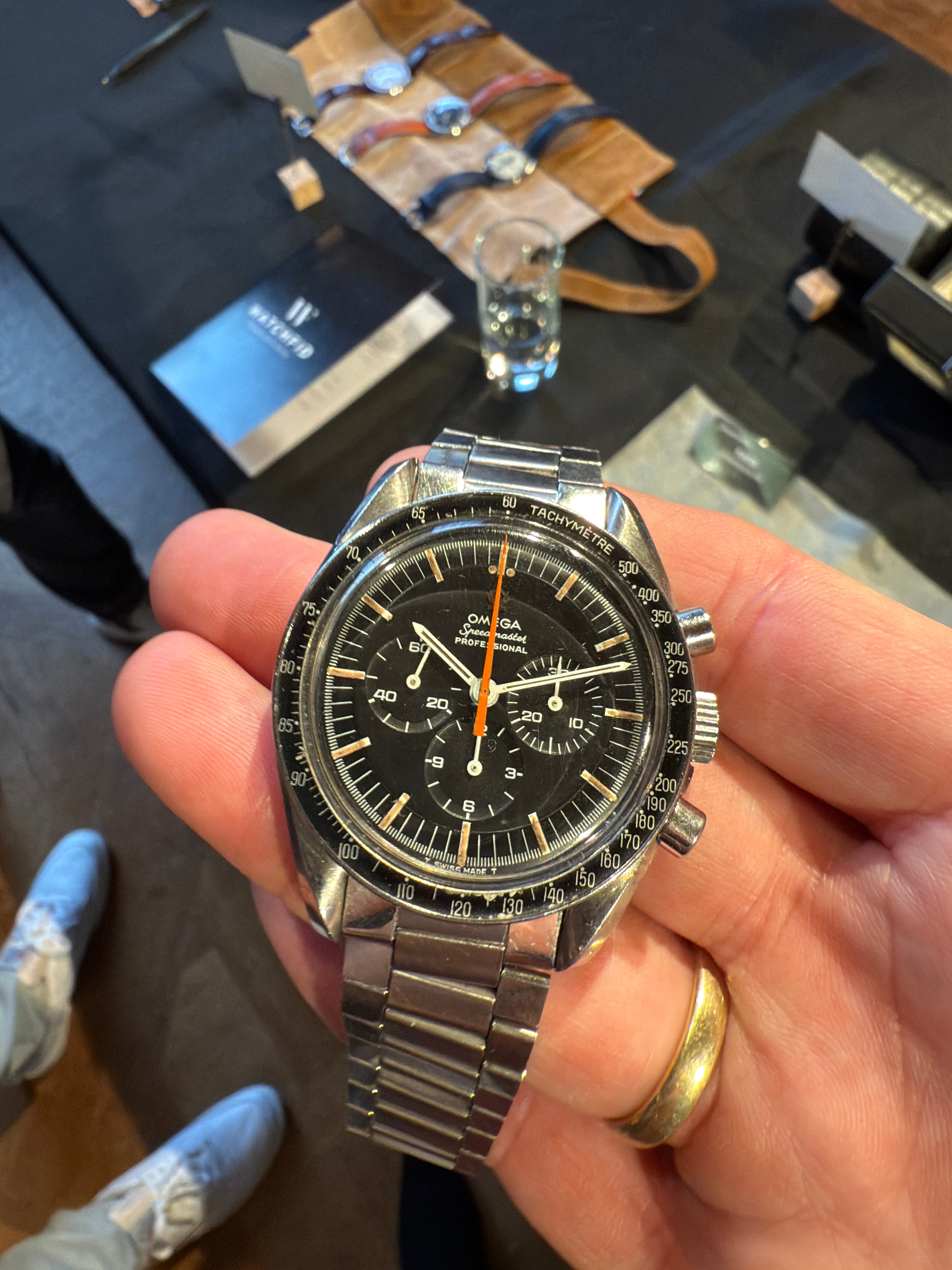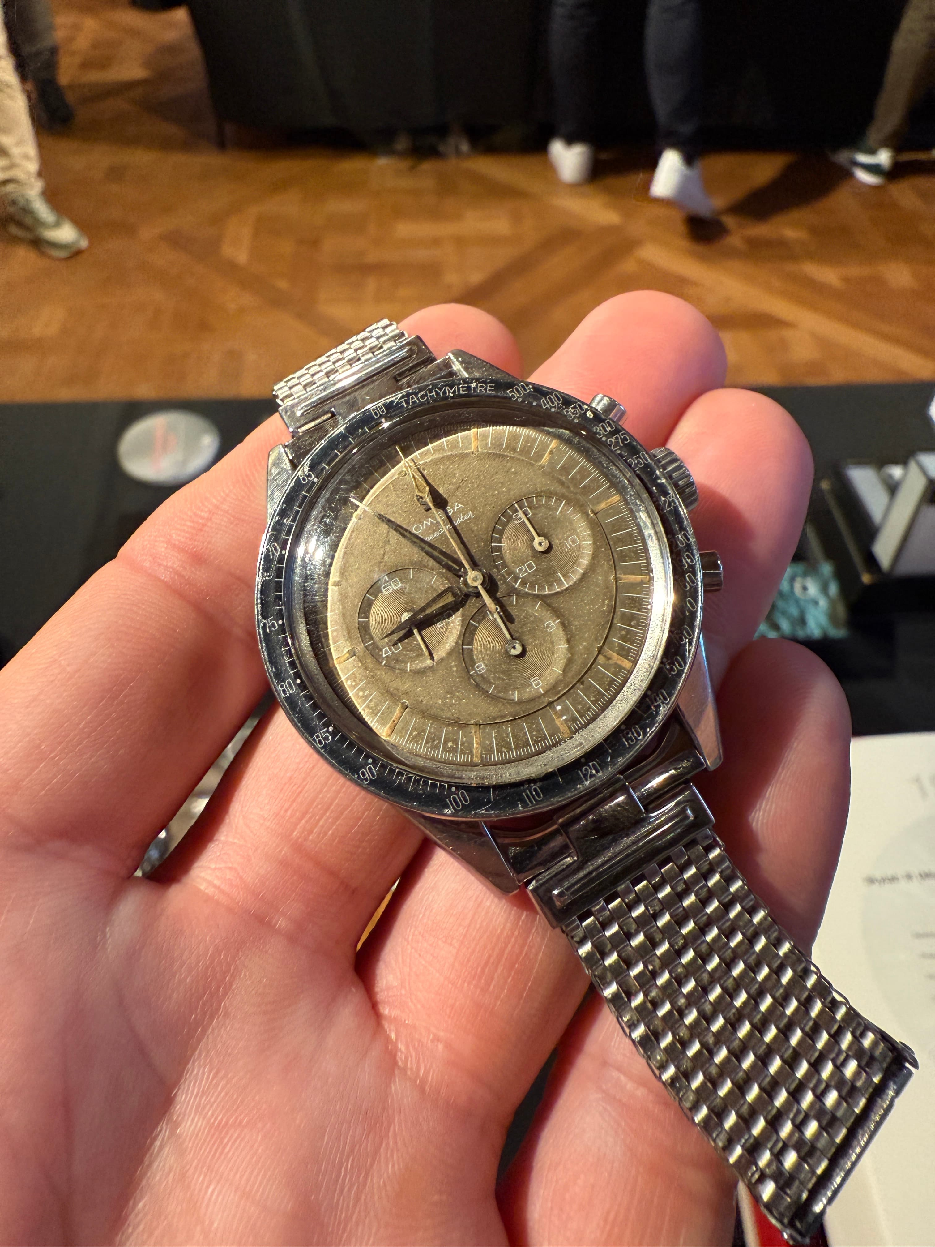 Een prachtige CK2915-3, dus de derde versie van de allereerste Speedmaster (en de eerste met een aluminium lunette in plaats van staal). Deze is zo “hot” dat het raam ervan beslaat.