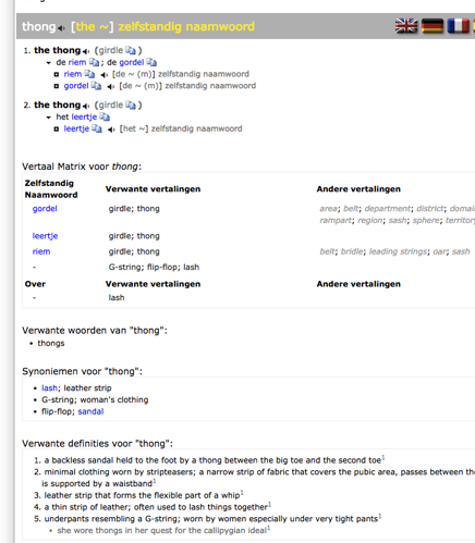 Beetje de schuld van Google translate denk ik, die geeft inderdaad thong als vertaling voor cinturini.