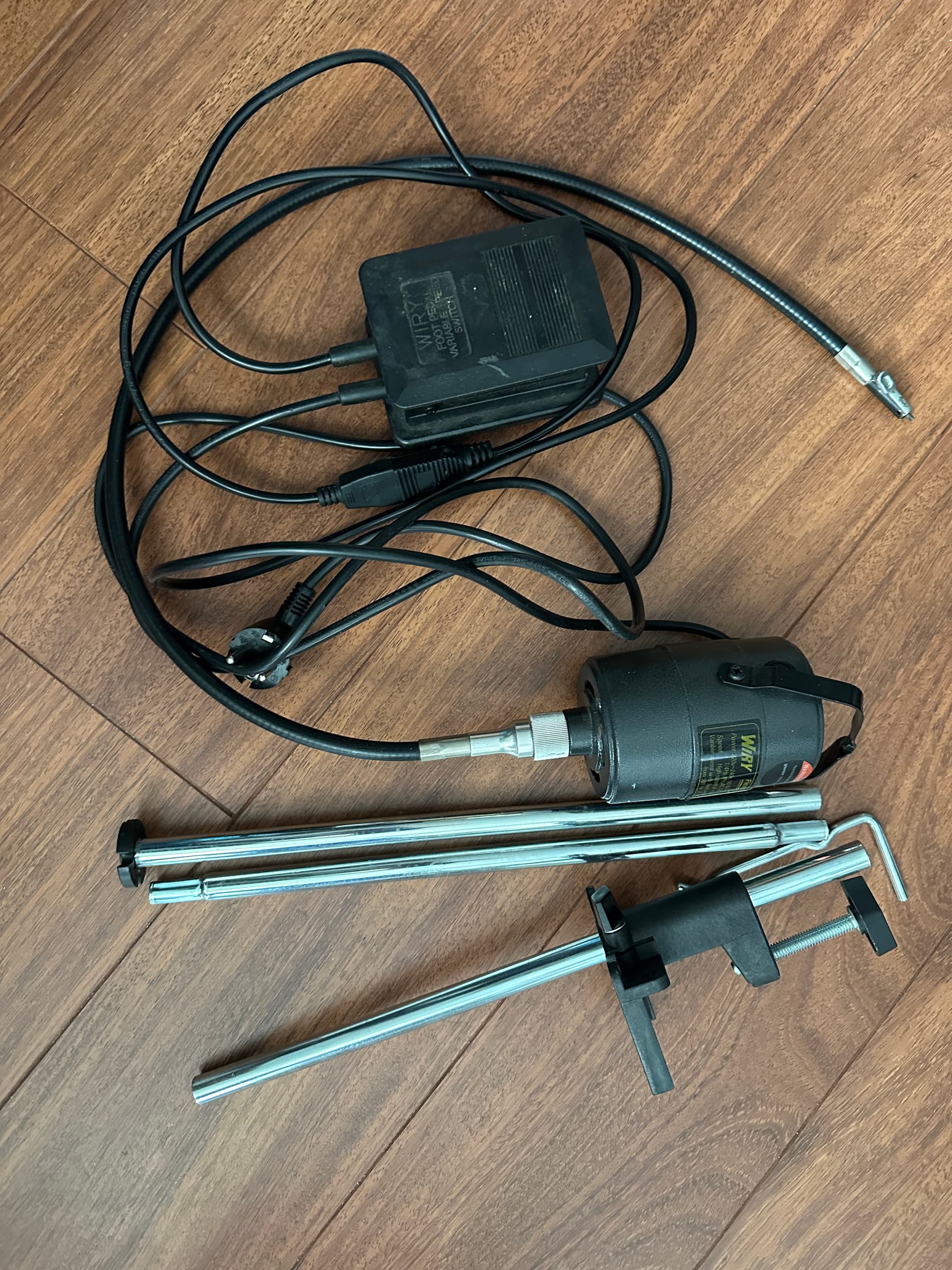 Wiry hangmotor horlogemakersgereedschap Hangmotor met voetpedaal, 22.000 toeren, compleet met ophangbeugel, tafelklem en stand 80 euro excl. verzendkosten