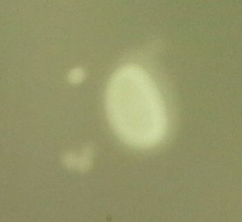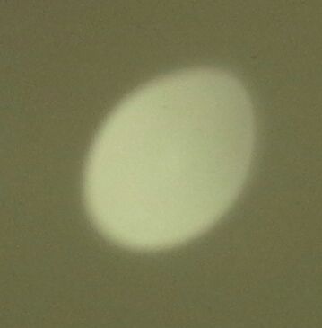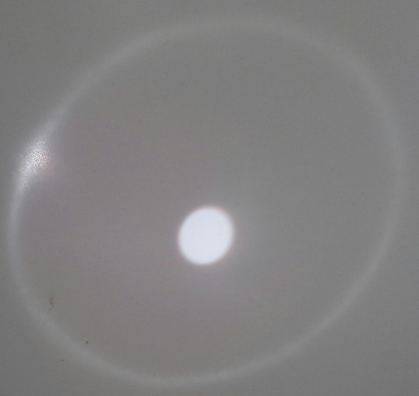 Mijn ervaring is dat plexiglas minder reflecteert dan mineraal- of saffierglas. Waarschijnlijk absorbeert plexiglas dan ook een gedeelte van het spectrum. Dan dus ook minder op de muur te zien. Tot zover.
