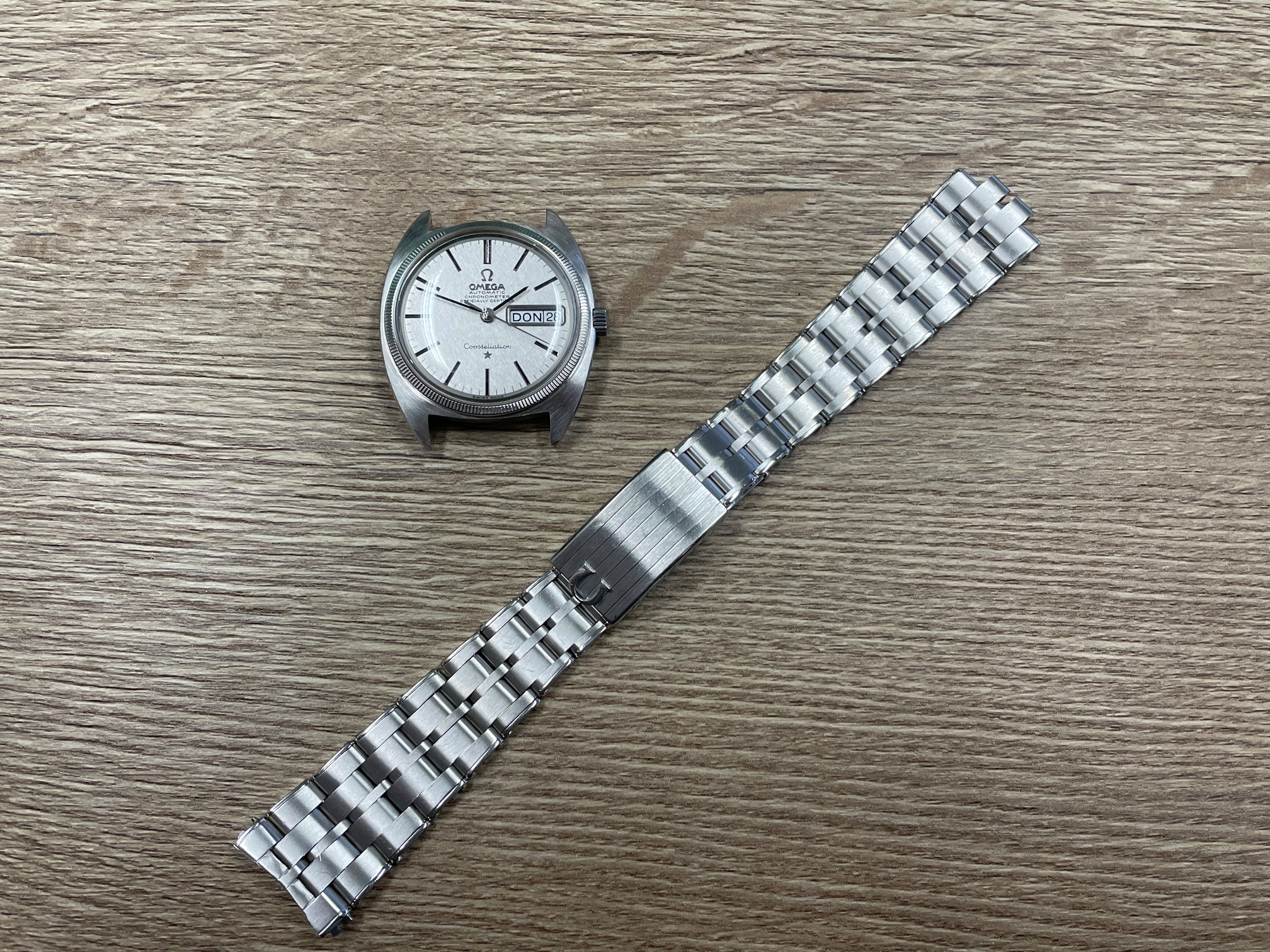 Het gewicht van de kast incl. uurwerk is 49,8 gram. Het gewicht van de band 63,3 gram. Omega specialisten, Constellation liefhebbers en HFers met een mening: