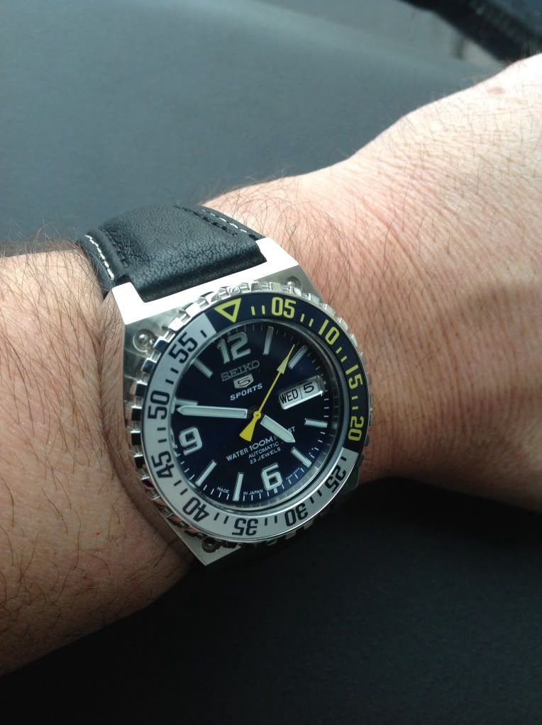 Dit is een nos Squale, branded voor Berios, ref. 1515. Je ziet ze niet veel. Dit is een klein horloge, amper 35mm met een quartz uurwerkje. Klein maar fijn
