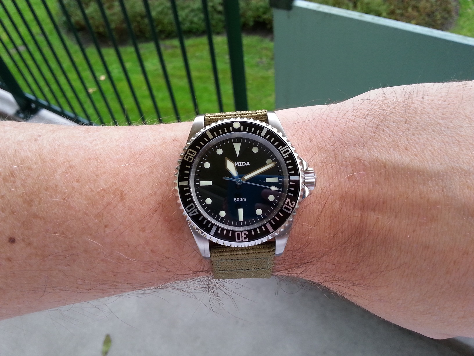 Net m’n Obris Morgan chinofrane strap binnen, dus vandaag maar weer ff de Monster. In camouflagekleur, zo blijkt.
