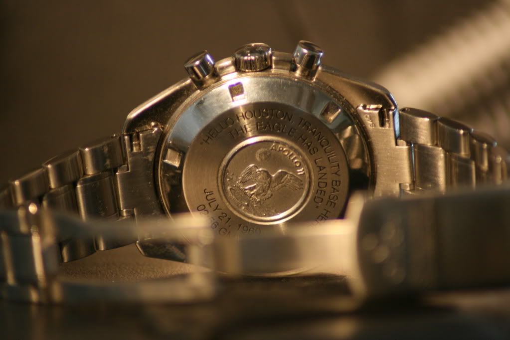 Wat leuk, die van mij is ook een LE maar dan van precies 10 jaar later, dus 30 jaar na de maanlanding. Van deze zijn er 4.999 gemaakt. Wat er anders aan is, is dat de caseback een tekst heeft die alleen bij deze LE voorkomt; “Hello Houston, Tranquility base here. The Eagle has landed”. Ook staat het officiële Apollo 11 logo er op gegraveerd. Op de “normale” speedy-pro’s staat “first and only watch worn on the moon”.