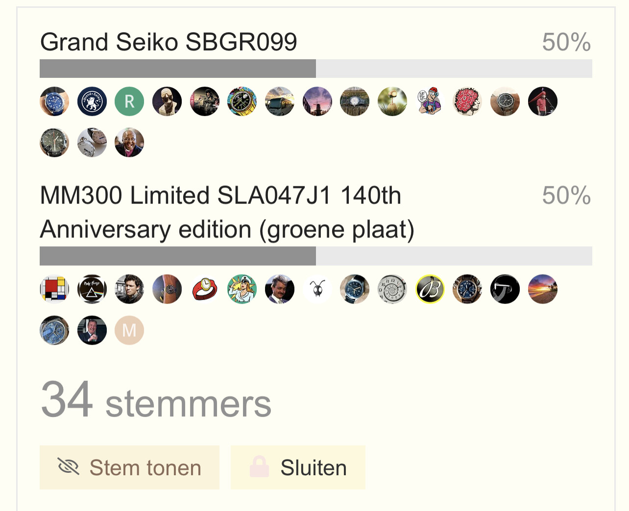 Hmm…ik heb kriebels voor weer iets stoers om de pols. Zou dan wel in de plaats moeten komen van m’n Grand Seiko SBGR099. Ik twijfel…ga ik een verkeerde move maken en achteraf spijt krijgen de GS te hebben weggedaan.