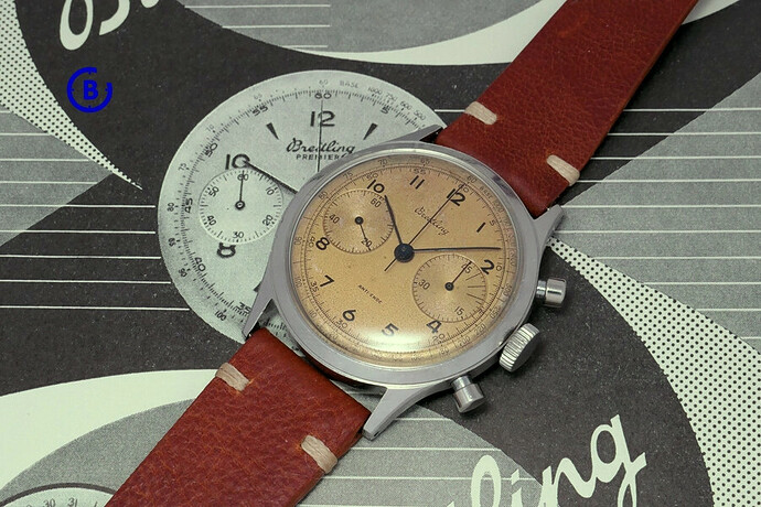 Jaren 40 Premiers. Dat zijn de granddaddies van de chronograaf met de dubbele pusher. De Navitimer is een typisch jaren 50 gekkigheidje, net als de Sub, de Airman, en vele andere “functionele” horloges die ze toen bekokstoofden.