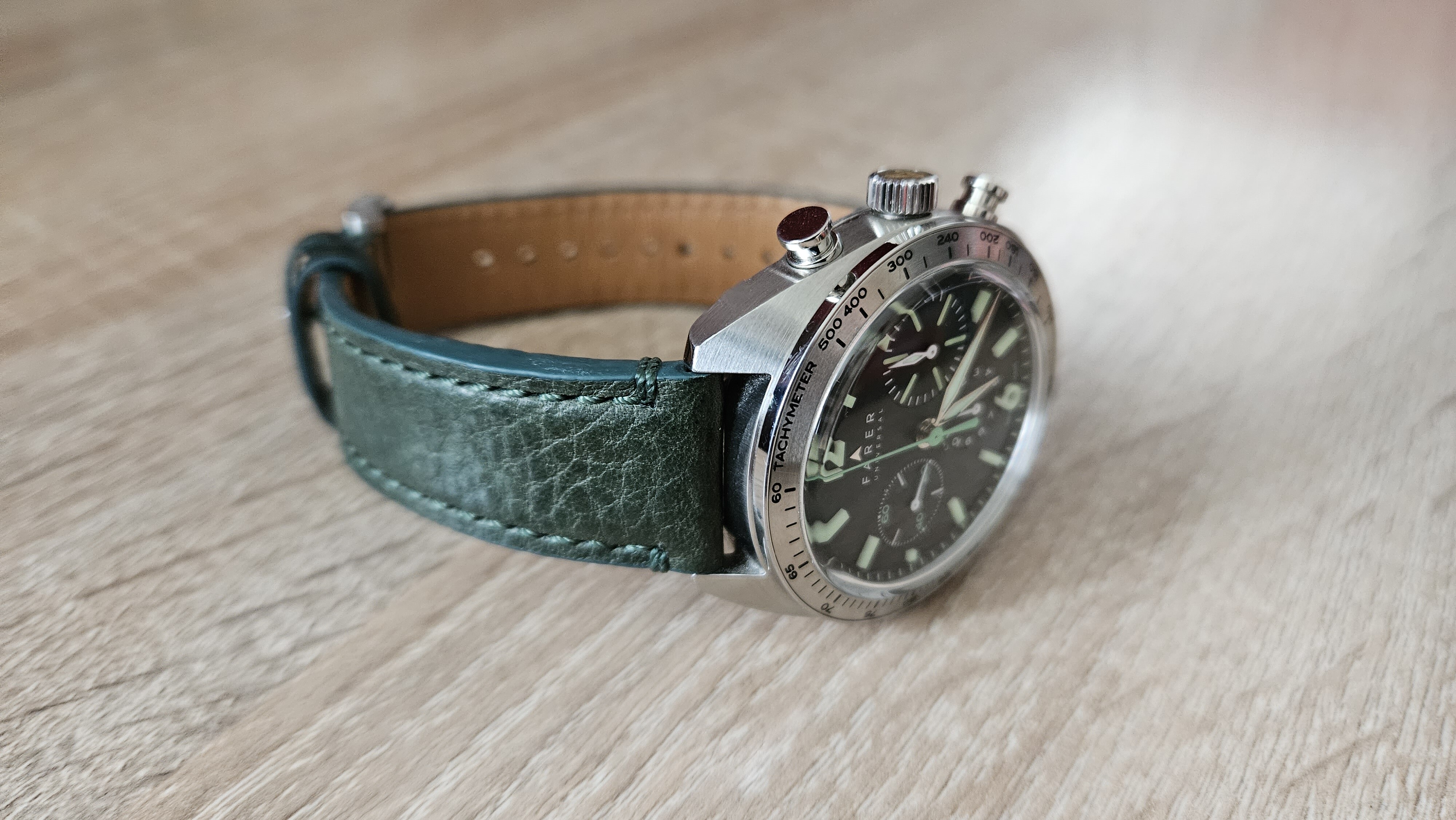 Eens een ander bandje op de Farer gezet. Staat niet mis vind ik - neig nog altijd licht naar het originele groen.