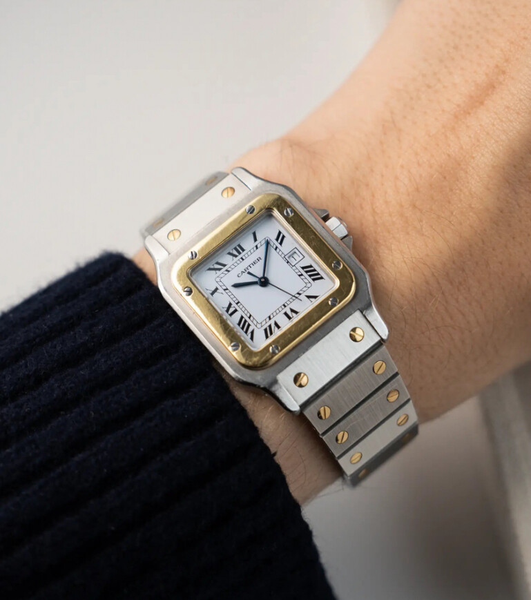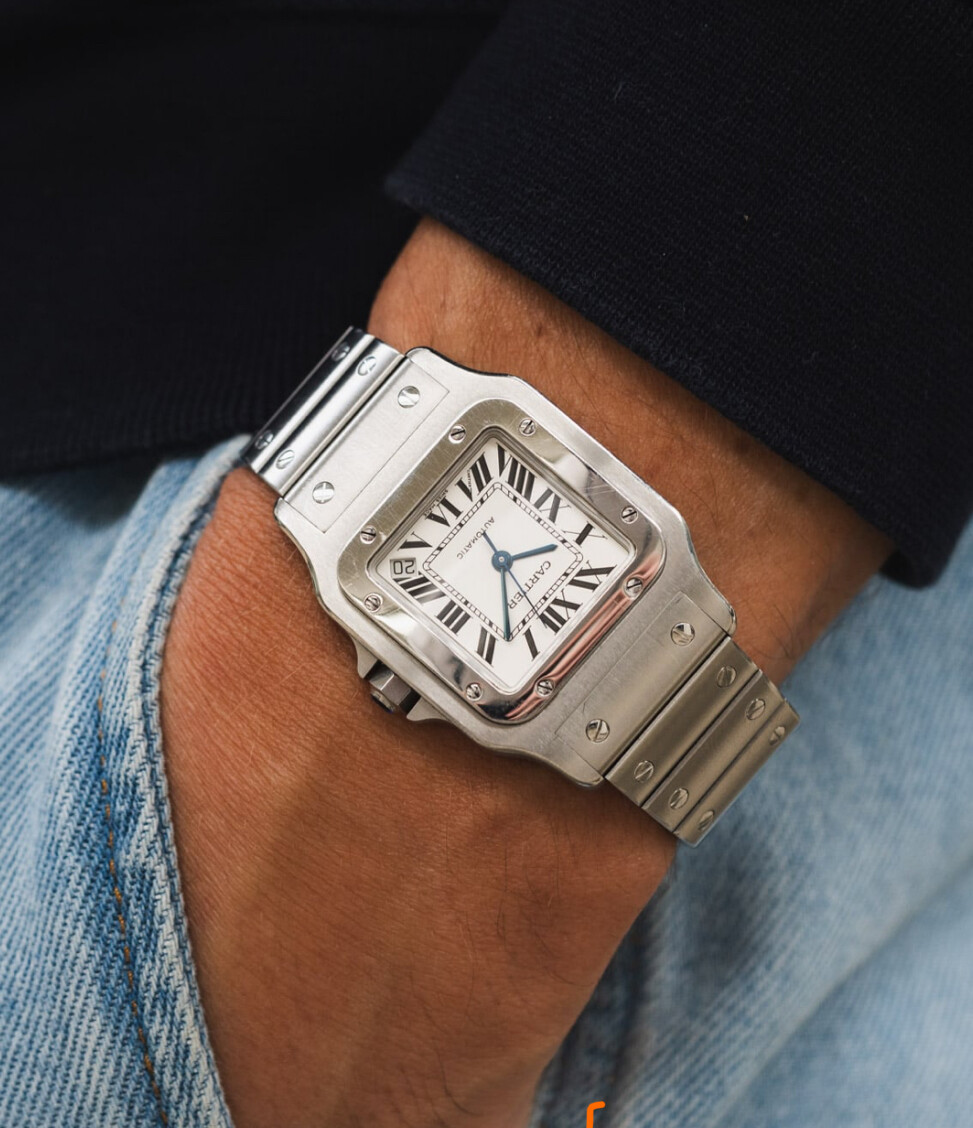 Eerlijk is eerlijk… Ik neig toch ietsje minder daar de Carree en Galbee omdat ik liever geen datum zou willen. De 35mm Santos de Cartier two-tone zou ik er dus bij noemen als vijfde kandidaat. Dat gezegd hebbende, ik vergeef ze hun datumvensters. Blijven coole horloges.