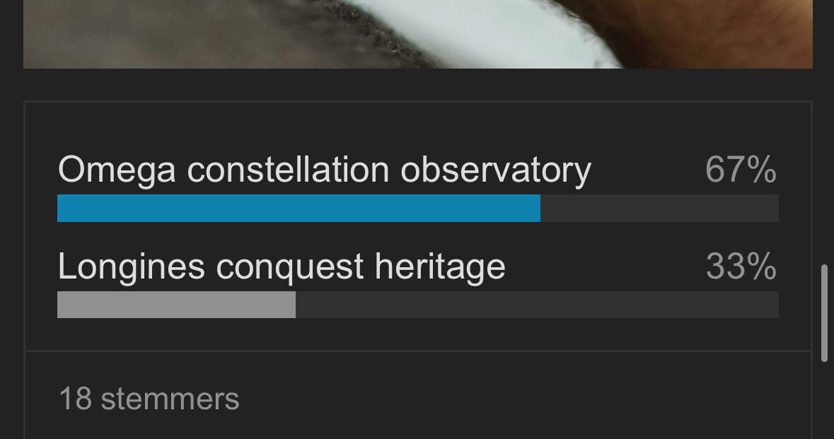 Het feit dat deze poll echter nog zo close is illustreert naar mijn smaak wel wat voor probleem Omega heeft met deze release.
