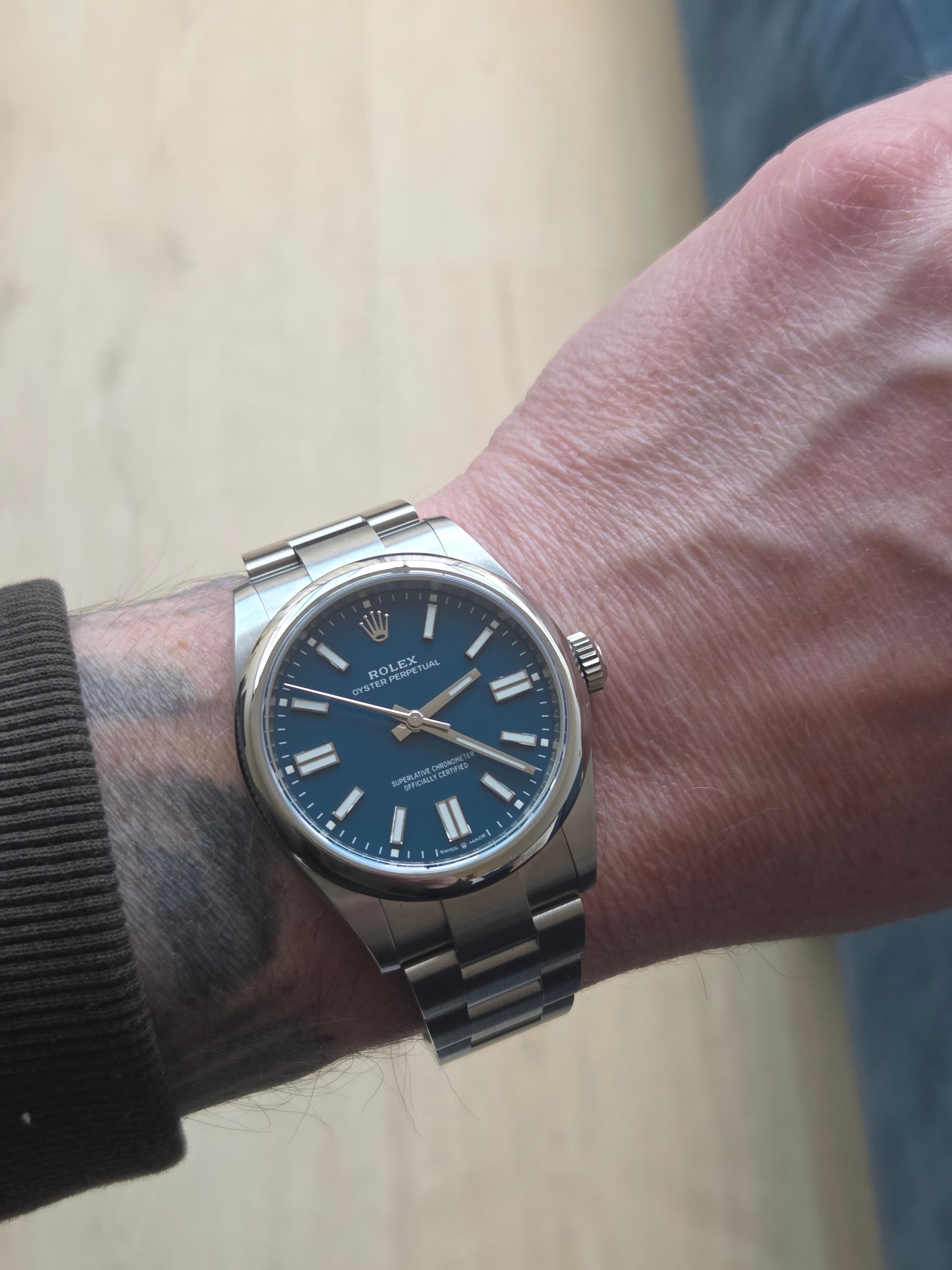 Ik snap de Breitling itch, kijk stiekem wel eens naar de goedkope tweedehands Quartz Colt’jes. Daar zou ik best een seizoen pret mee kunnen hebben. Maar 1 op 1 de OP tegen die Breitling? Amenooitniet.