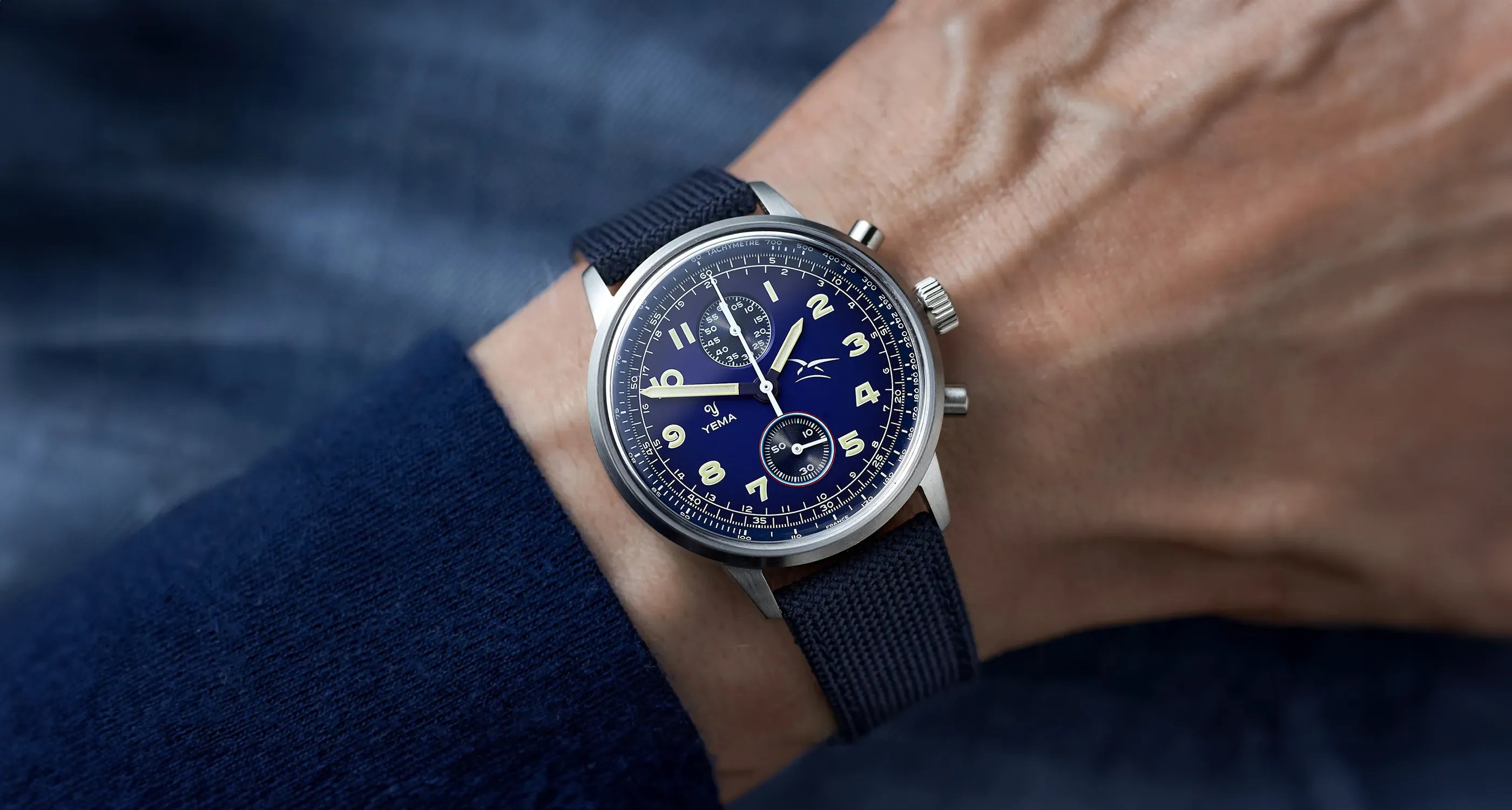 Een stoere en strak vormgegeven chronograaf van het Franse merk Yema, uitgebracht in samenwerking met de Franse luchtmacht.