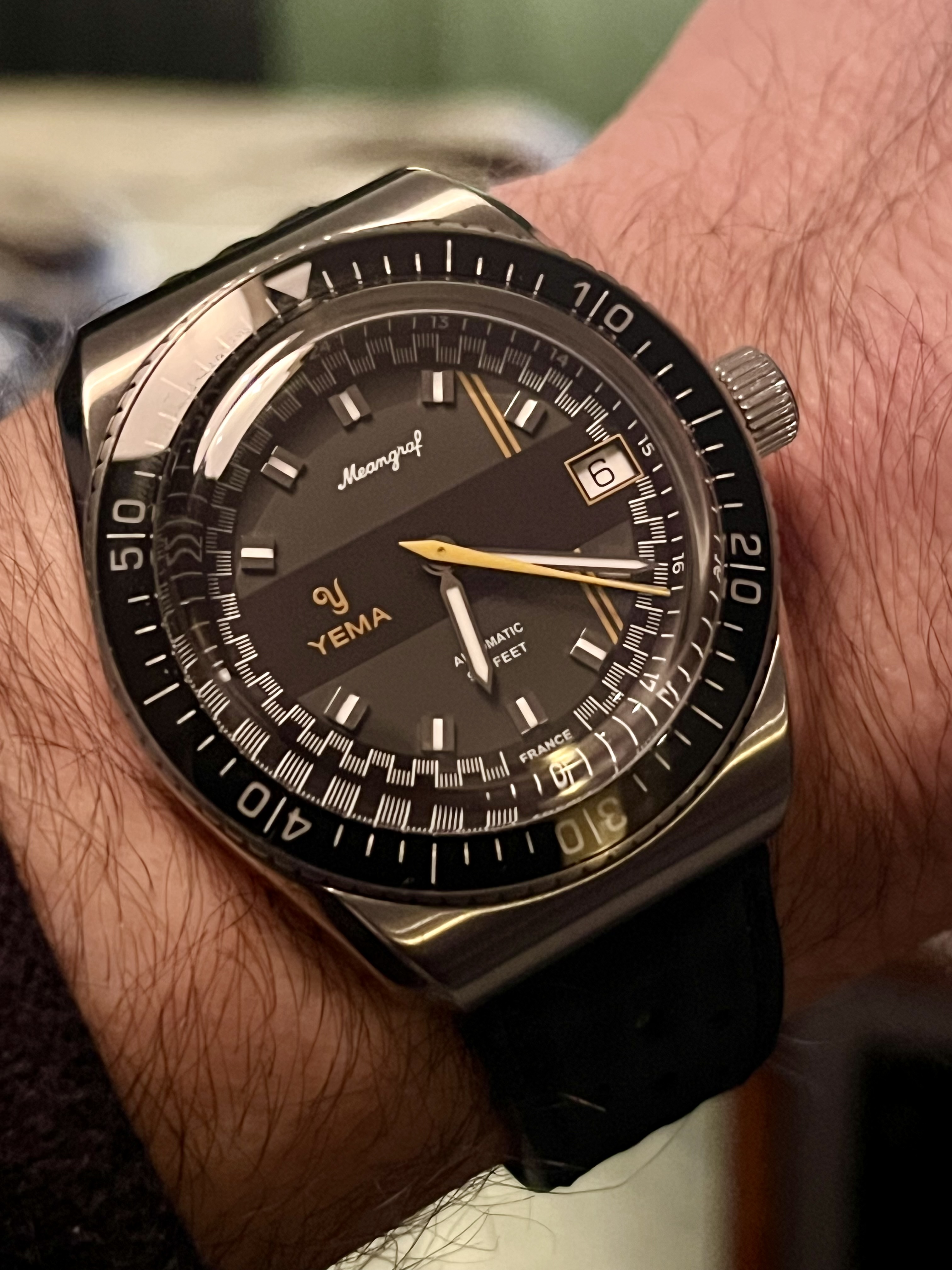 Helaas een tijdje geleden gevallen voor een frankenYema op ebay. Originele case en originele dial met uurwerk maar de combinatie heeft nooit bestaan. Daarom weinig arm tijd ookal is het oranje met een oranje rubberenband wel aantrekkelijk.