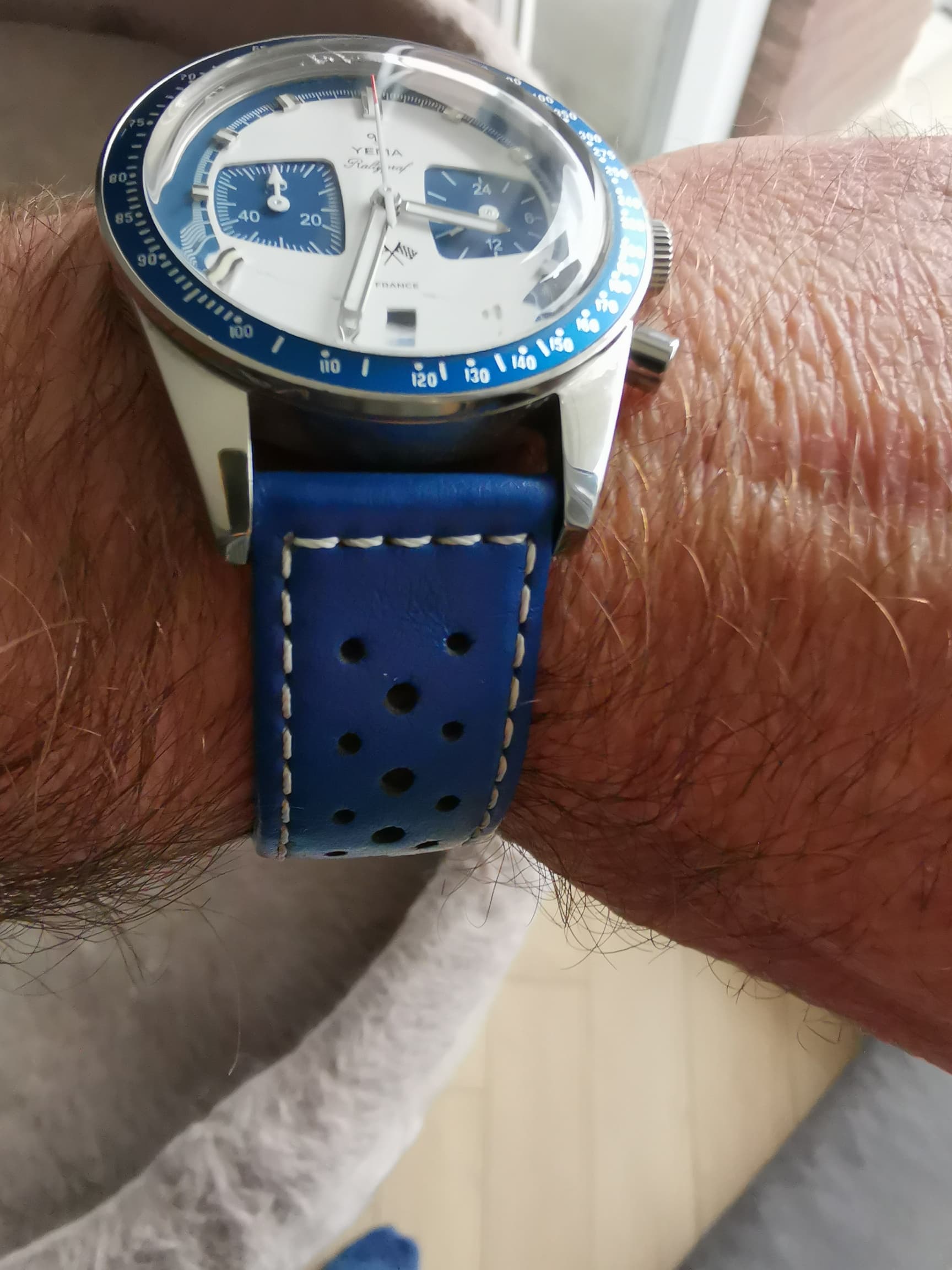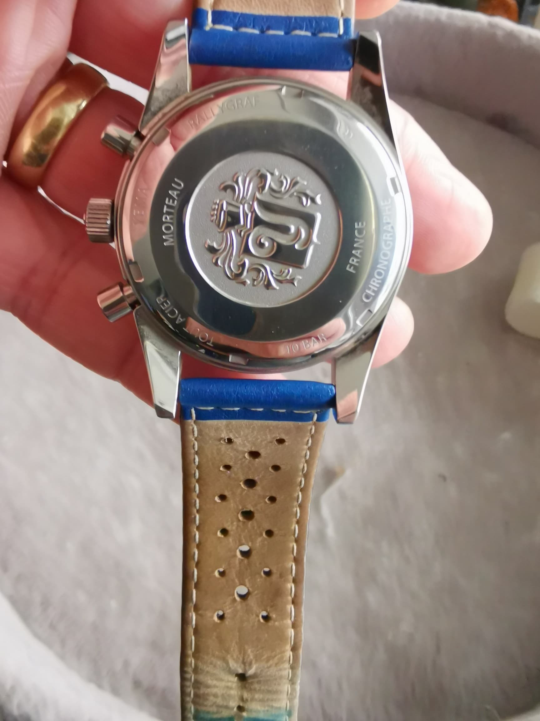 De stalen band is ongedragen. Leren band is origineel.