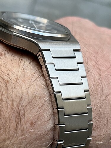 Maar ik ben door dit horloge zeer verrast. Voelt allemaal heel goed aan. Band, sluiting, kroon is echt superfijn. En bepaalde design elementen waar je je aan zou kunnen storen zijn in het echt erg subtiel.
