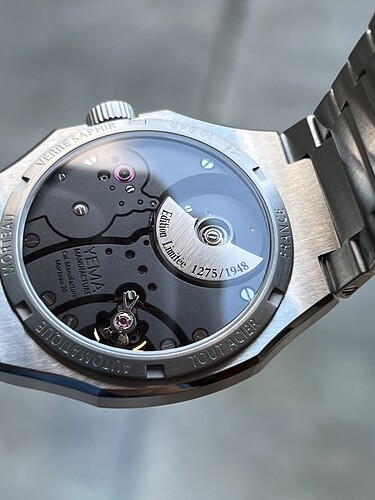 Aangenaam om naar te kijken. Kennelijk ook om te dragen. En blij verrast met de aanblik via de open caseback. Wow! Dan snap ik de keuze voor de zwarte wijzerplaat: mooi in lijn. Gefeliciteerd!