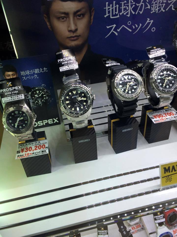 Wauw, uitgebreide collectie hebben ze daar! Wat ik nooit snap van de meeste juweliers/Seiko stores is de overbelichting in de etalages. Dat ziet er toch niet uit. Hetzelfde heb ik bij Gassan… Althans die op Schiphol, vind niet dat het de horloges aantrekkelijker maakt