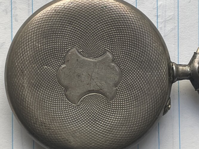 De zo te zien zilveren kast kan wel een poetsbeurtje gebruiken. Als het horloge nog functioneert is het misschien ook wel de moeite waard om het een servicebeurt te (laten) geven bij een horlogemaker die verstand heeft van oude (cylindergang) uurwerken. Het is gemaakt waarschijnlijk vóór 1925 gezien de aparte knop links naast de kroon om het horloge gelijk te kunnen zetten. Na die tijd werden de uurwerken meestal gemaakt met een gekombineerde functie waarbij het horloge met de kroon werd opgewonden en dan gelijk kon worden gezet door de kroon uit te trekken (keyless work)