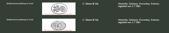 Dat merkteken met malteserkruis is terug te vinden in de database van Mikrolisk; blijkbaar van een E. Simon & Cie.