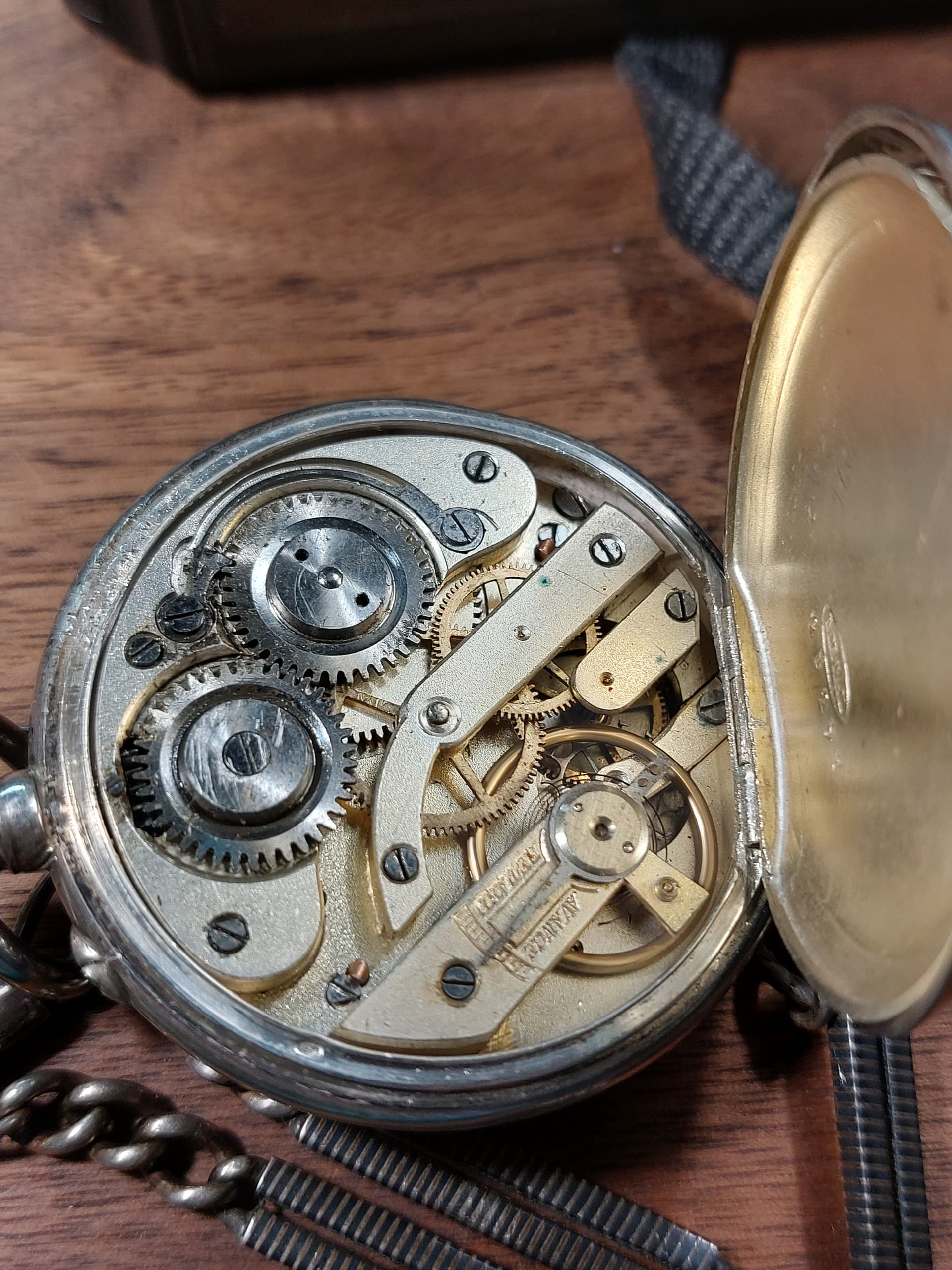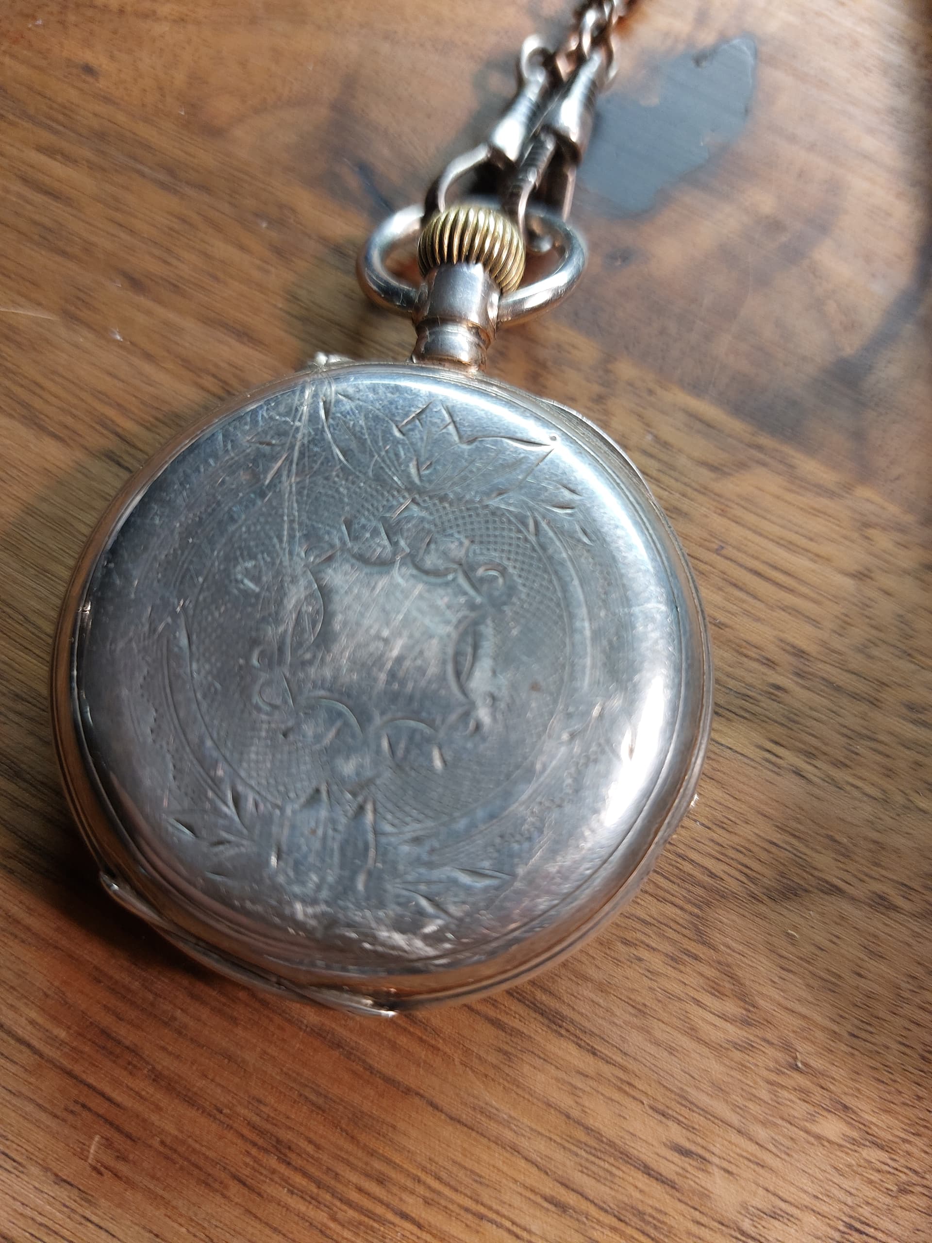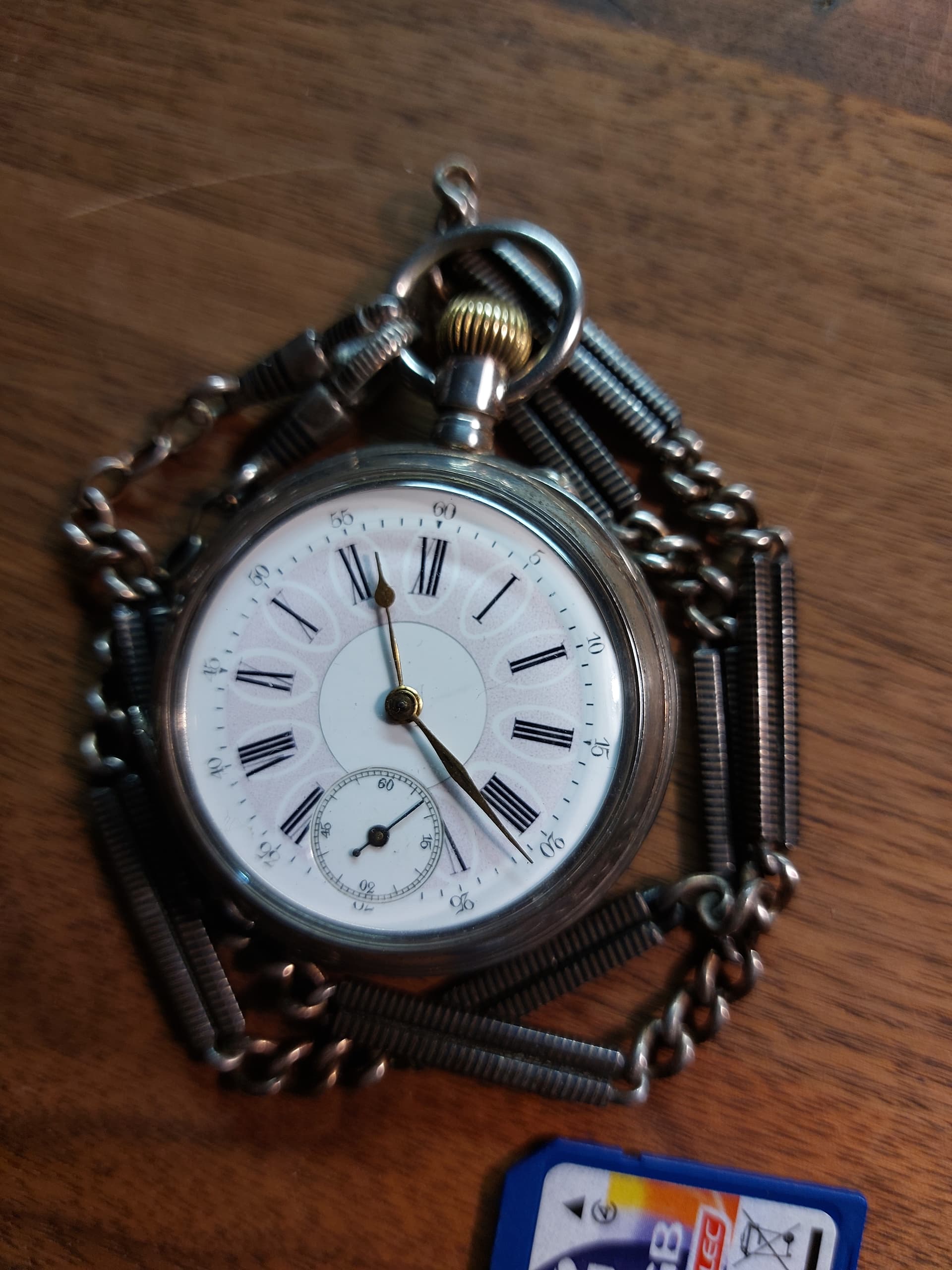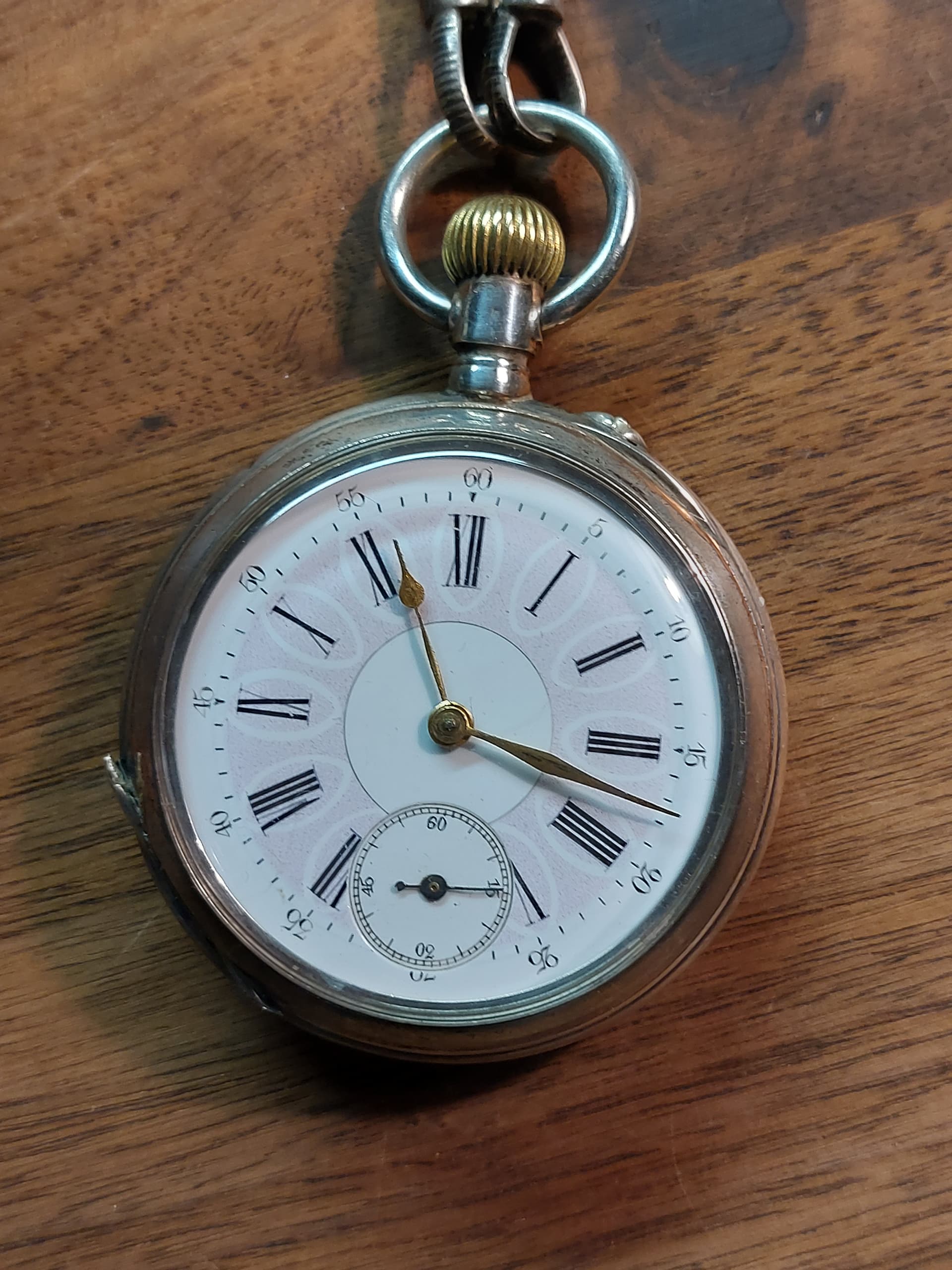Ik zou het ergens van rond 1900 à 1910 schatten zelf. In heel nette staat ook, voor zo’n leeftijd; vrijwel zeker een emaille wijzerplaat (kwetsbaar!), zilveren kast. En aan de foto’s te zien goeie hoop dat die nog prima loopt ook.
