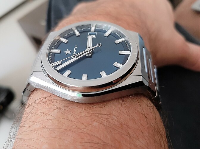 Dat gaat wel lukken hoor. Deze Zenith heeft een 18.28.3A uurwerk, dus de goede balans vinden is in dit geval niet zo moeilijk.