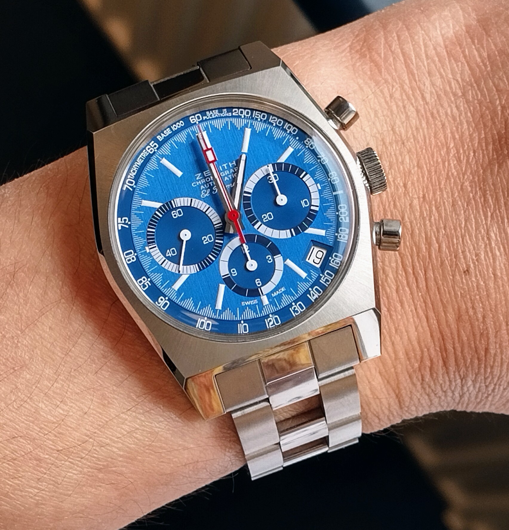 De lichtblauwe Skyline 36 heb ik bij Zenith zelf besteld, want boutique edition en daarmee bijzonder lastig verkrijgbaar. Dat betekent ook dat je list betaald, maar de levering was buitengewoon soepel - binnen een dag of 2-3 in huis. Komt ook in Zenith specifieke doos, om je normale horloge doos heen. Maakte een bijzonder goede indruk.