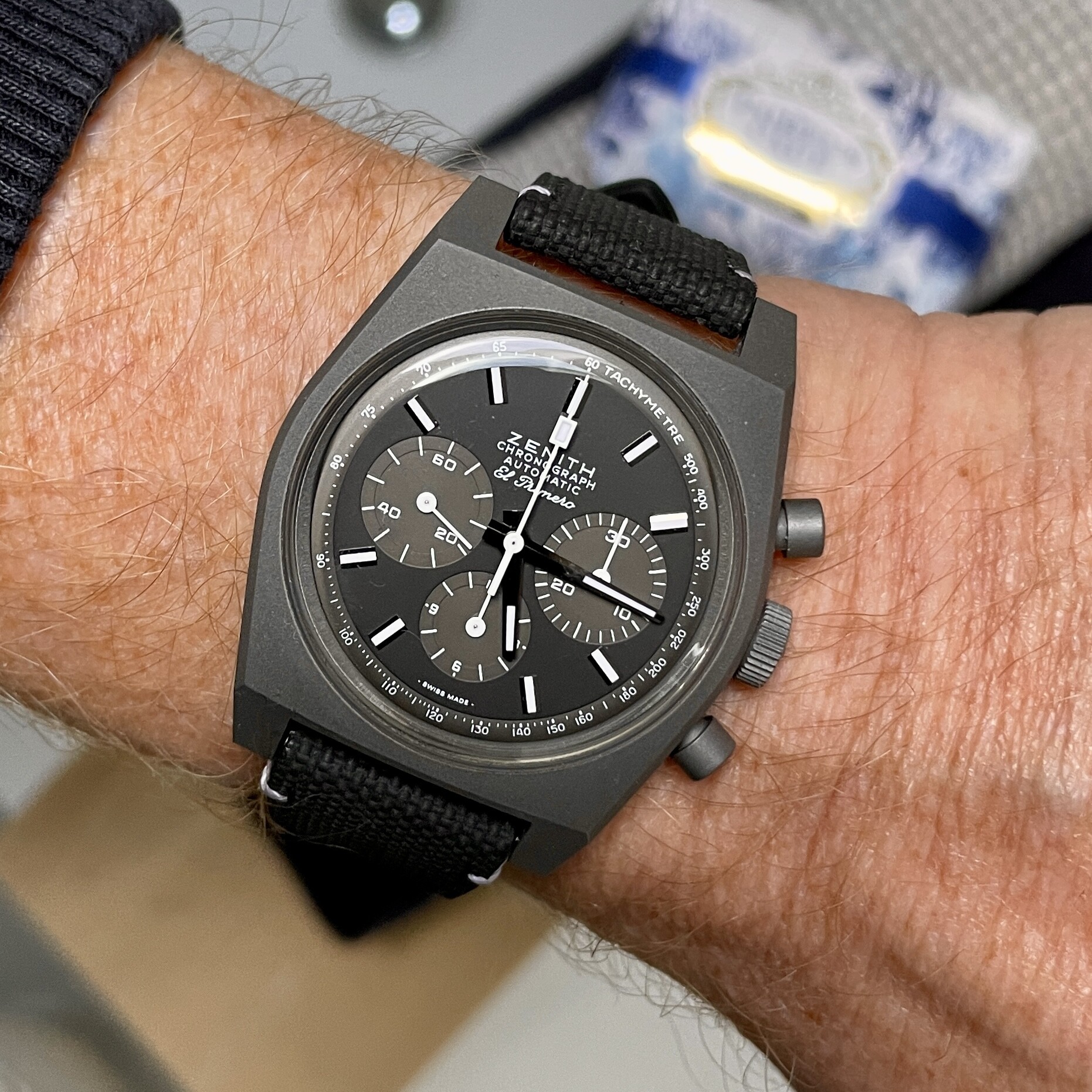 Ik zal zeker niet beweren dat de afleesbaarheid van zwart op zwart fantastisch is, maar het valt in de praktijk zeker niet tegen. En ik ben het geheel met je eens ten aanzien van een eventuele Zenith-frankenwatch, dat is een no-go.