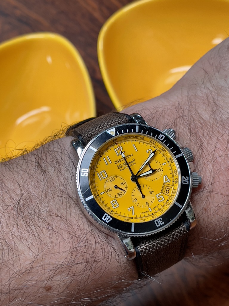 Afgelopen zomer stond ik bij een dealer met een defy El primero in m’n handen die ik echt wilde maar door wat twijfelachtige omstandigheden toch maar niet gekocht. (En de Breitling SOH dan maar genomen, geen spijt van)