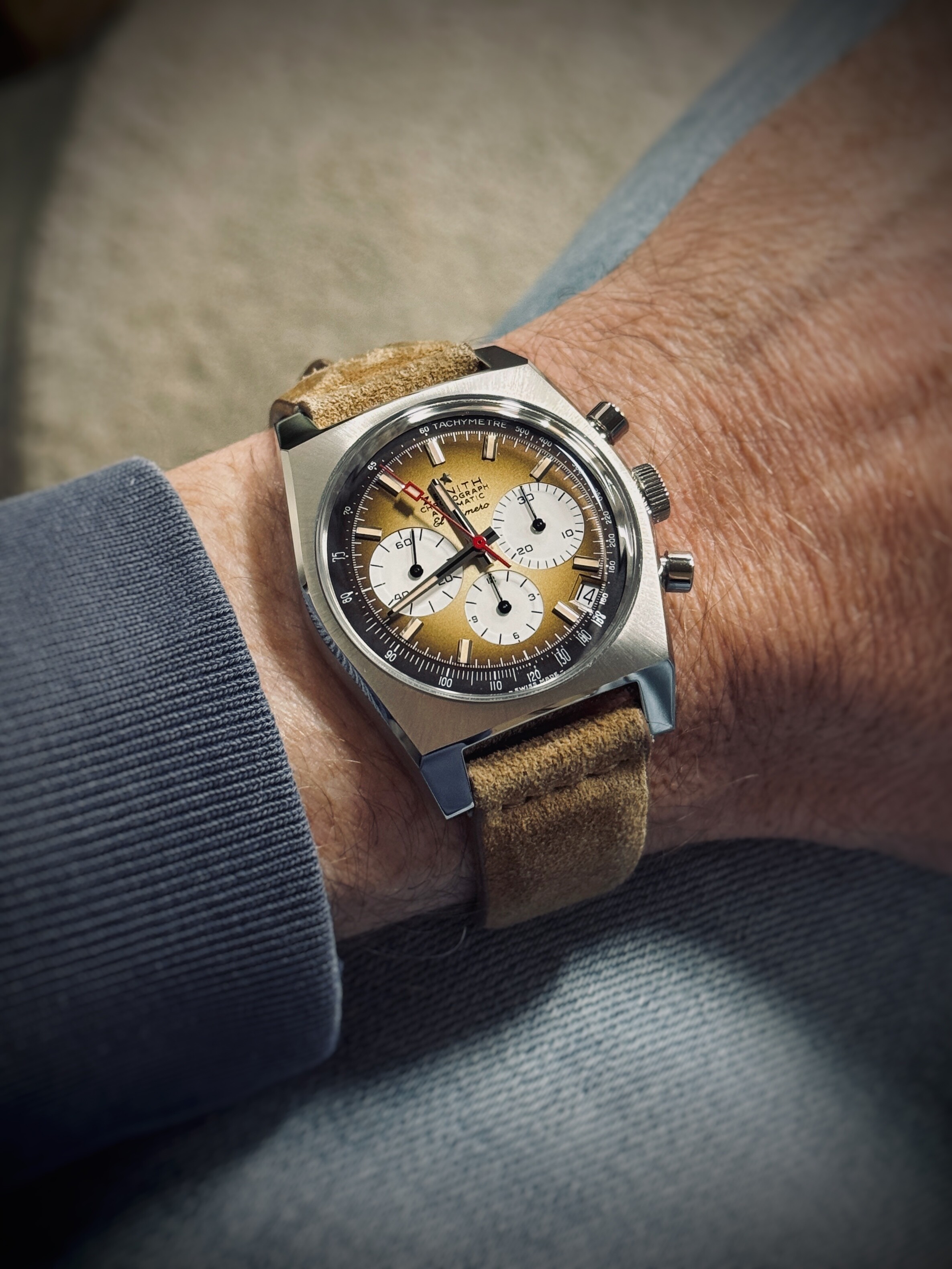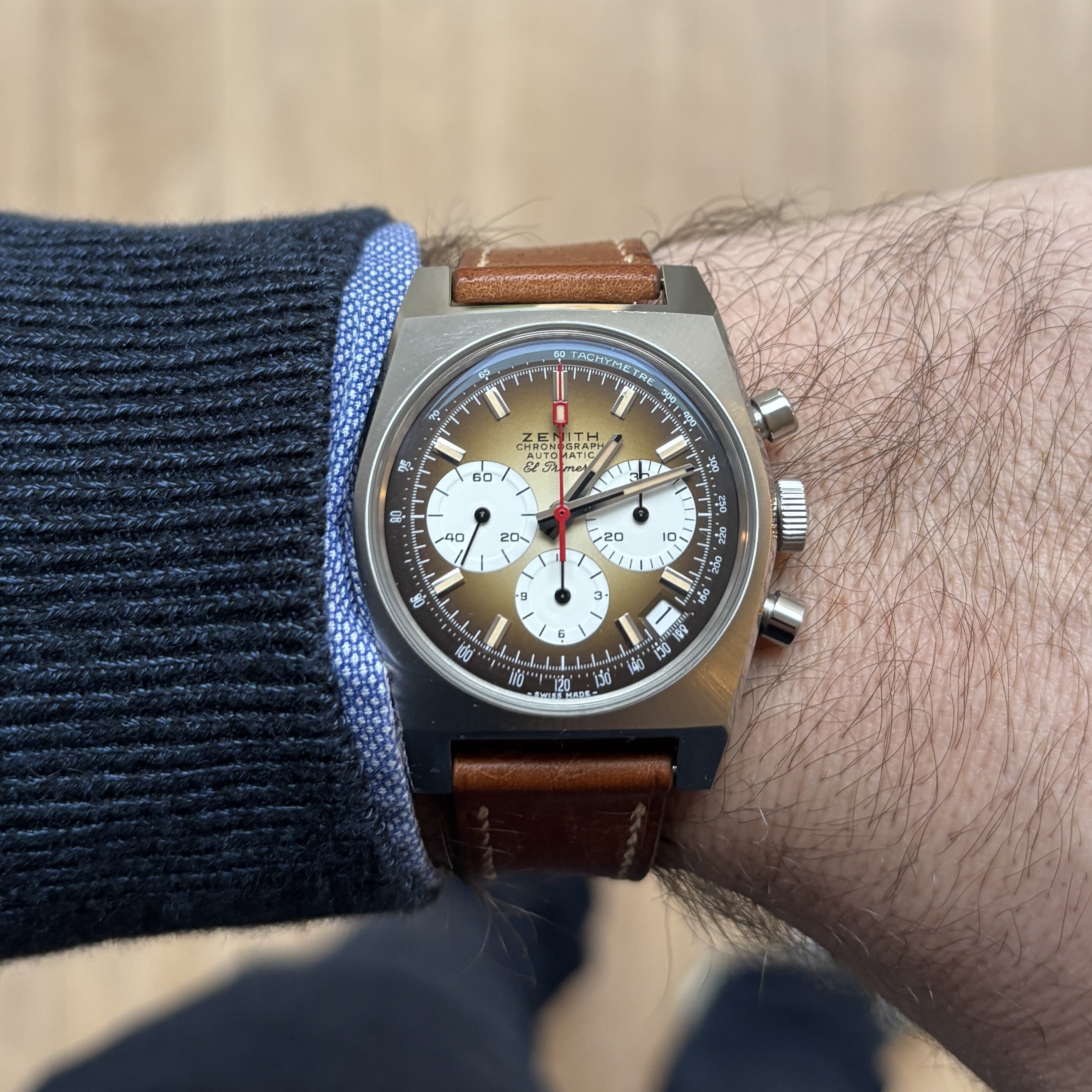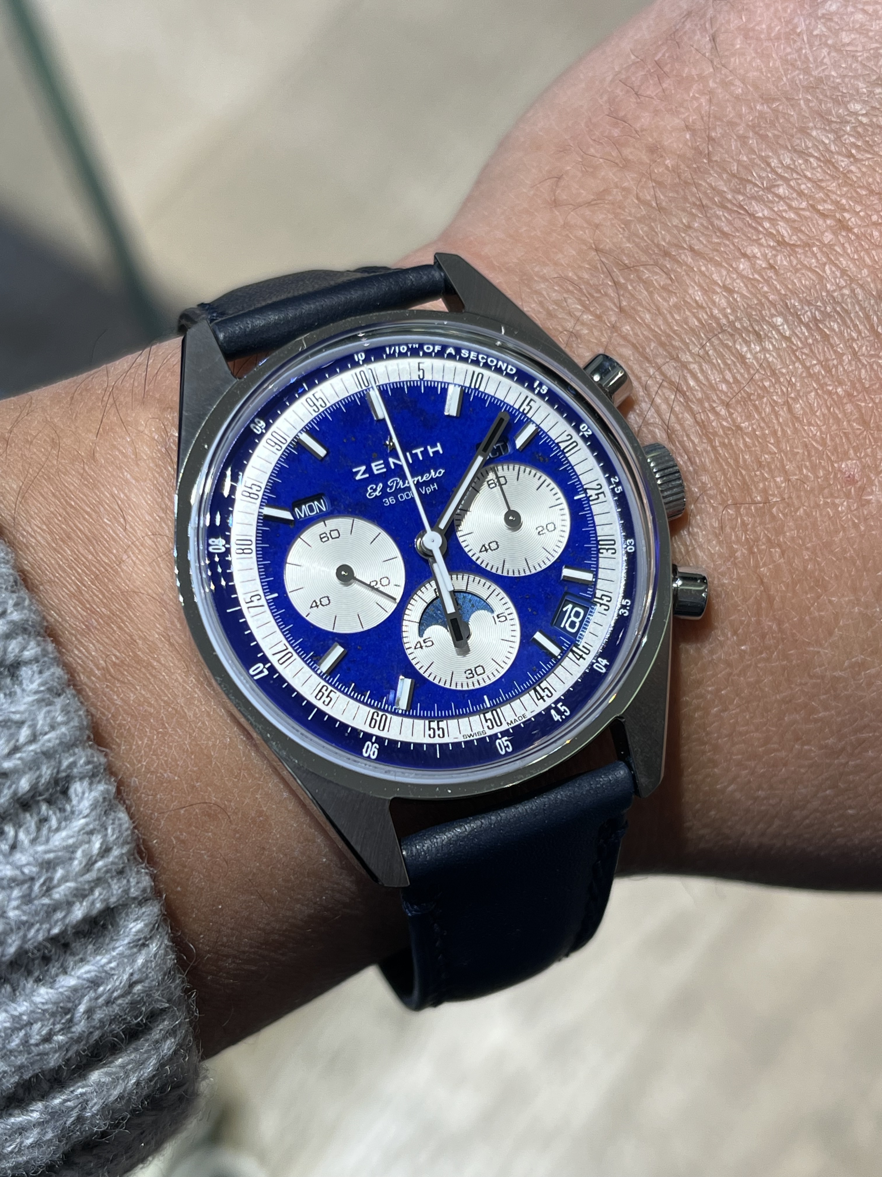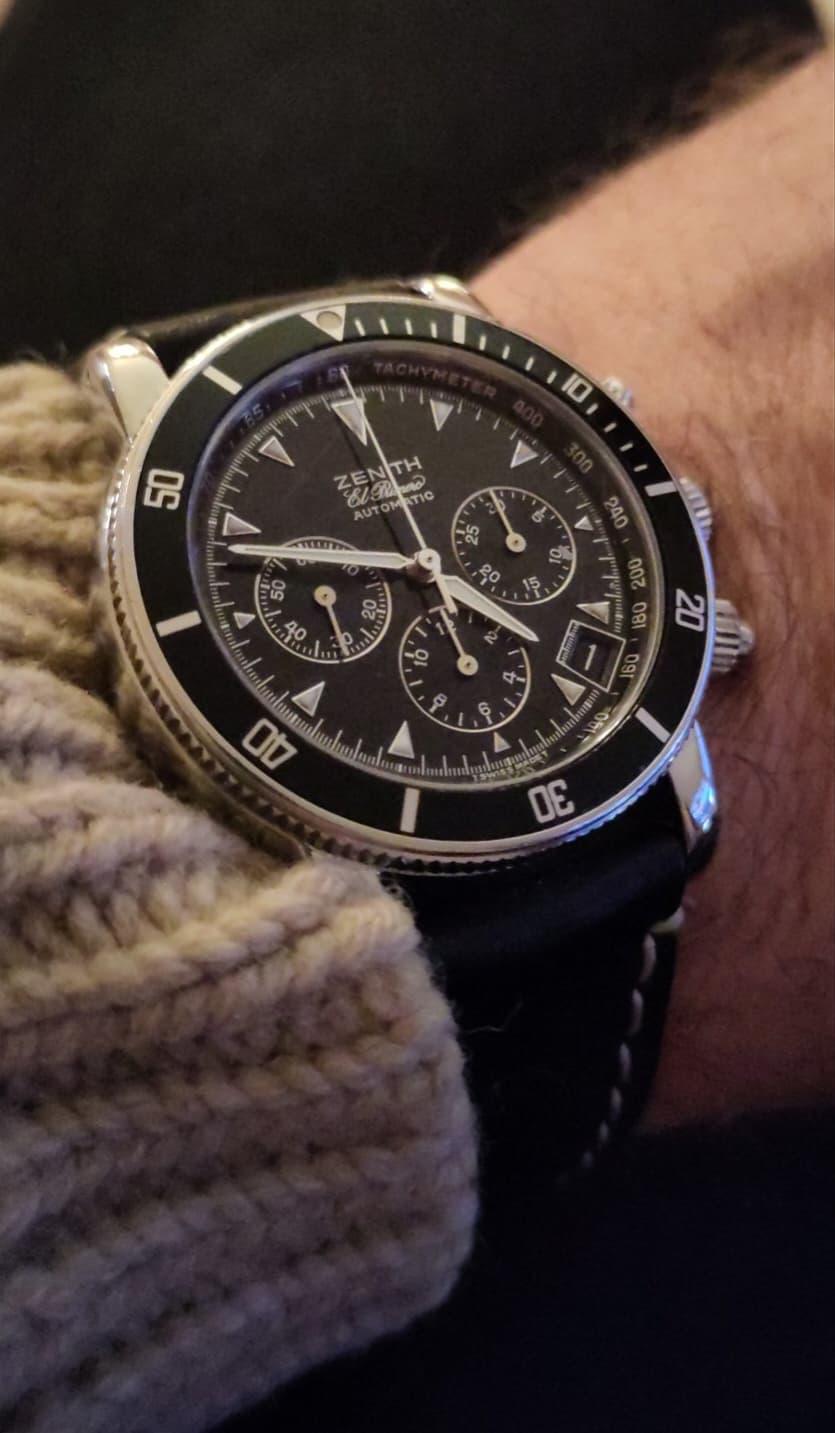 Dus je raadt het al… deze is inmiddels alweer vertrokken. Was een van mijn kortste verliefdheden ooit . Ondanks dat het uurwerk en de afwerking mijns inziens van superkwaliteit zijn. Zenith is echt top.