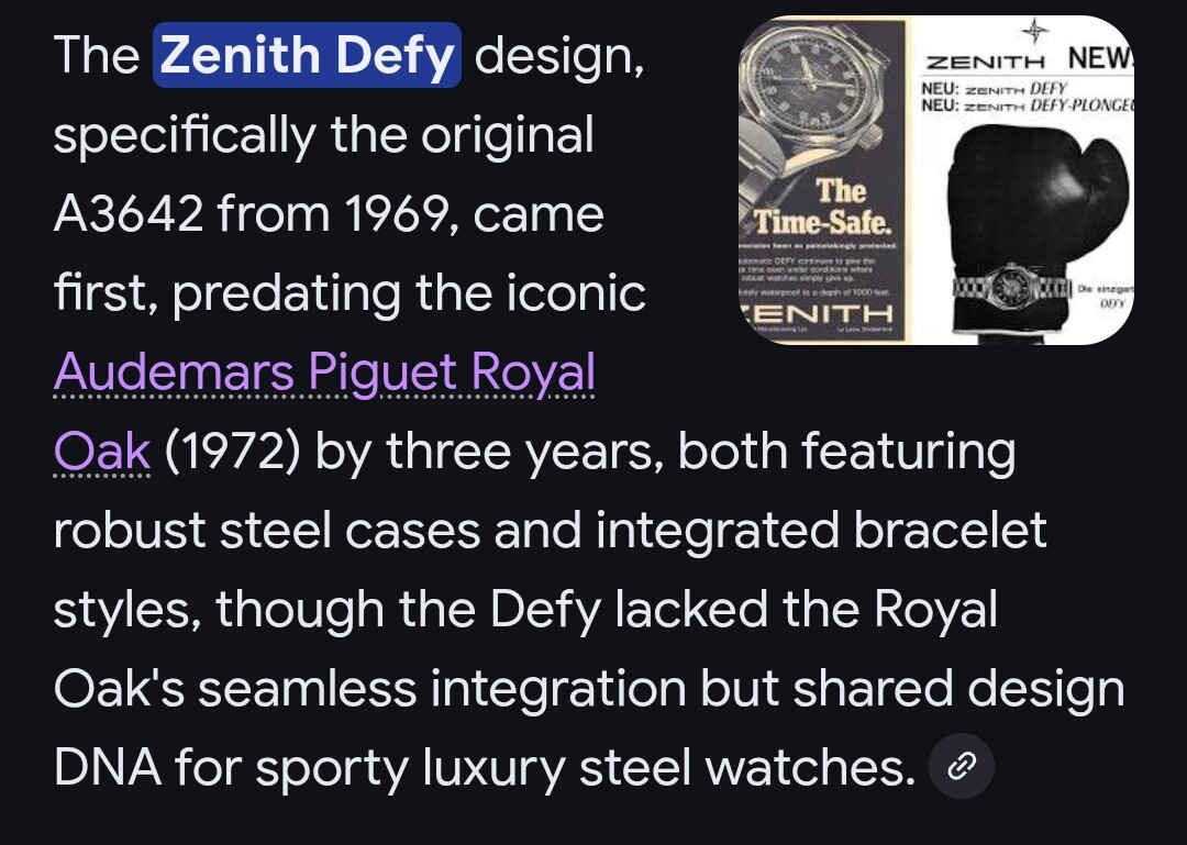 Altijd grappig dat mensen dit zeggen. De Defy destijds was er eerst met dit ontwerp voor de Royal Oak.