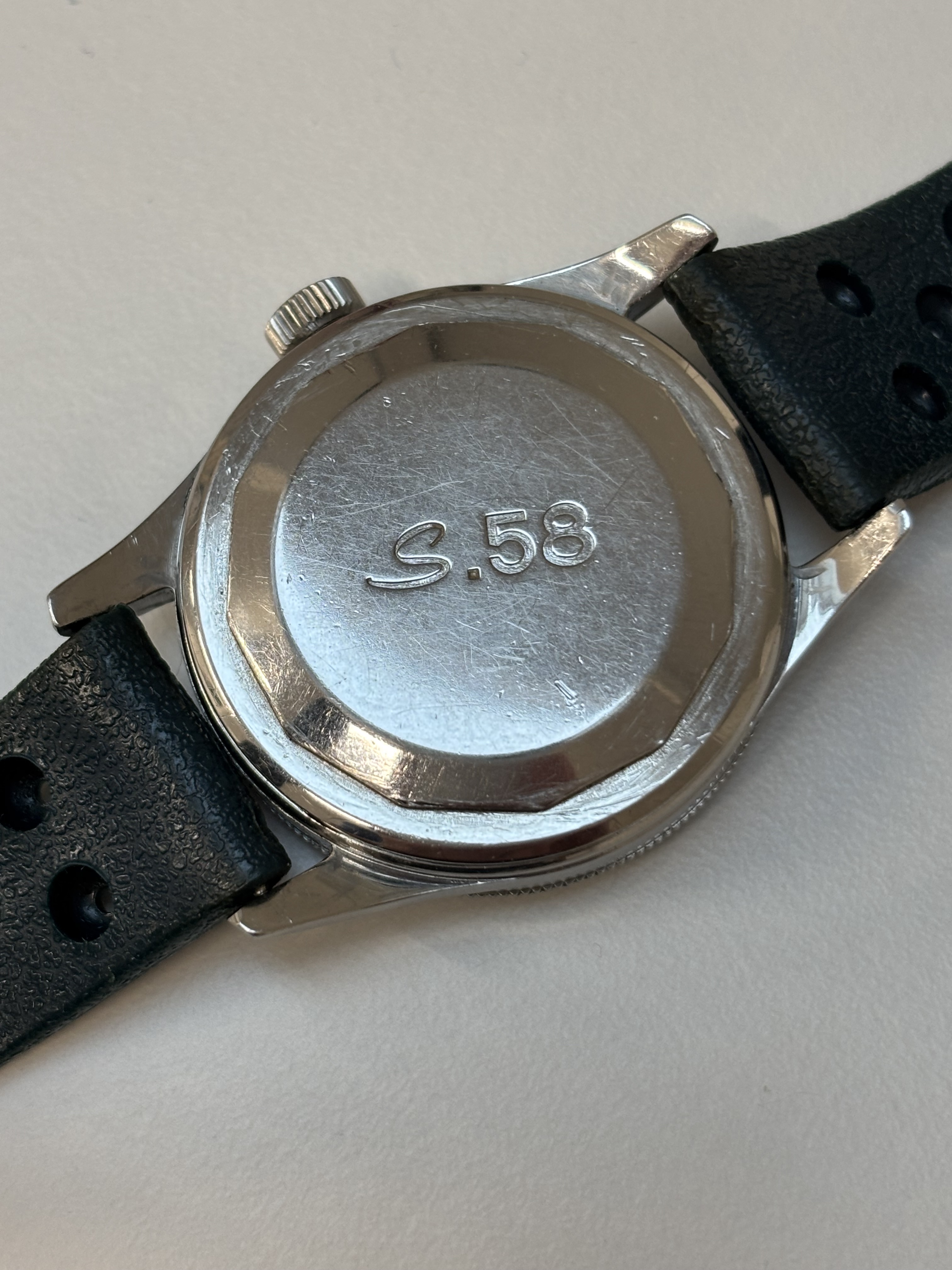 Er zijn 4 verschillende modellen uitgebracht. Allemaal eenvoudig te herkennen aan de “S.58” met de mooie Script “S” op de plaat. Ook de caseback is voor al deze modellen gelijk: